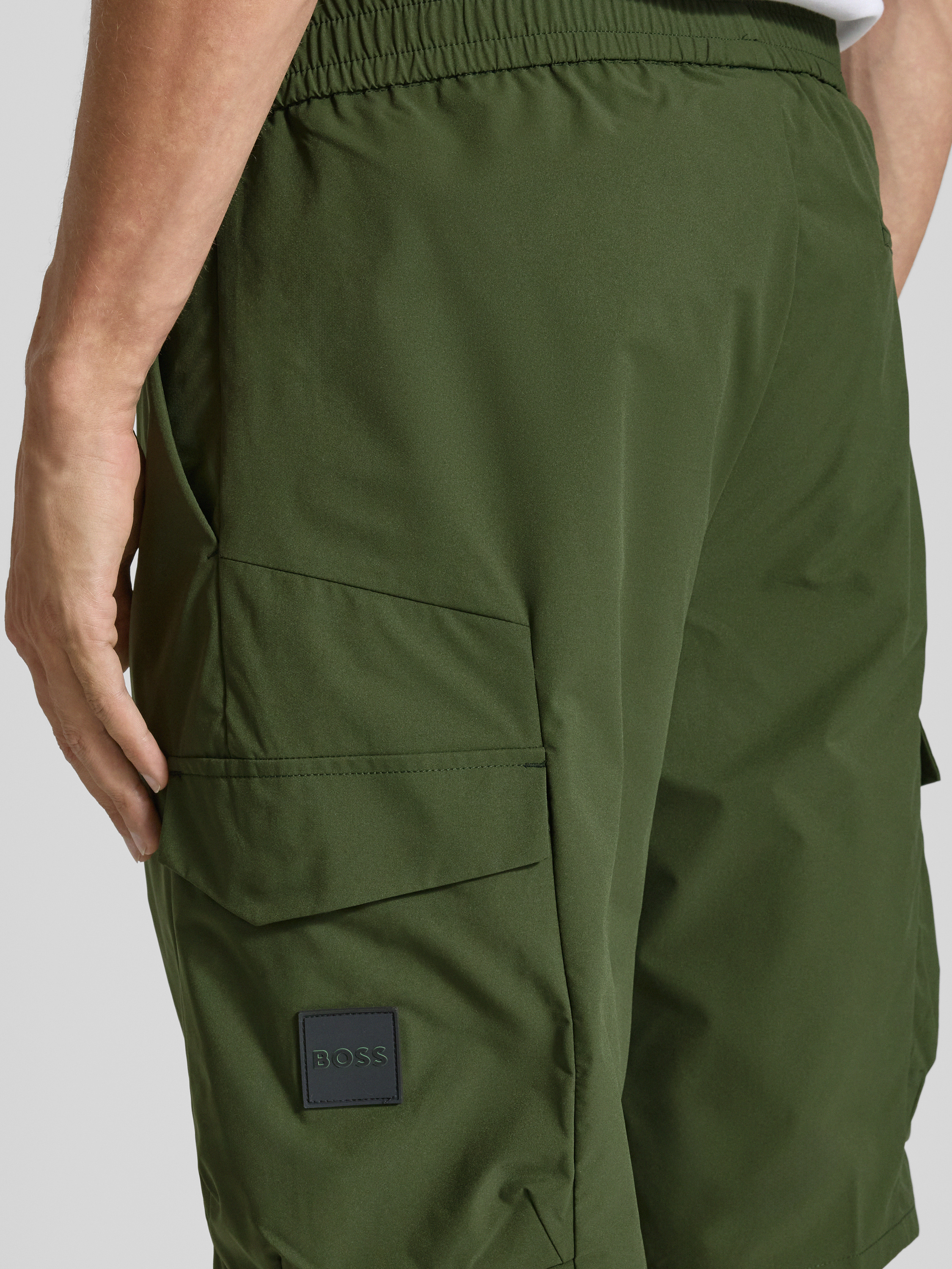 Bermuda met elastische band en cargozakken in donkergroen