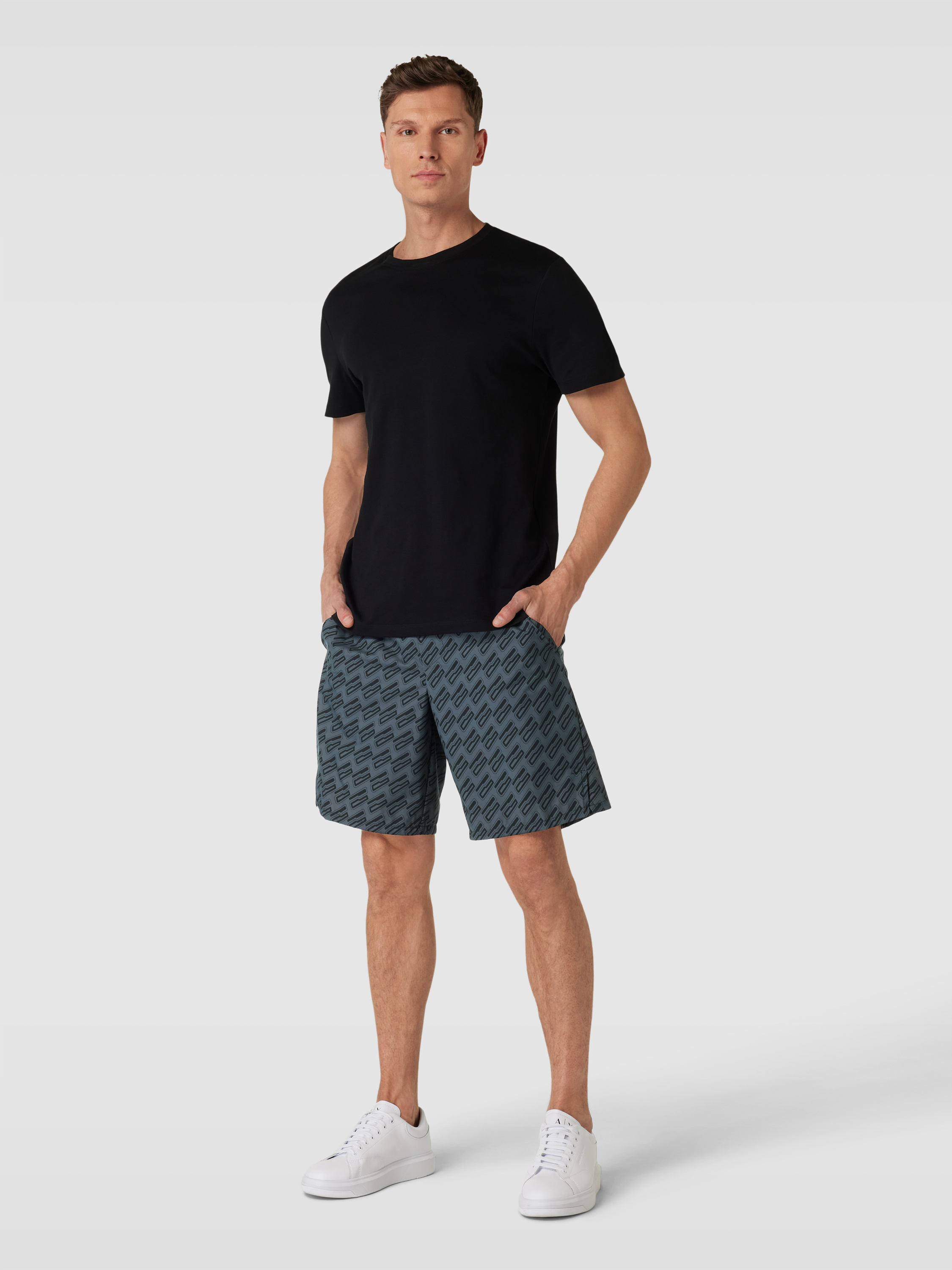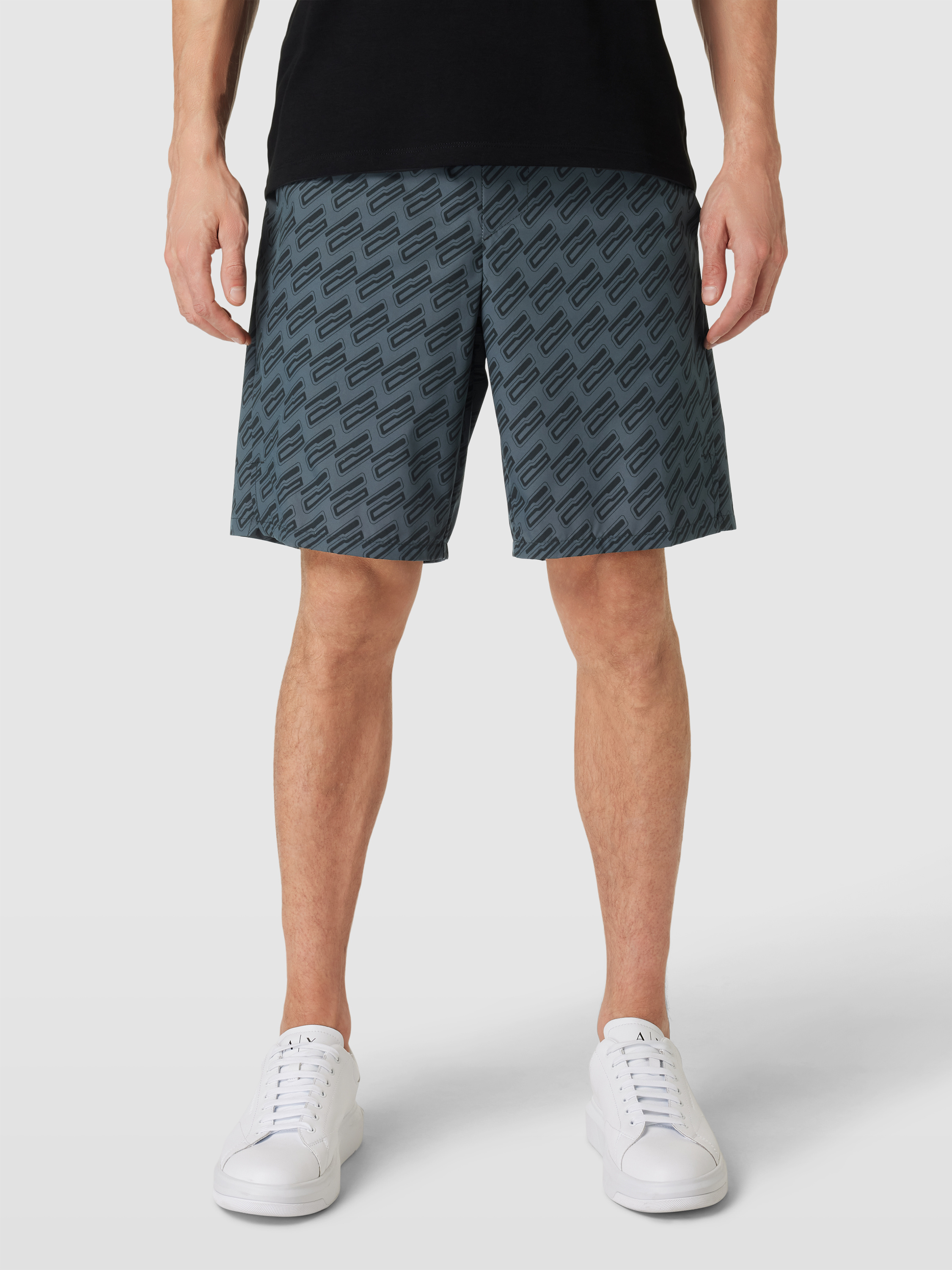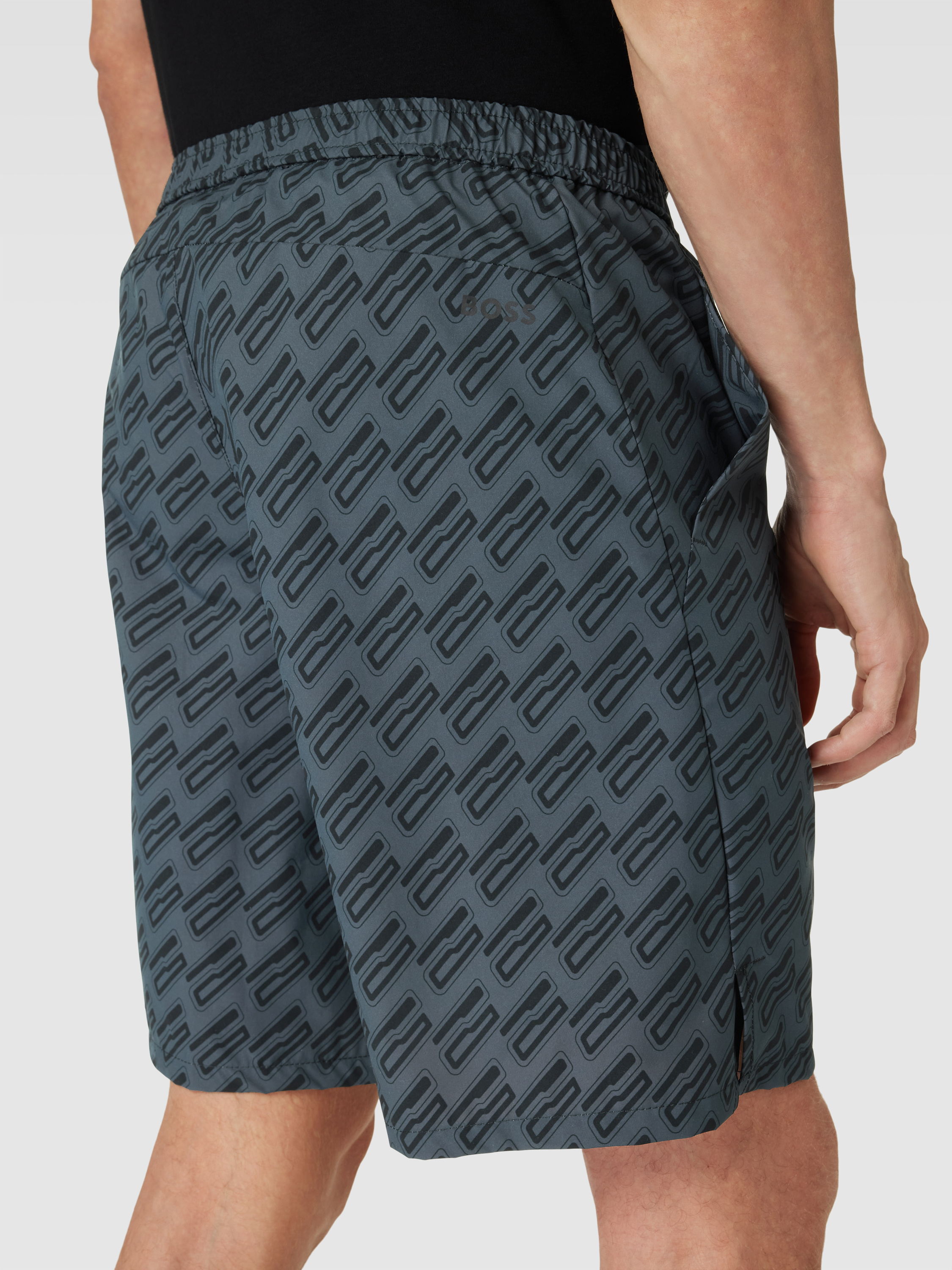 Korte broek met grafisch all-over motief, model 'Game Long' in antraciet