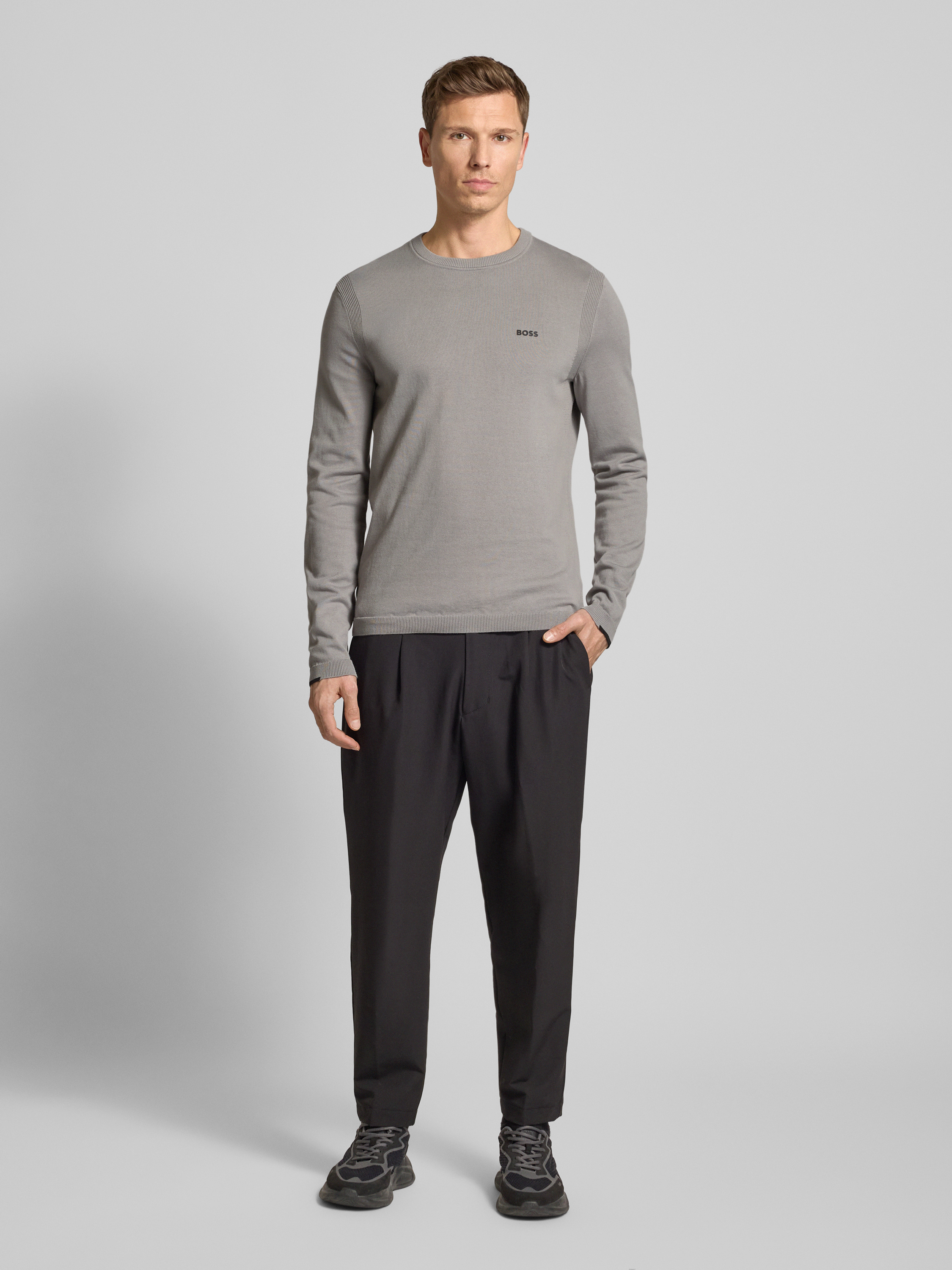 BOSS GreenRegular fit gebreide pullover van puur katoen, model 'EVER X' in lichtgrijs