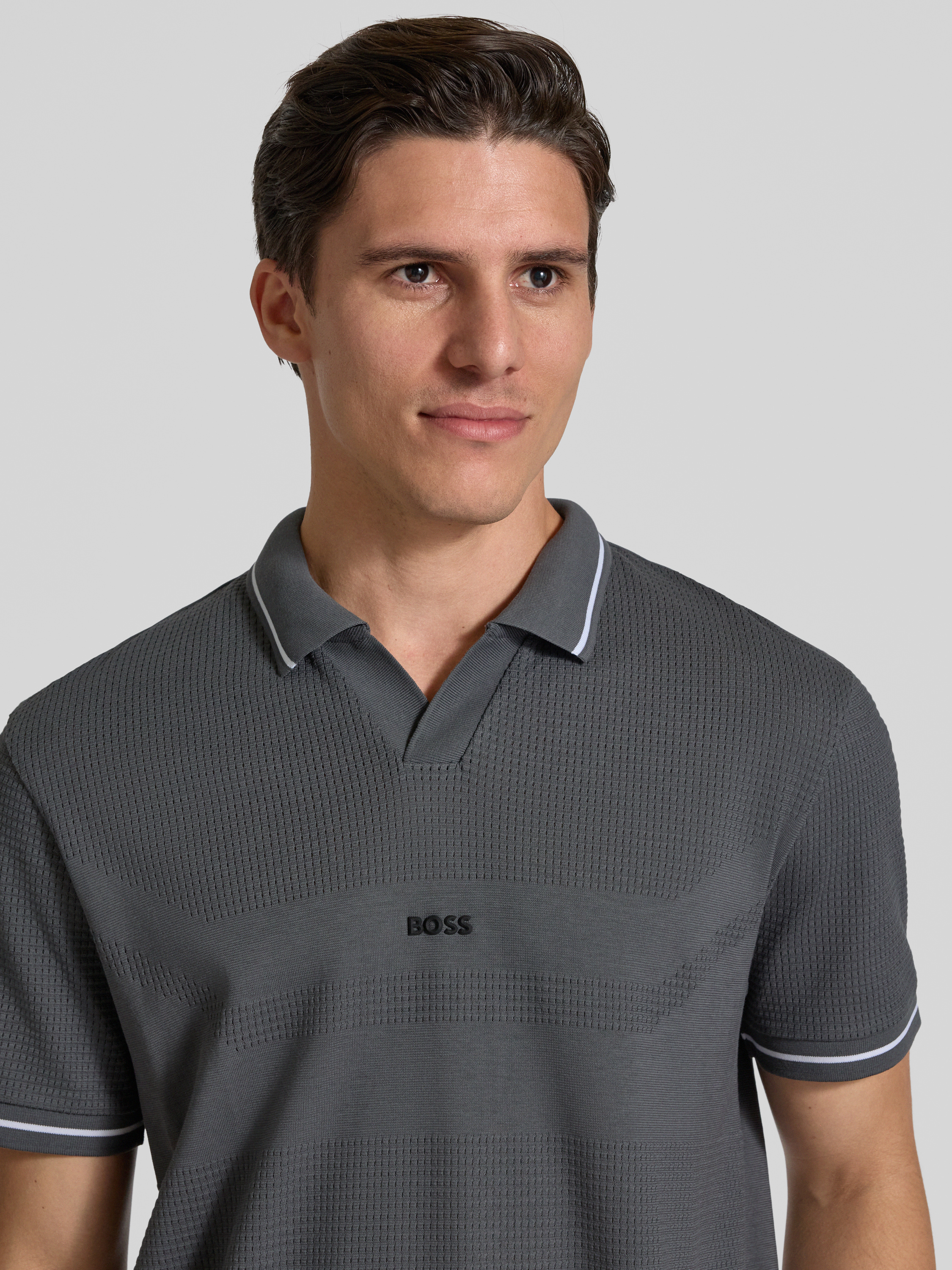 Regular fit poloshirt met labelstitching in donkergrijs