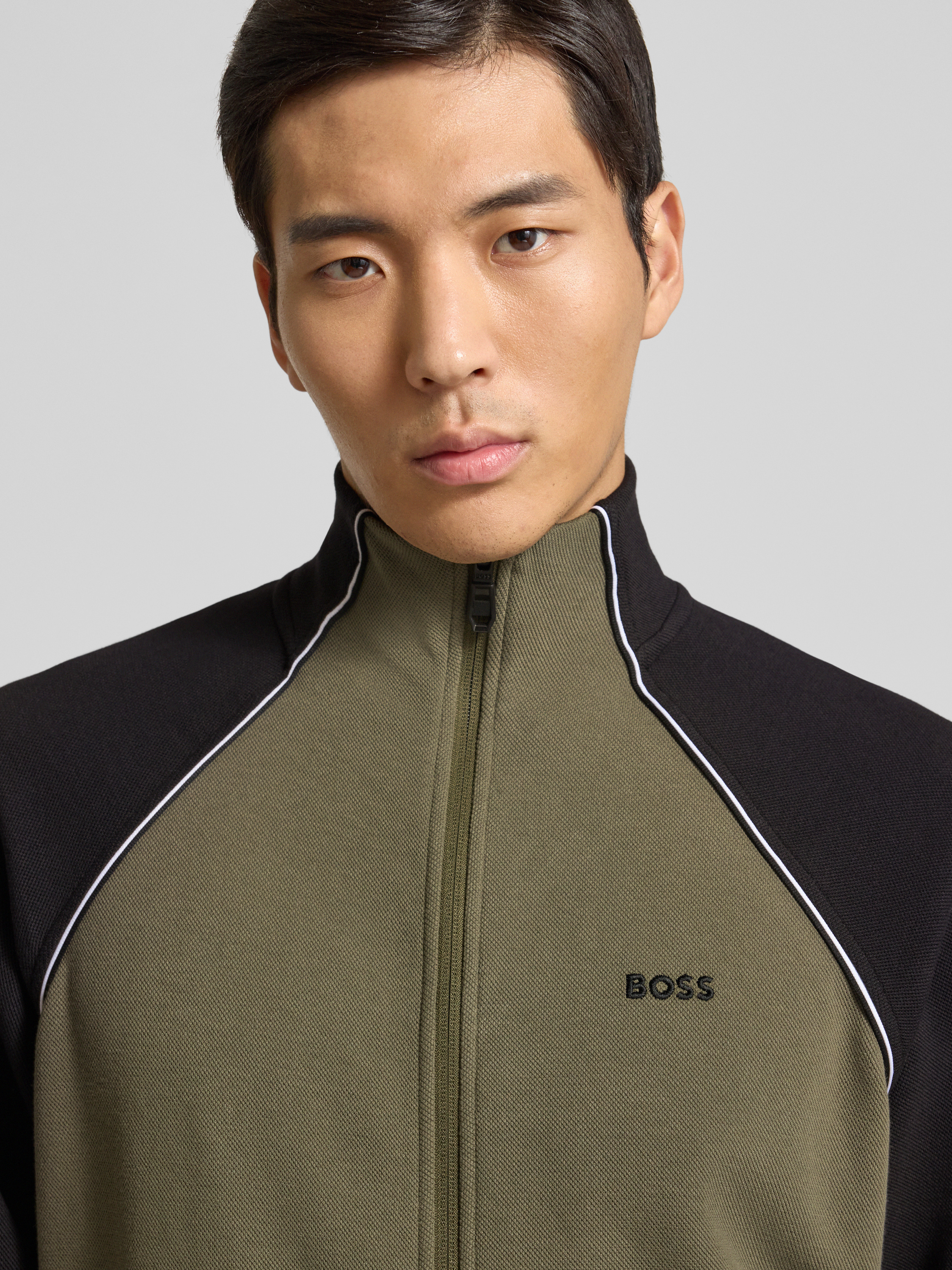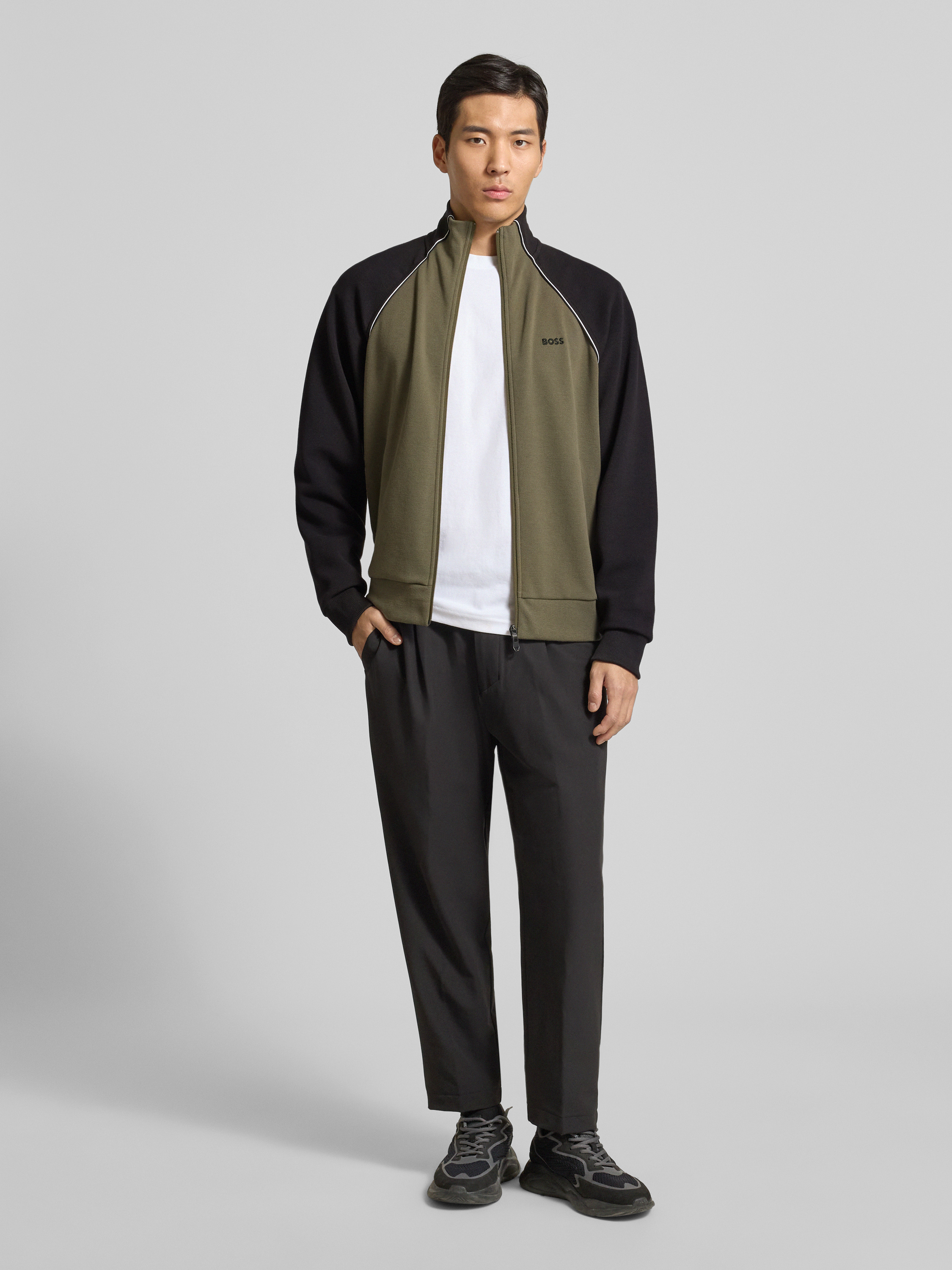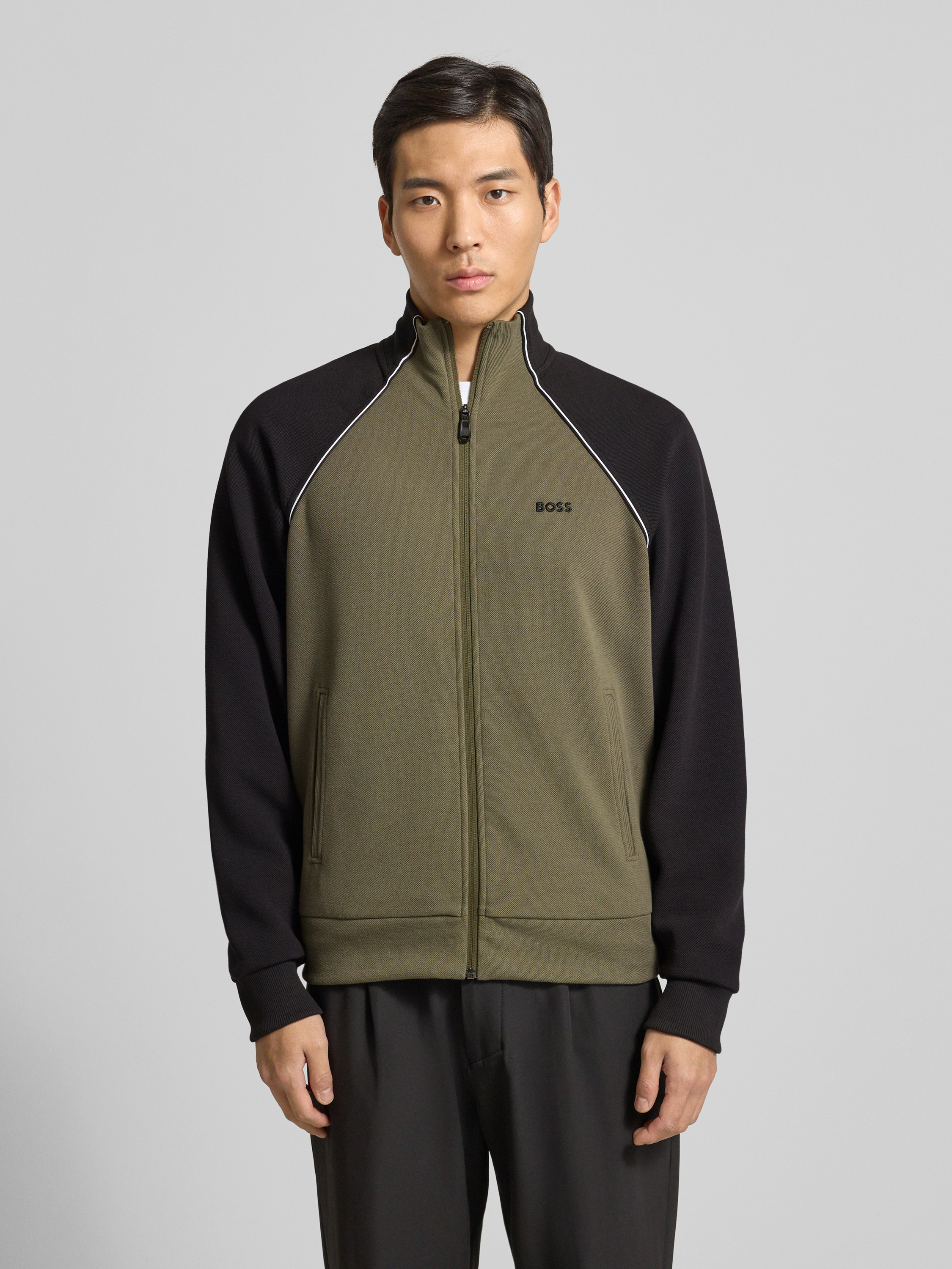 BOSS GreenRegular fit sweatjack van katoenmix in donkergroen