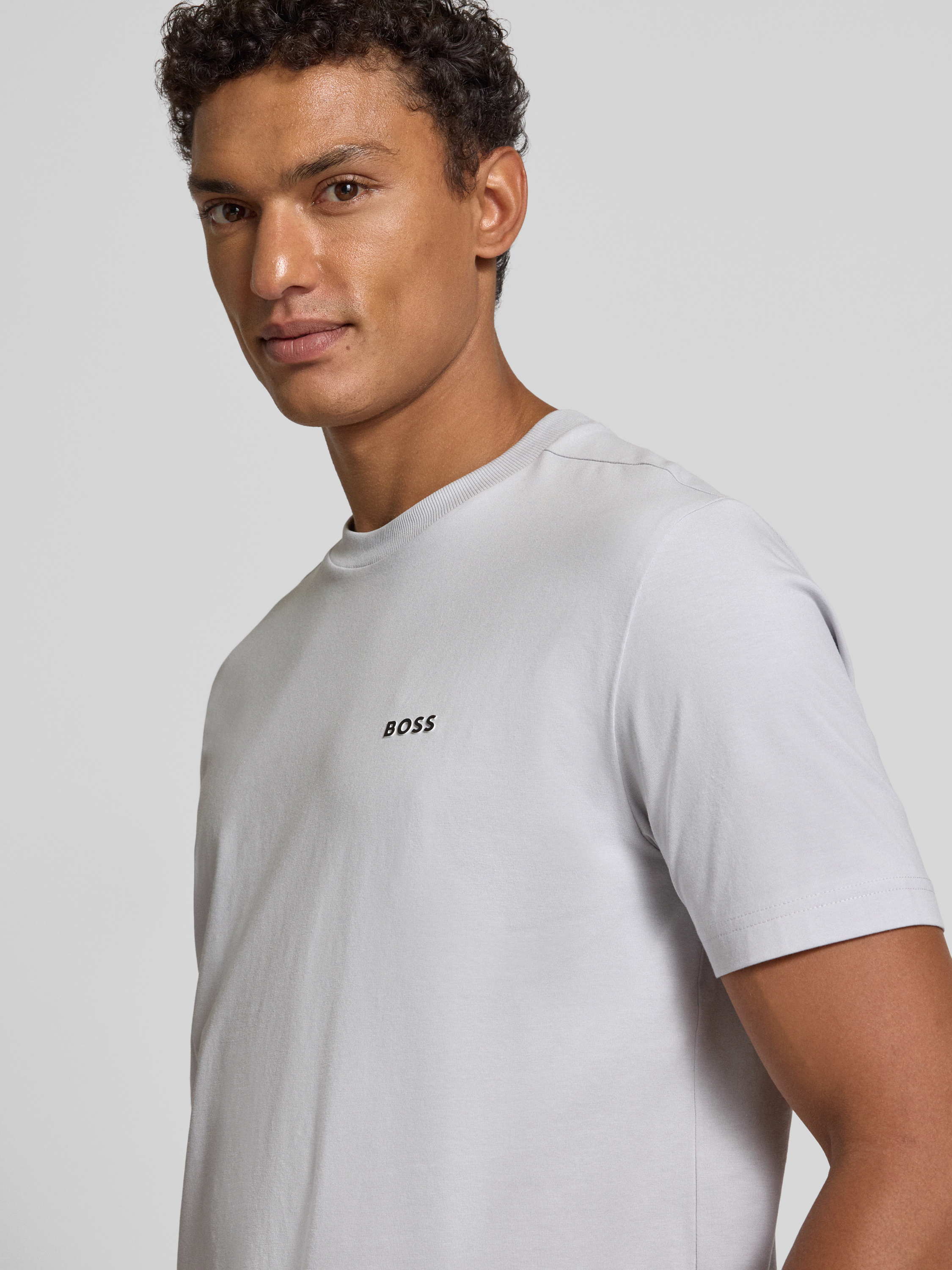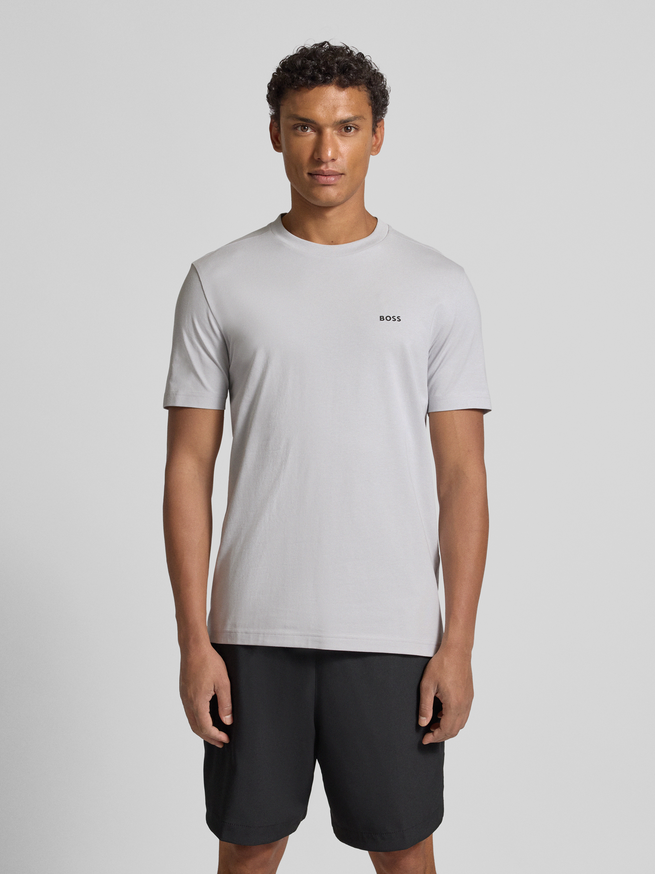 Regular fit T-shirt van katoenmix, model 'TEE' in lichtgrijs