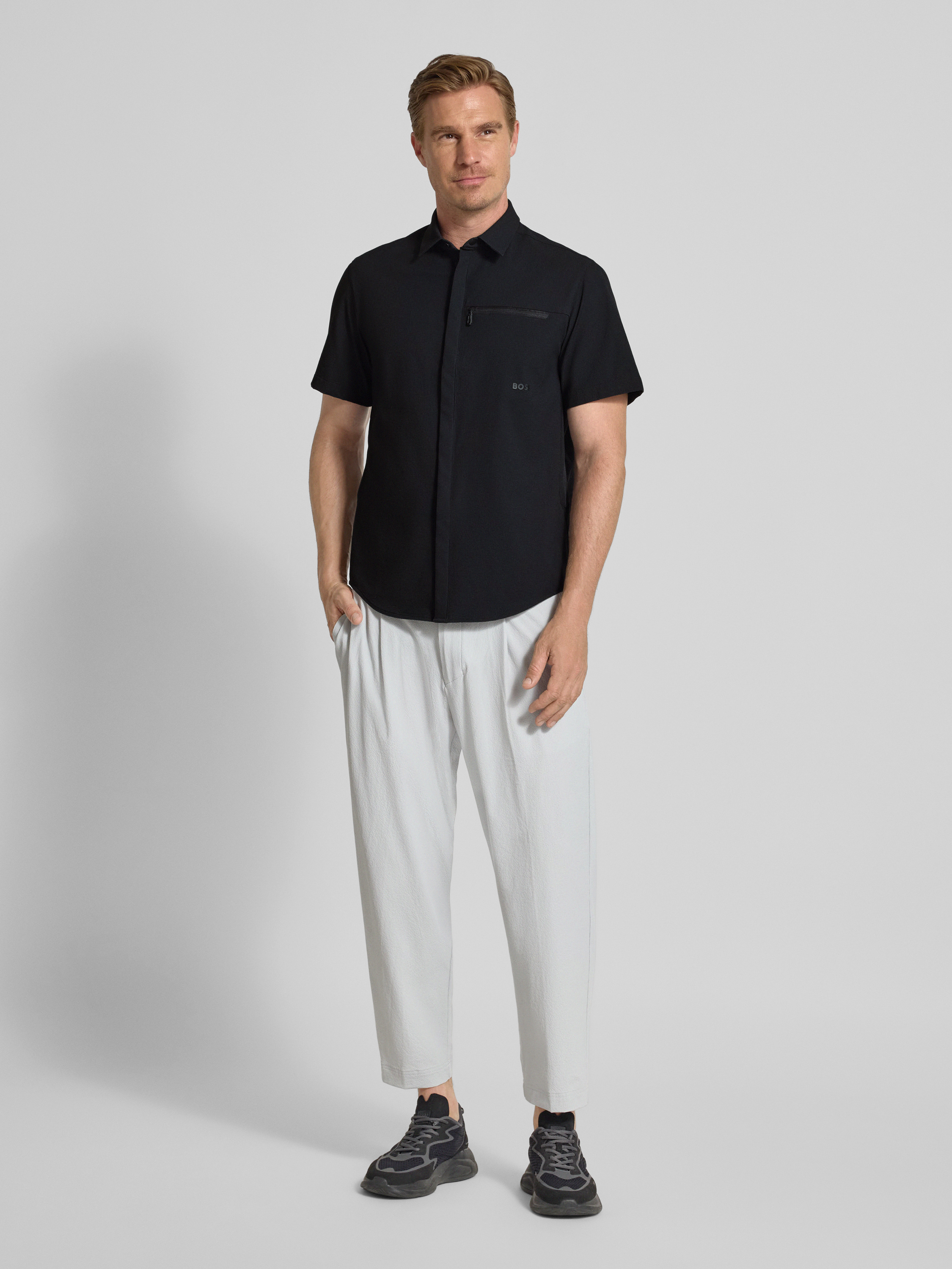 Regular fit vrijetijdsoverhemd met kentkraag, model 'URBAN' in zwart