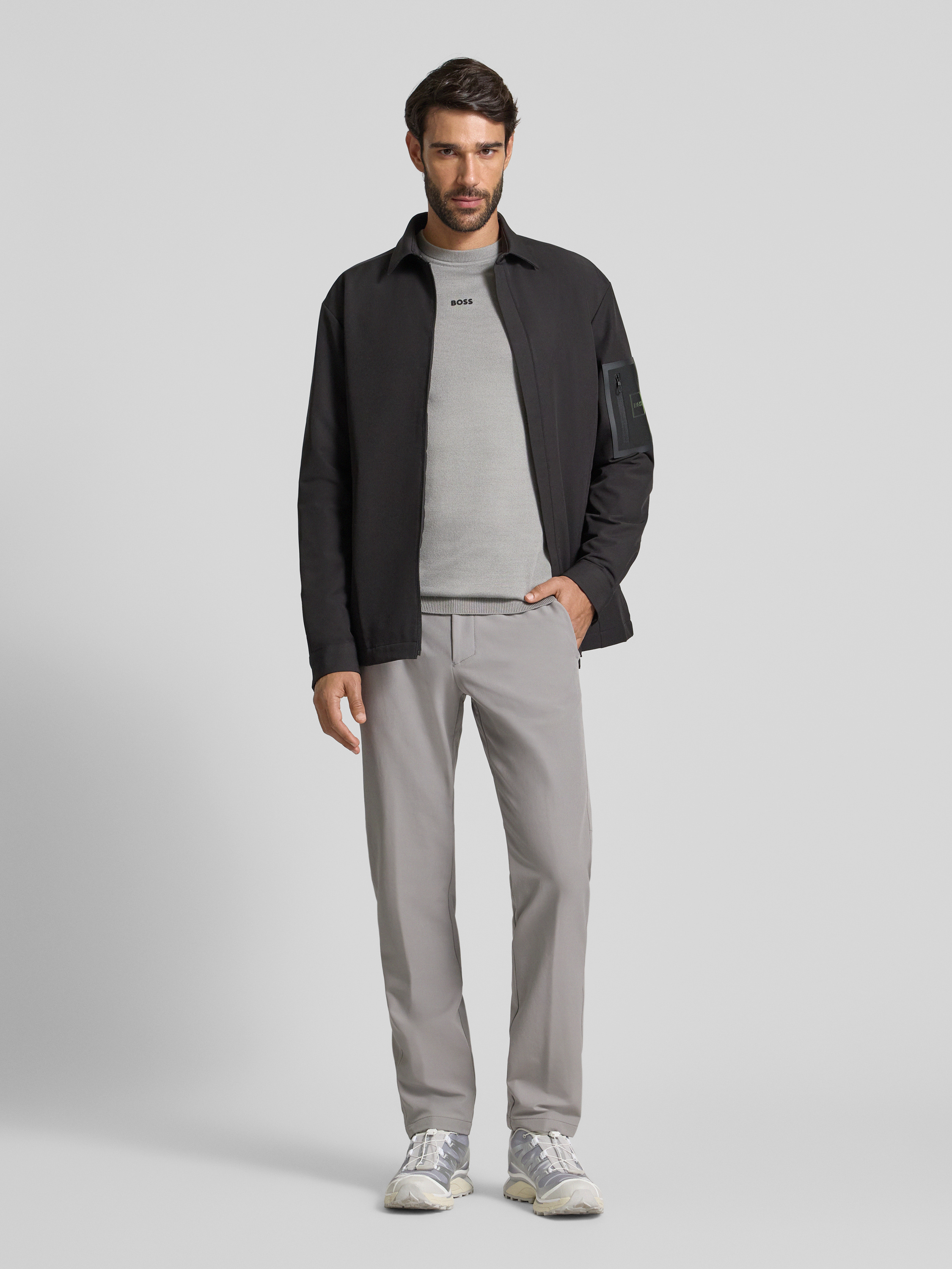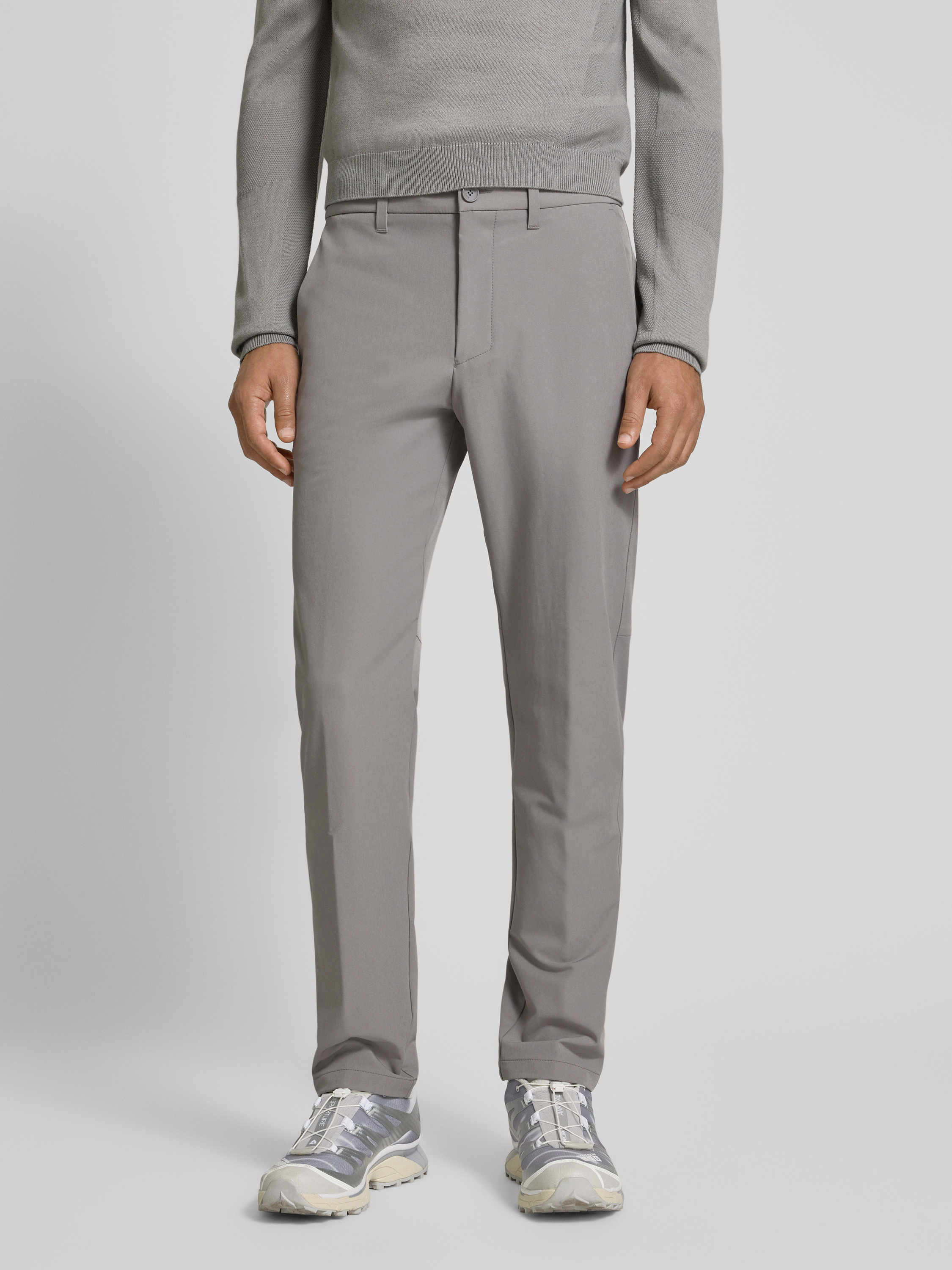 BOSS GreenSlim fit stoffen broek van waterafstotend materiaal, model 'COMMUTER' in lichtgrijs
