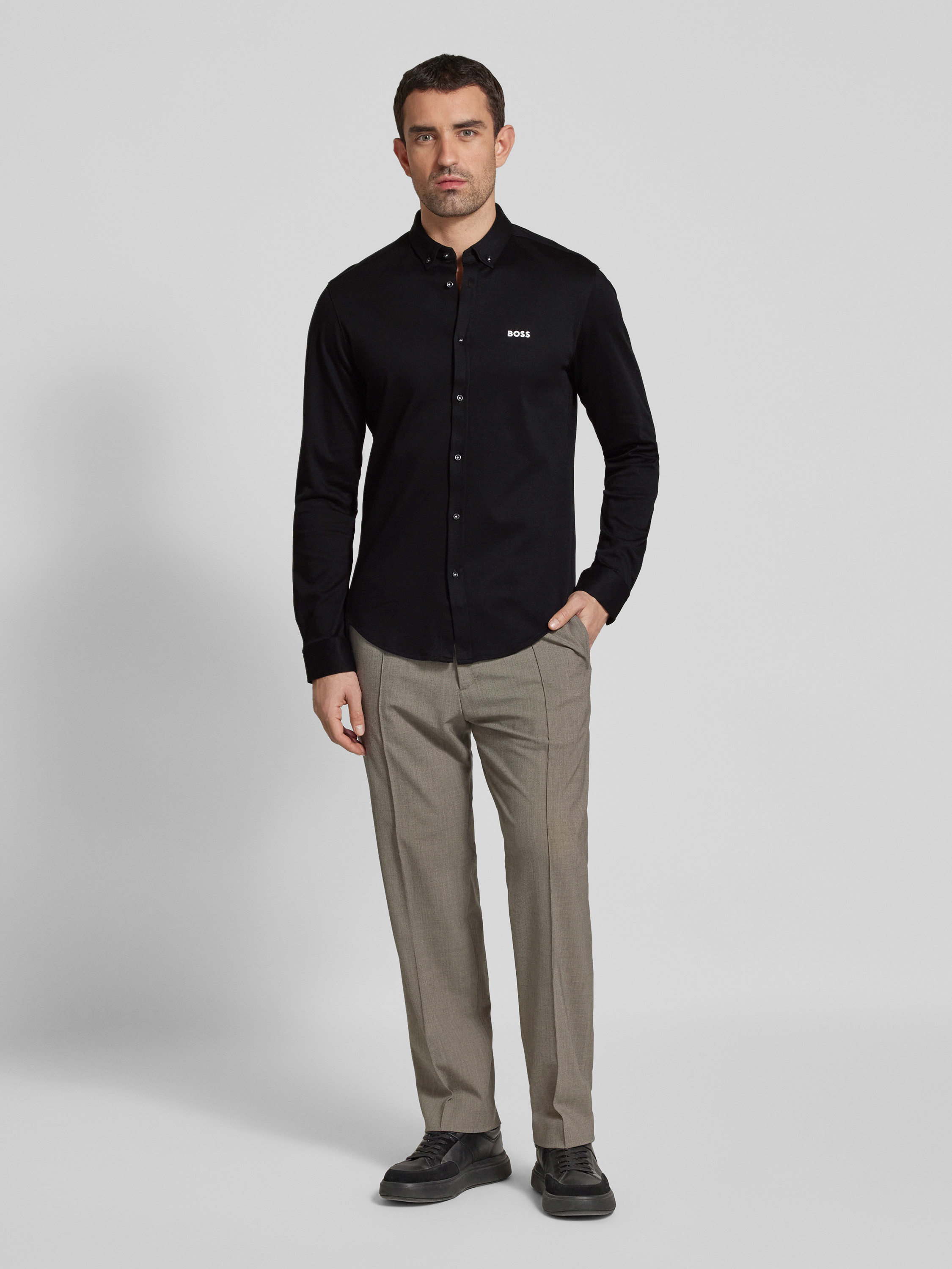 Slim fit vrijetijdsoverhemd met button-downkraag, model 'MOTION' in zwart