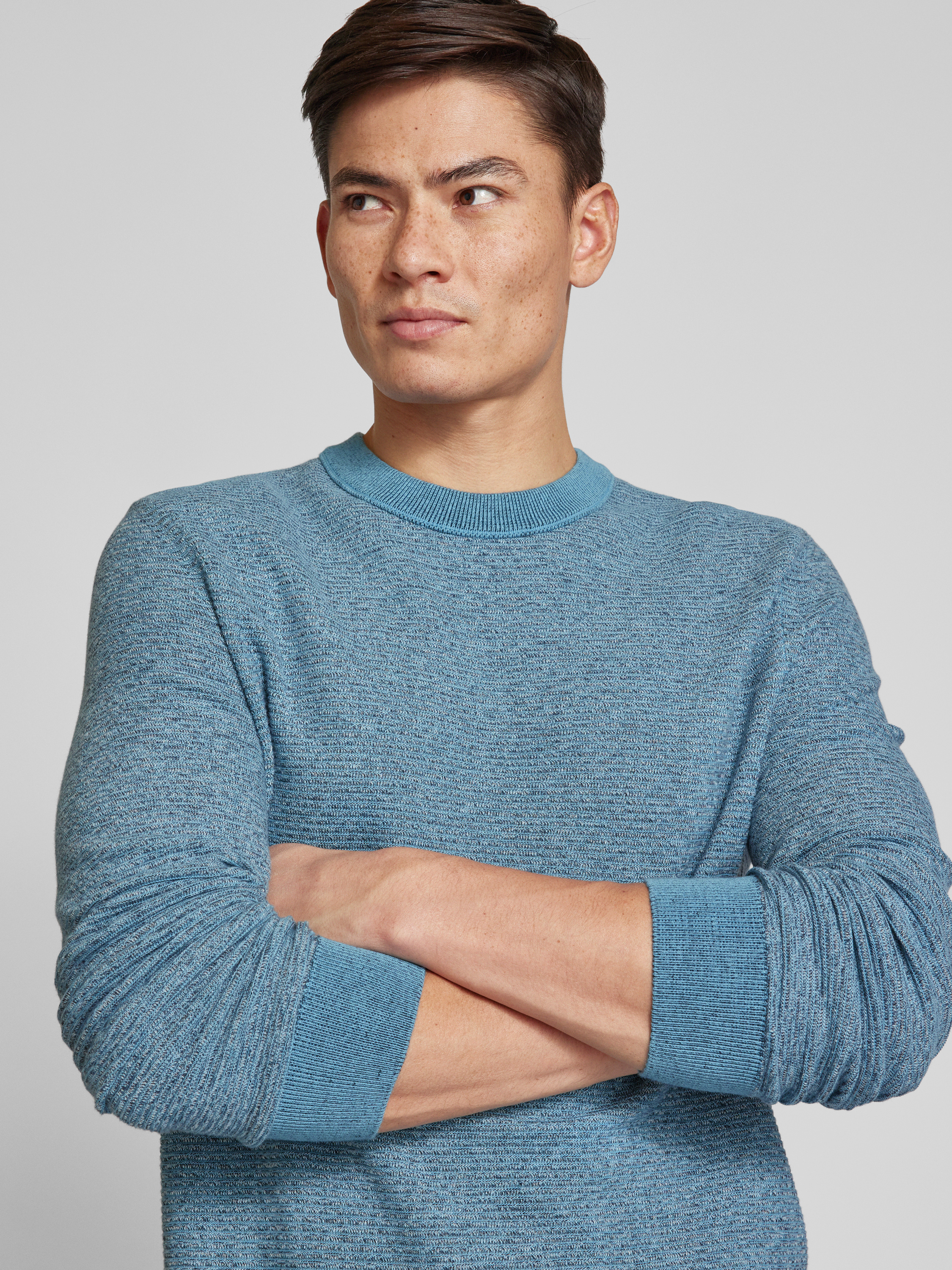 Gebreide pullover met opstaande kraag in oceaanblauw