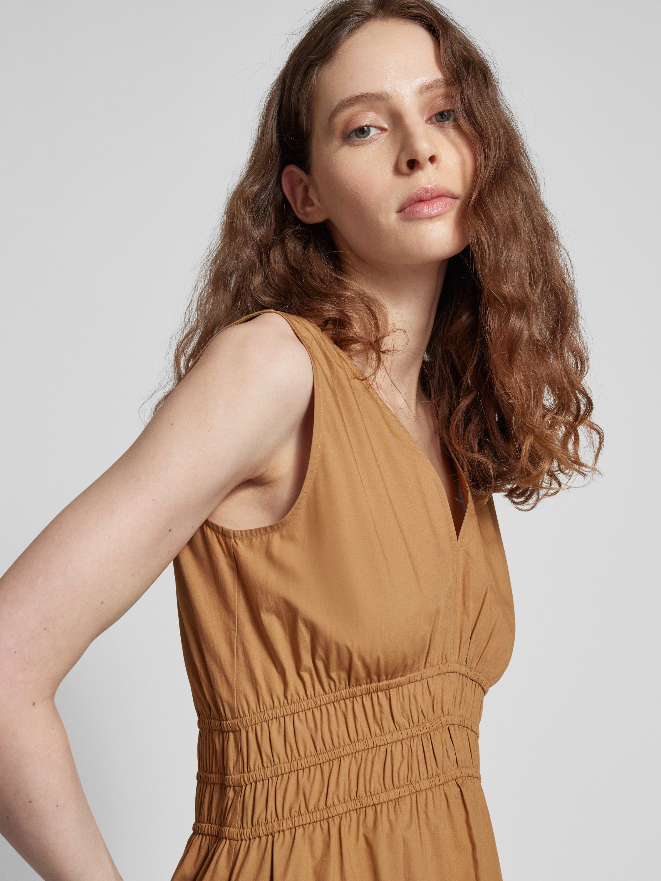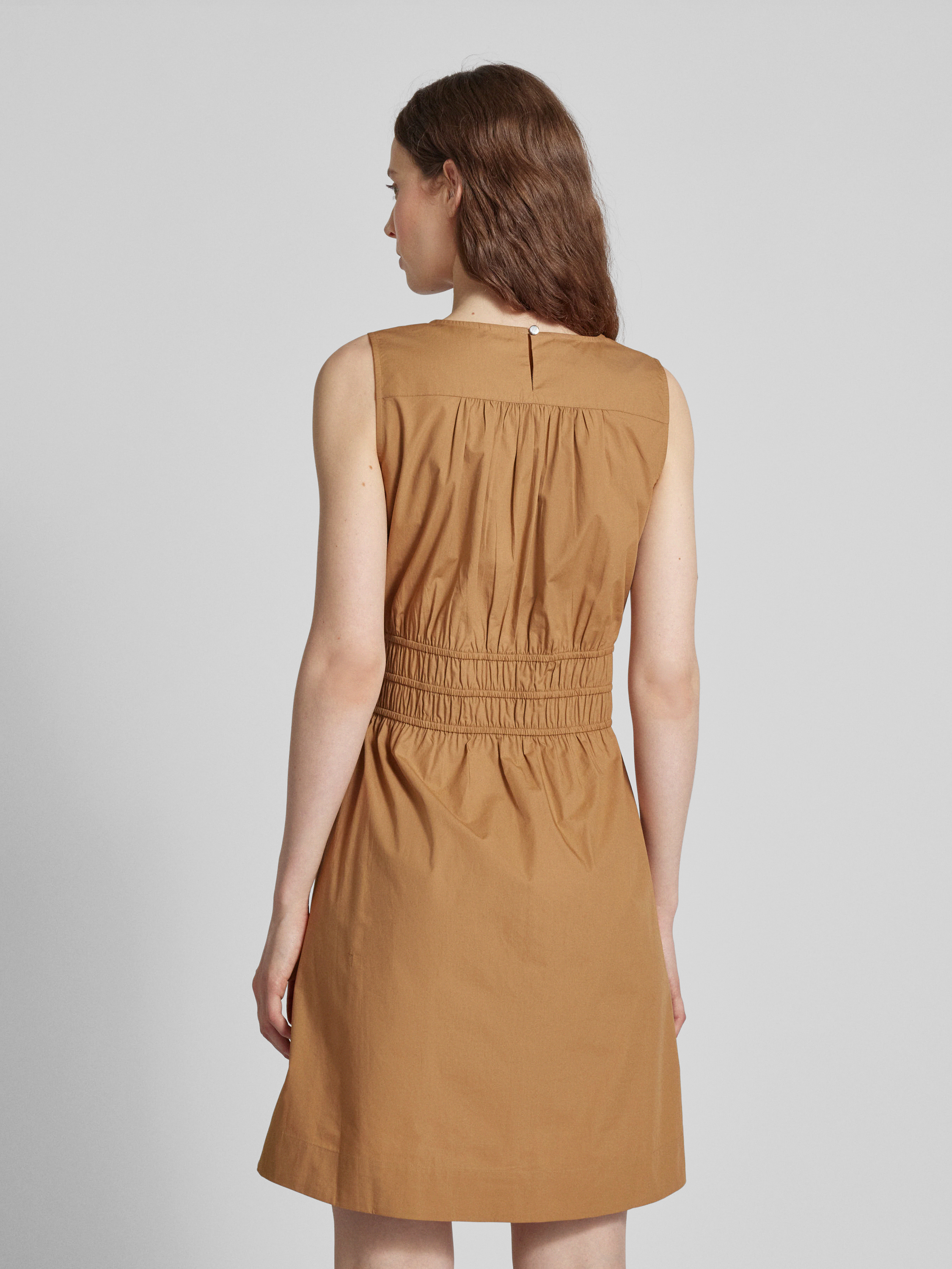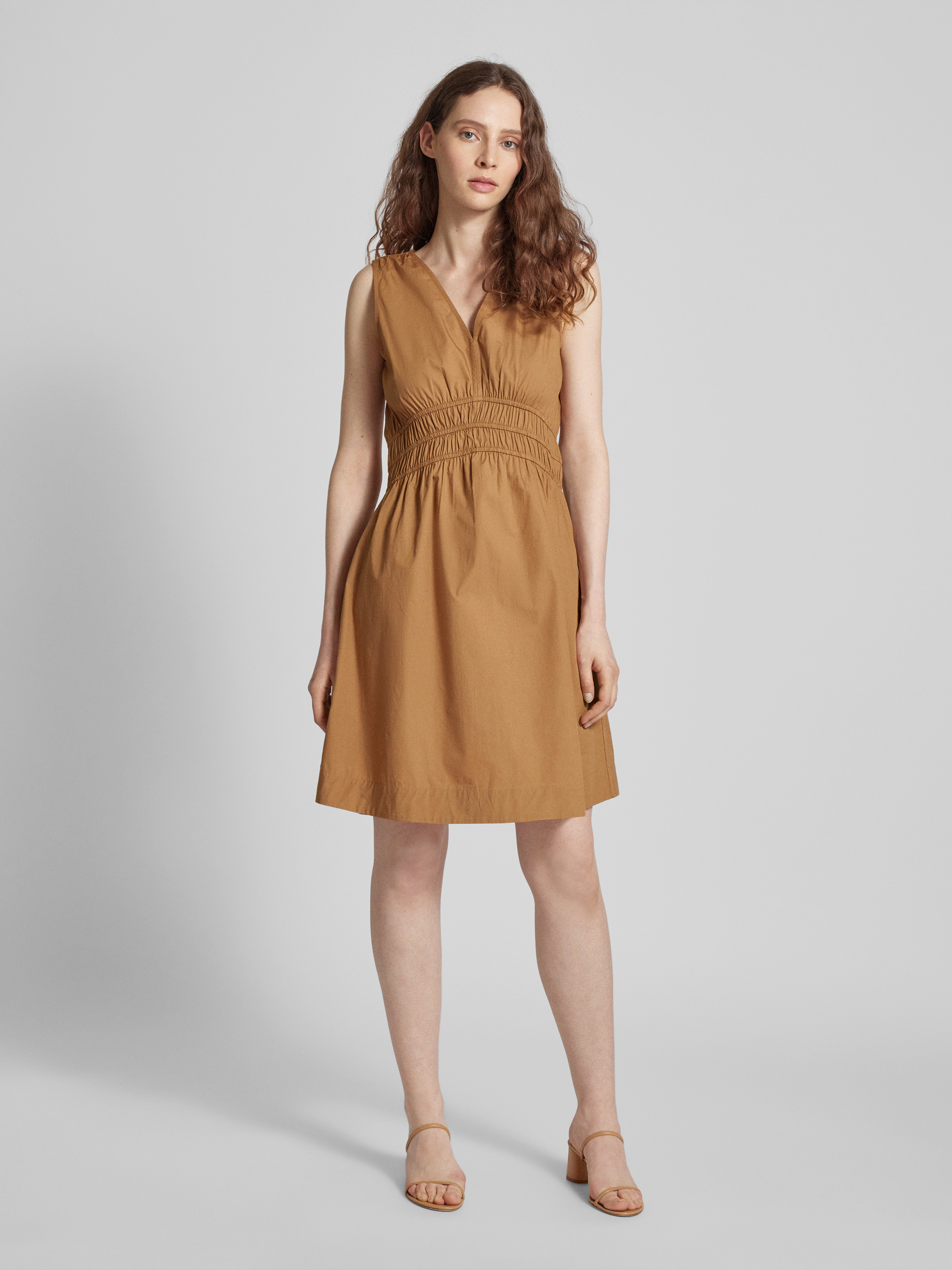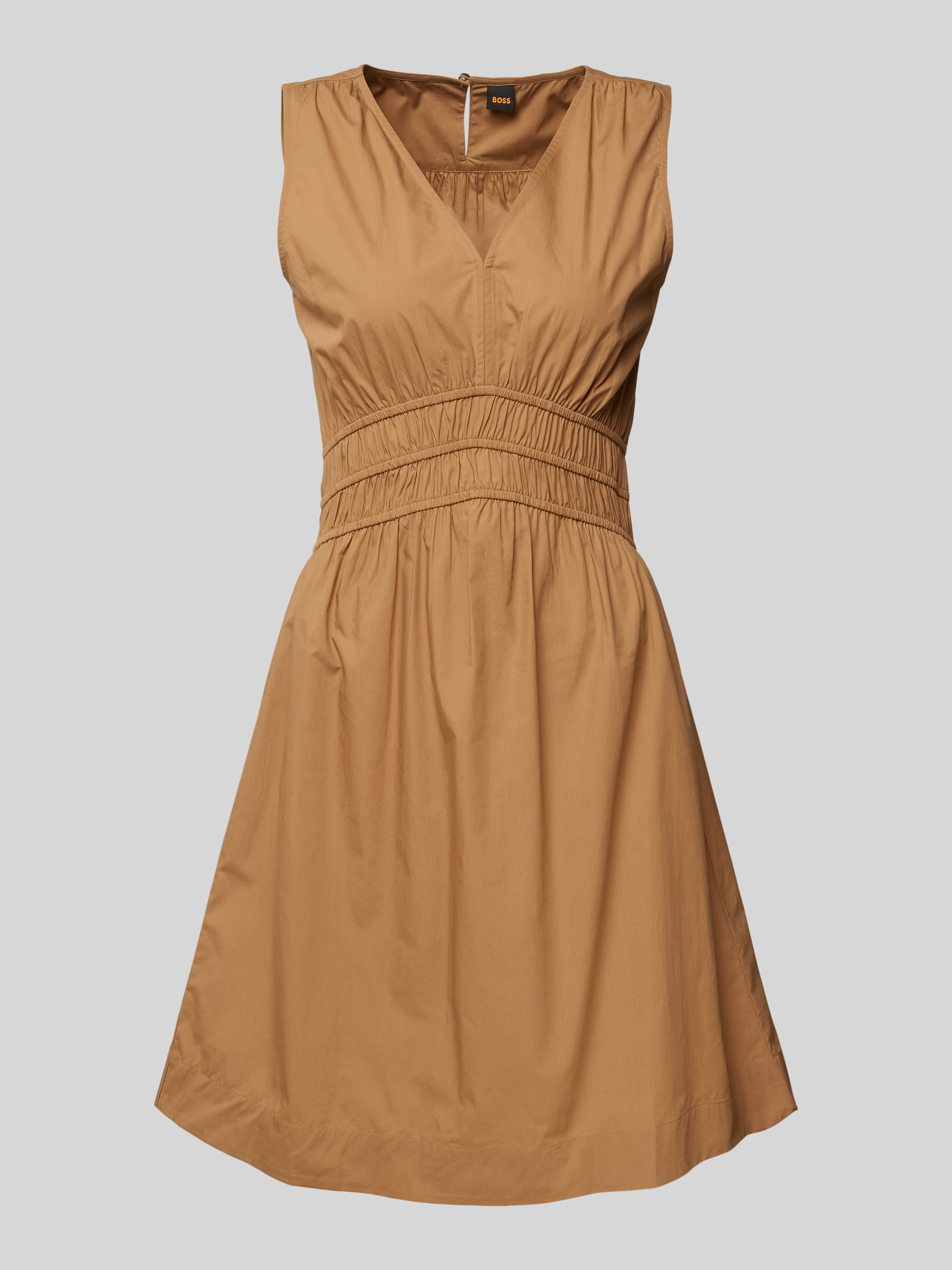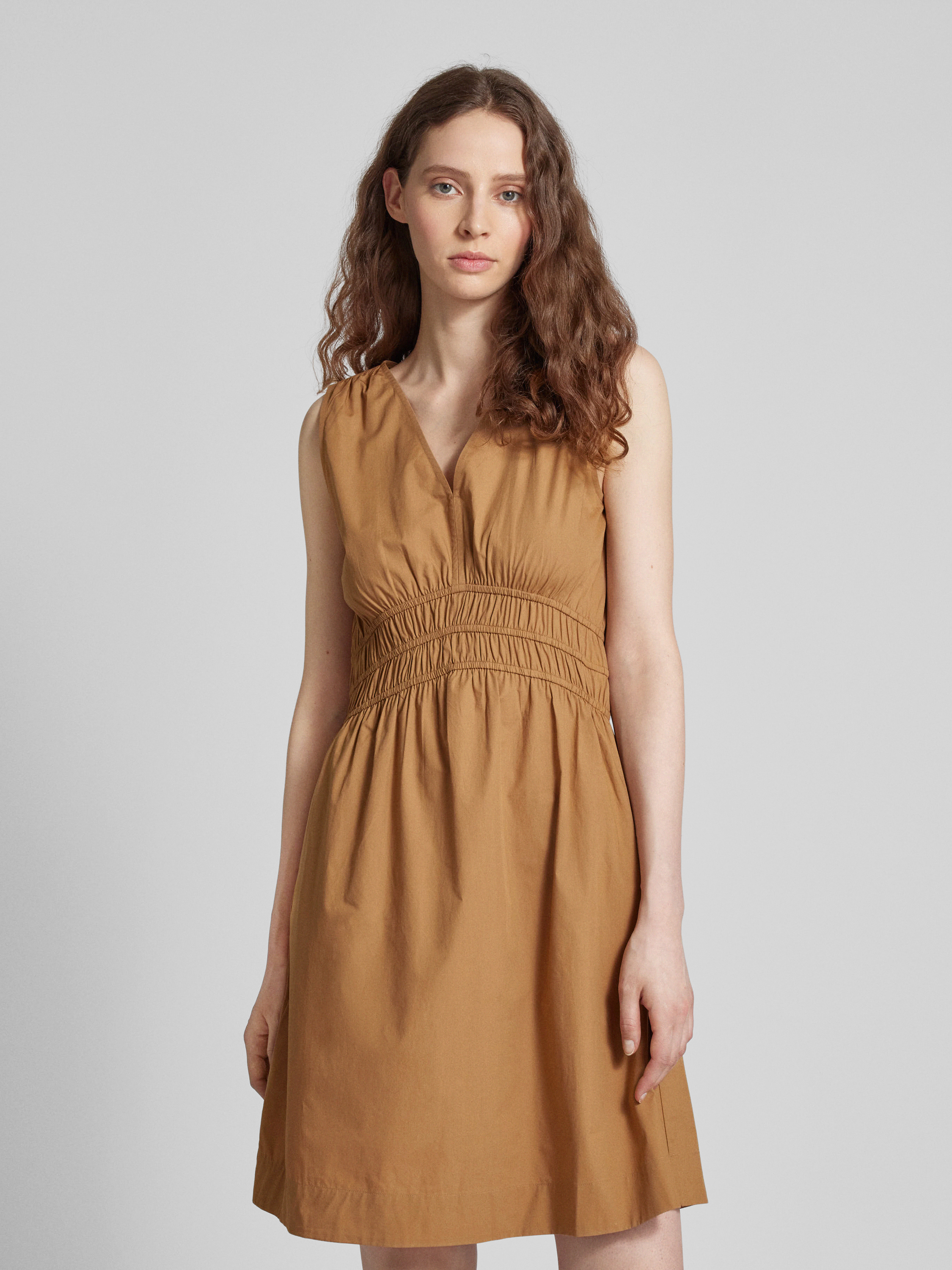 Knielange jurk in effen design, model 'Dizzi' in cognac