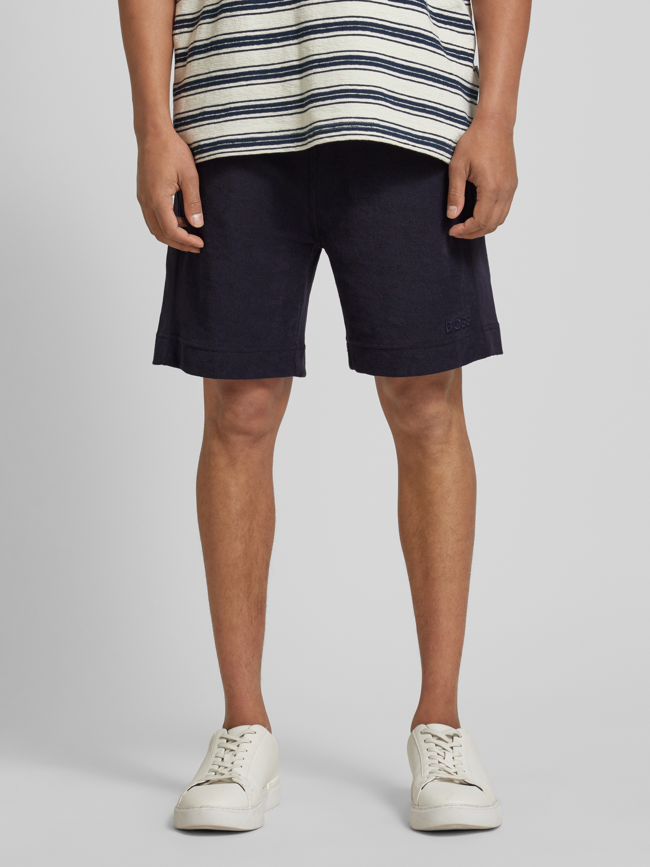 BOSS OrangeKorte broek van badstof met elastische band in donkerblauw