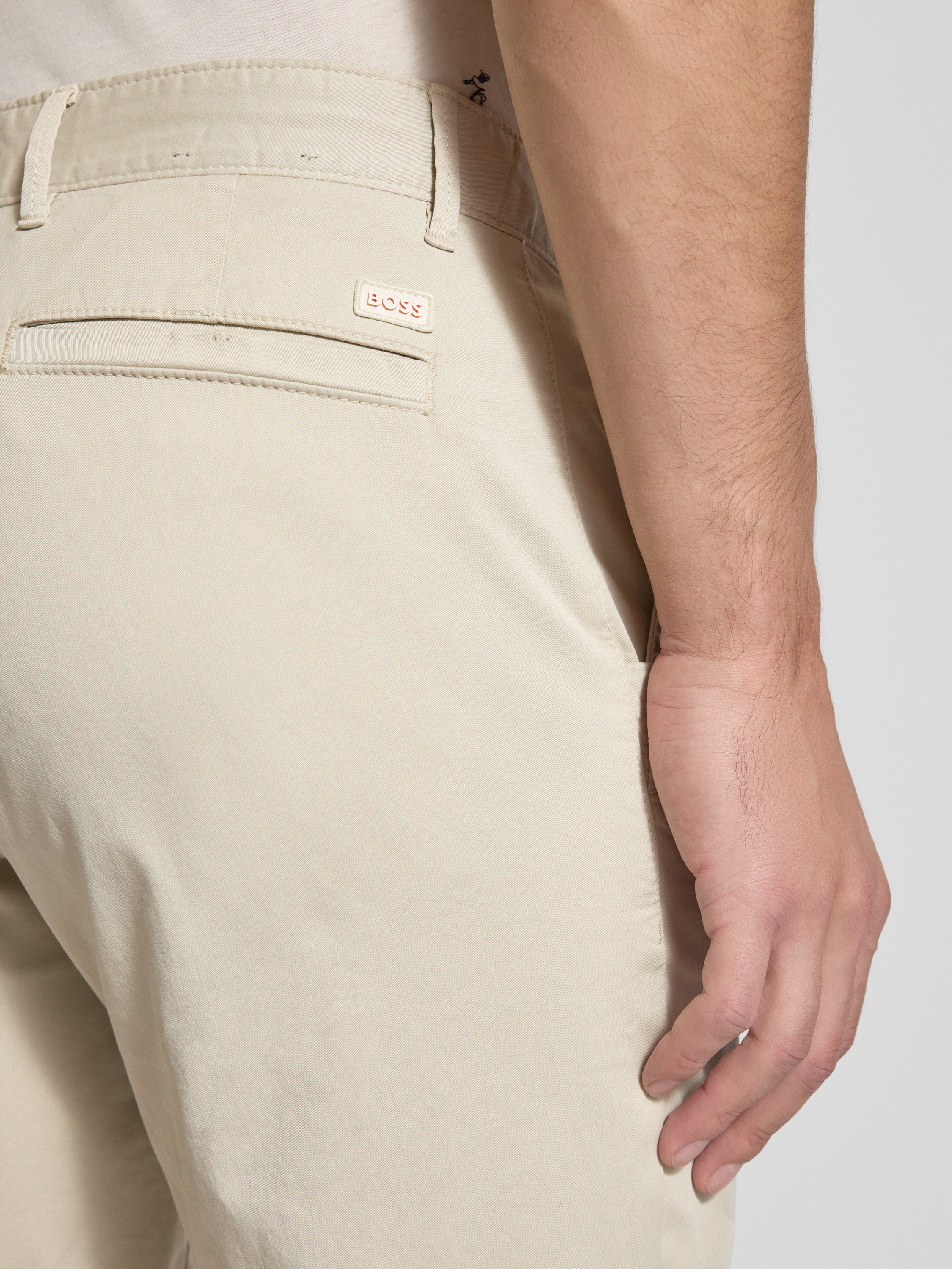 BOSS OrangeKorte slim fit chino met ceintuurlussen in ecru