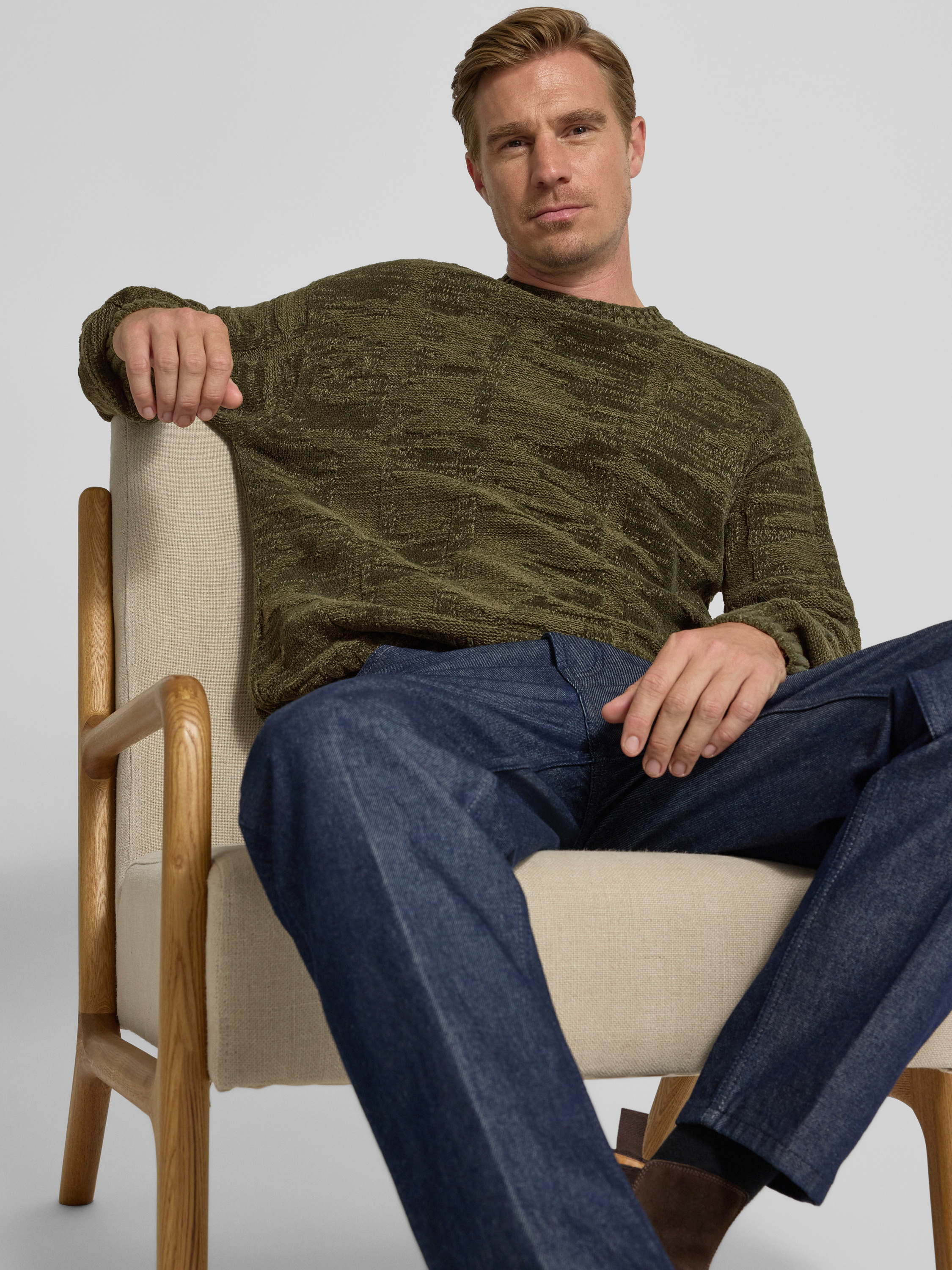 BOSS OrangeRegular fit gebreide pullover van katoenmix, model 'KIRESO' in kaki