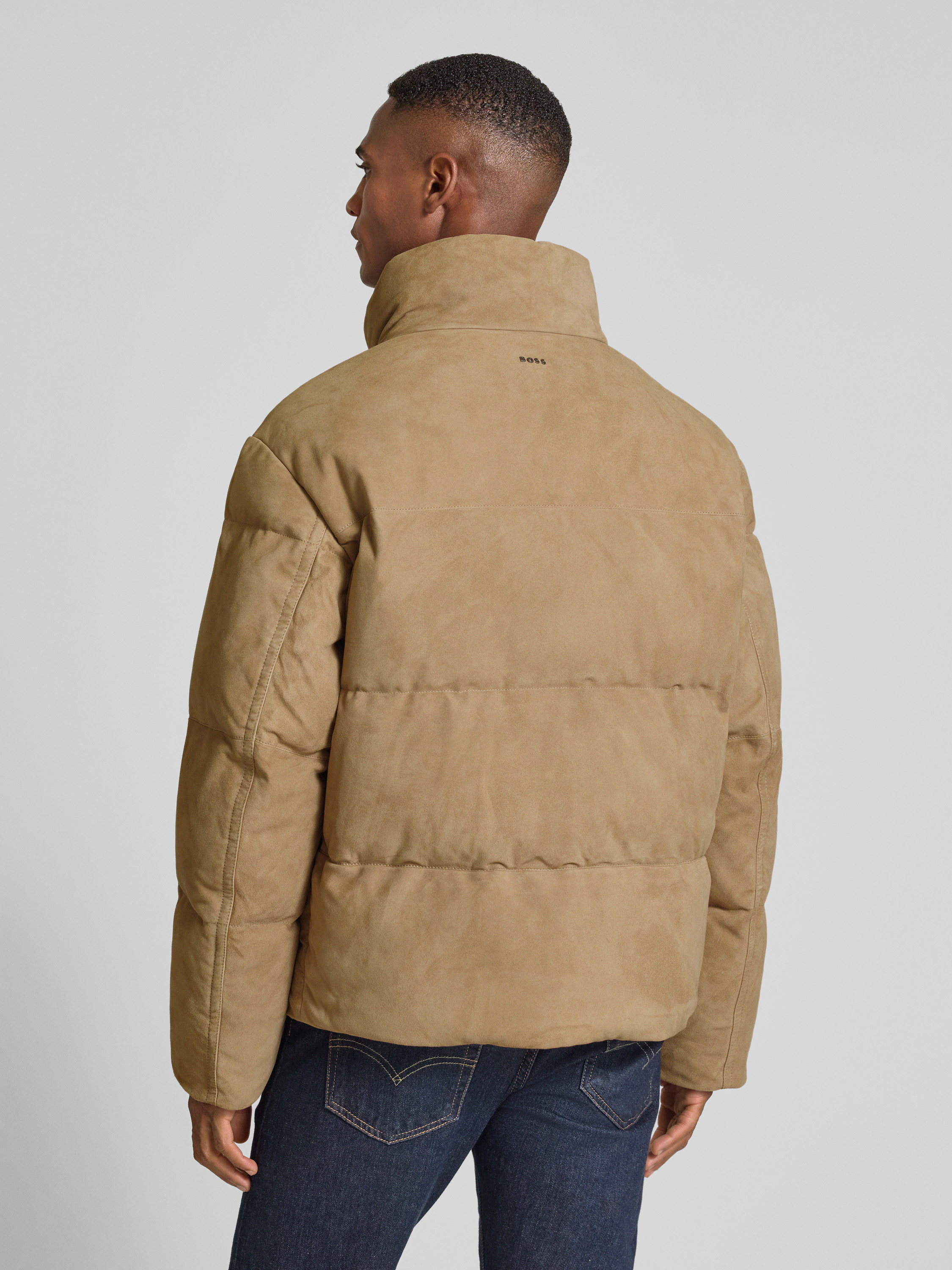 Regular fit gewatteerd jack van echt lamsleer, model 'JOCAMP' in olijfgroen