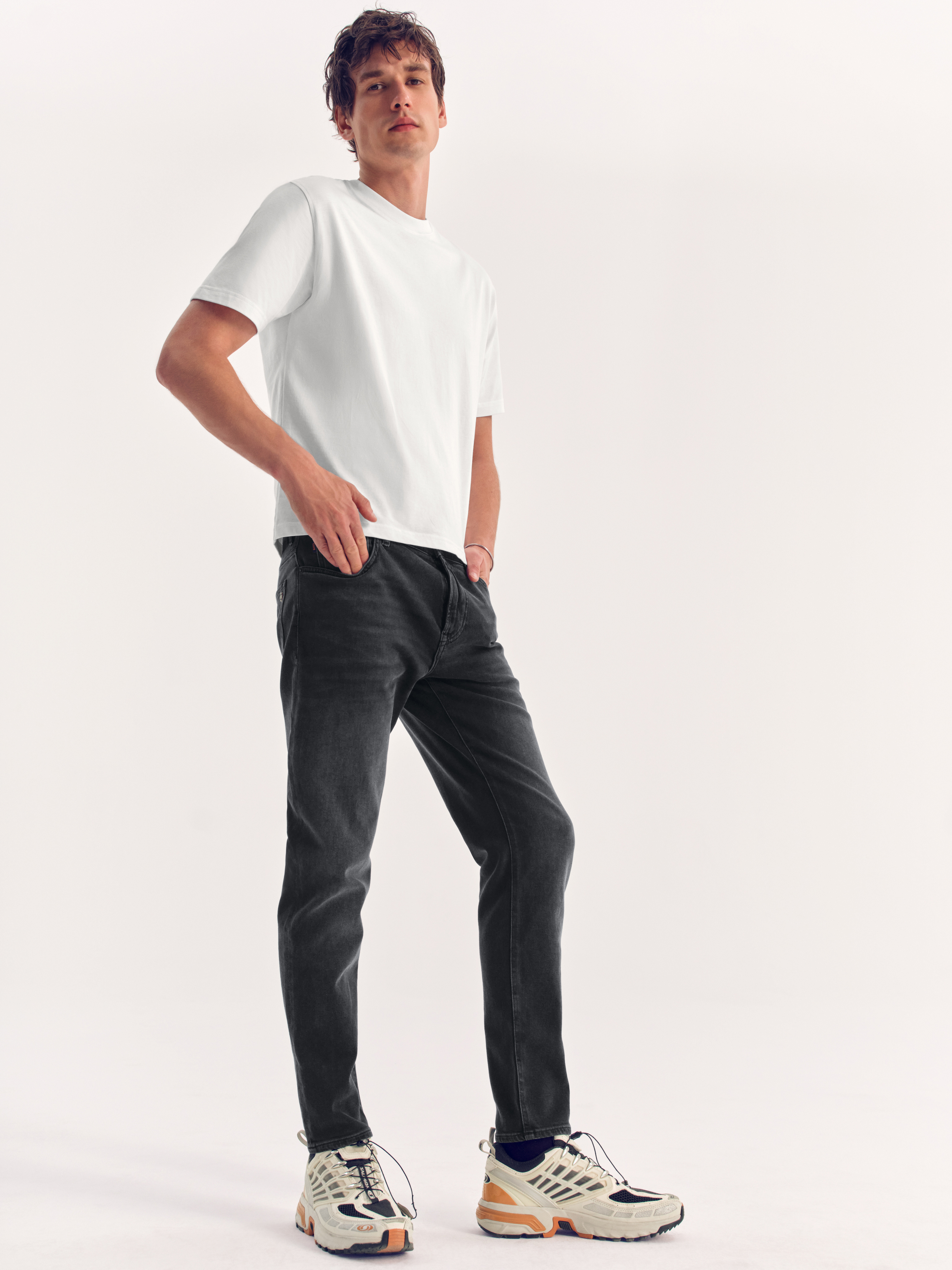 Regular fit jeans met labelpatch, model 'ONYX' in donkergrijs