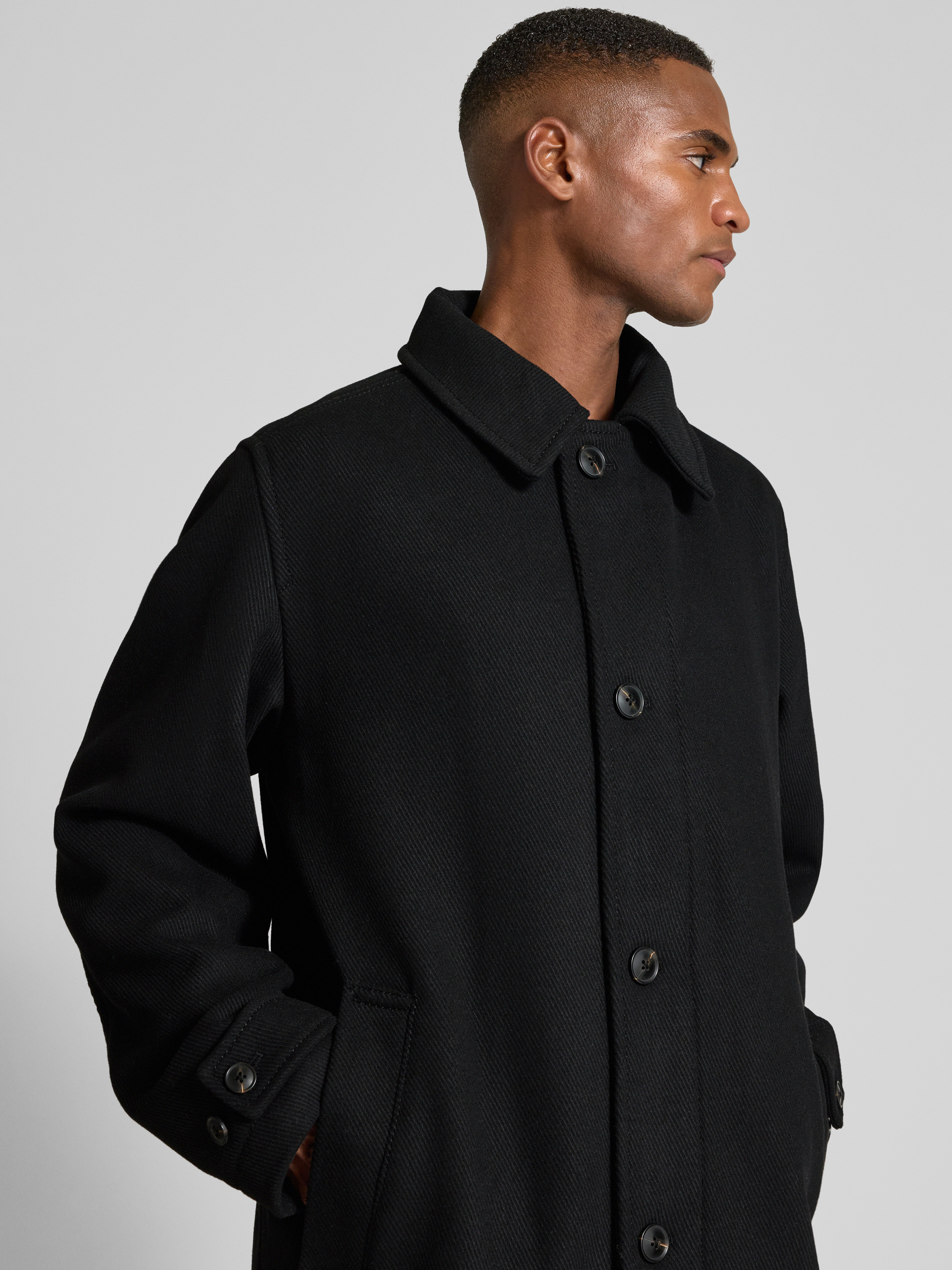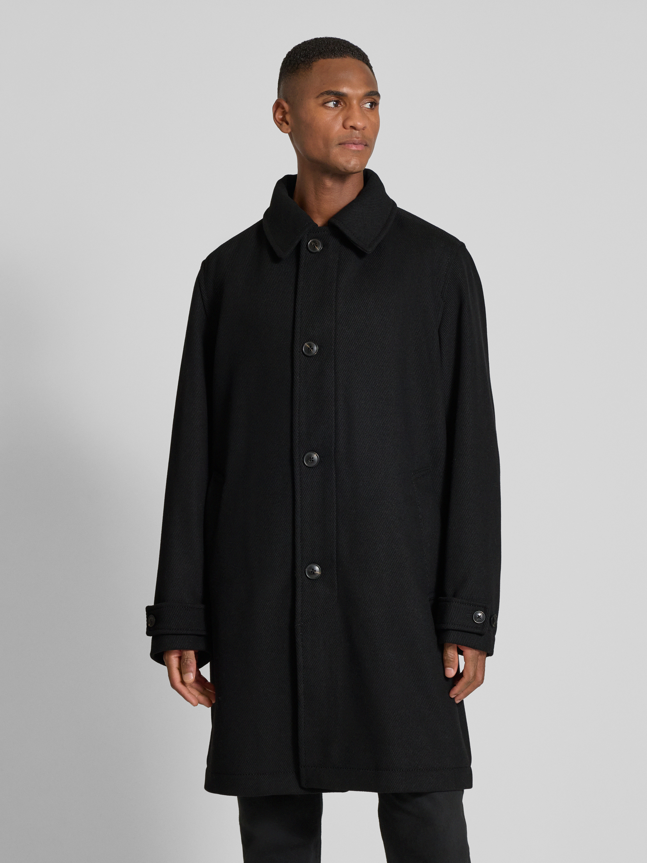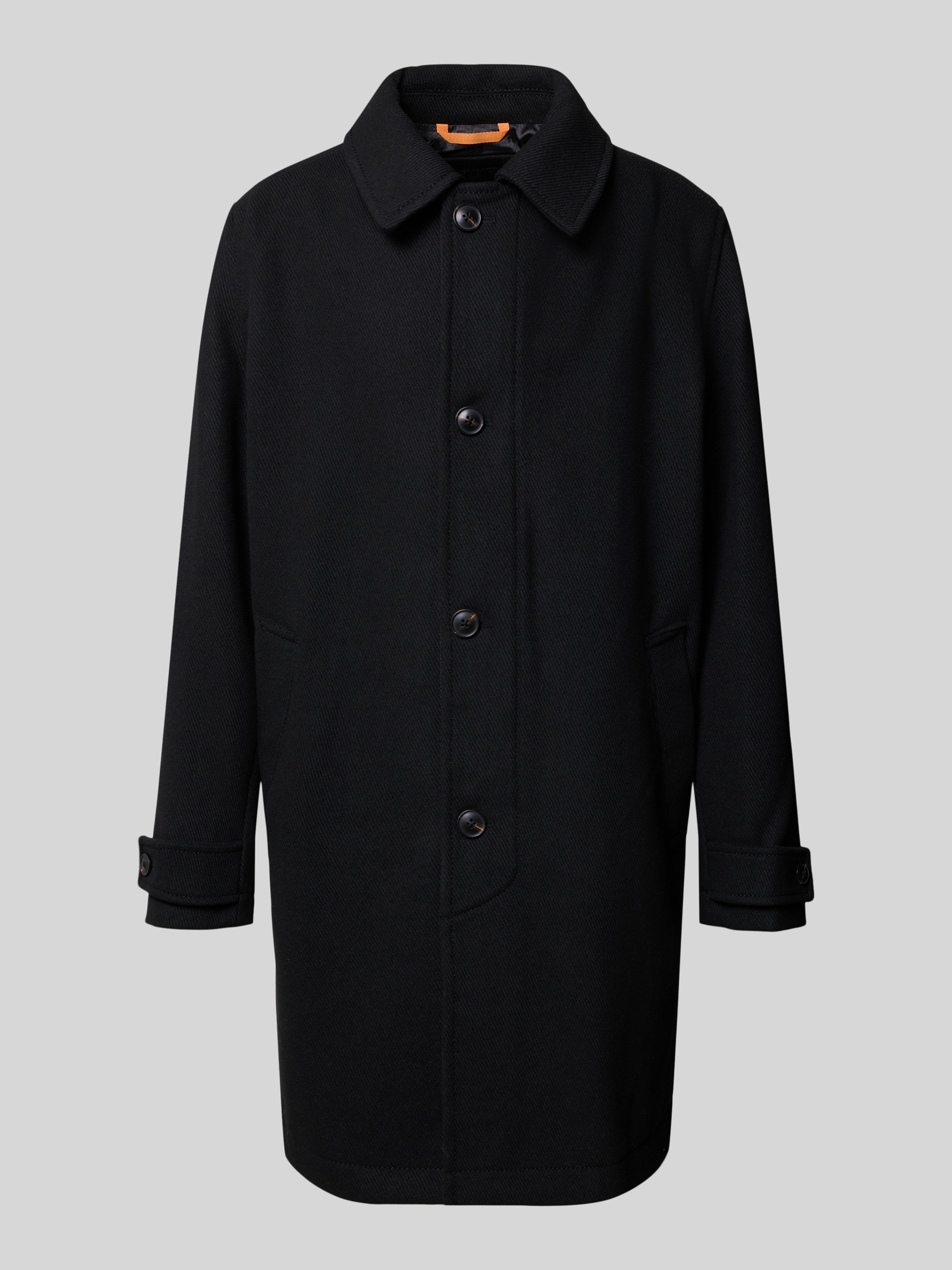 BOSS OrangeRegular fit lange wollen jas met platte kraag, model 'OCOZIER' in zwart