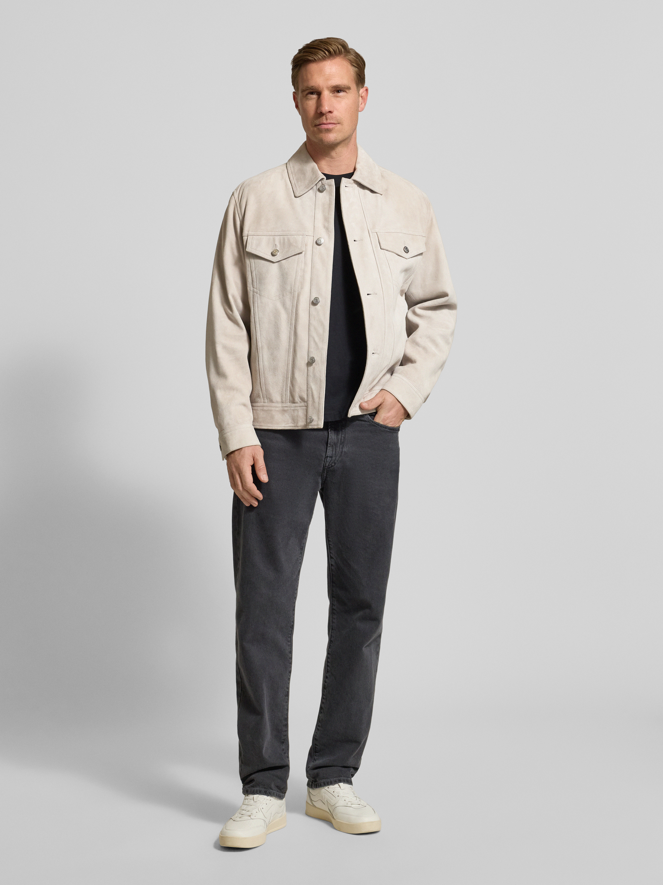 Regular fit leren jack van echt geitenleer, model 'JOHOT' in zand