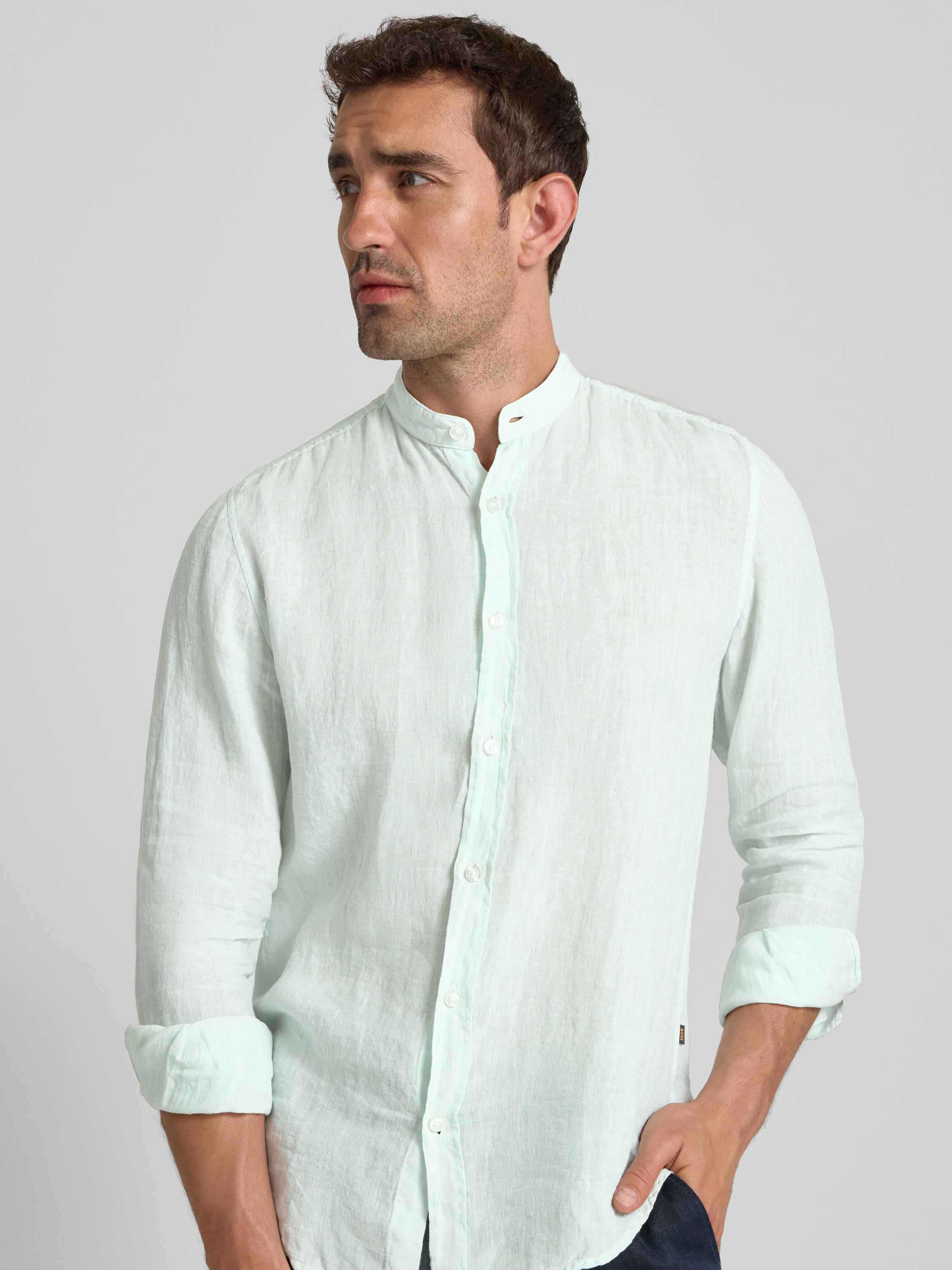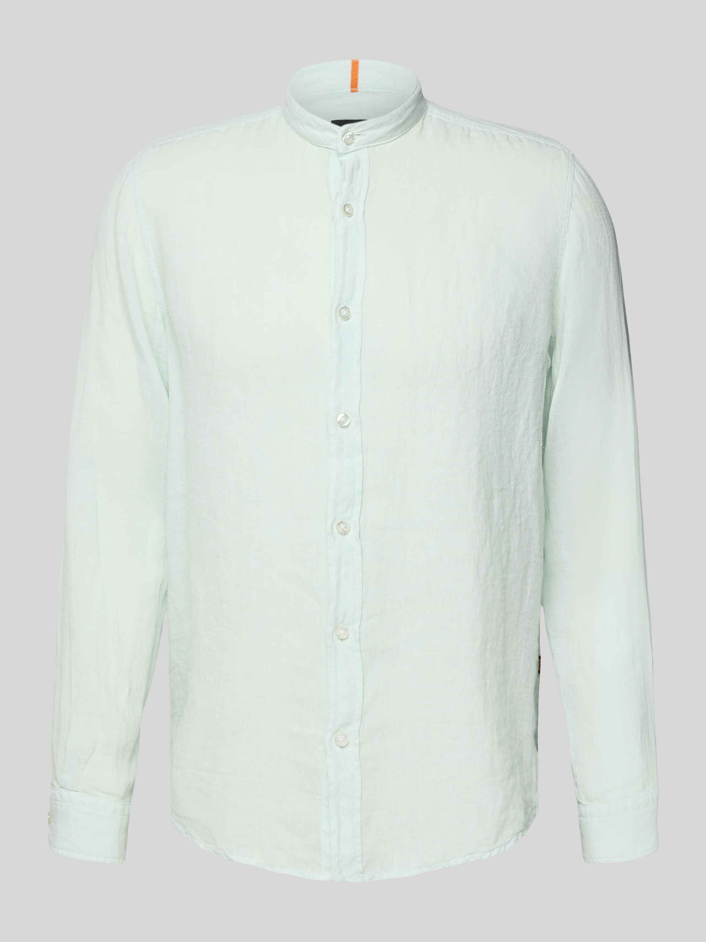 Regular fit linnen overhemd met opstaande kraag, model 'Race' in lindegroen