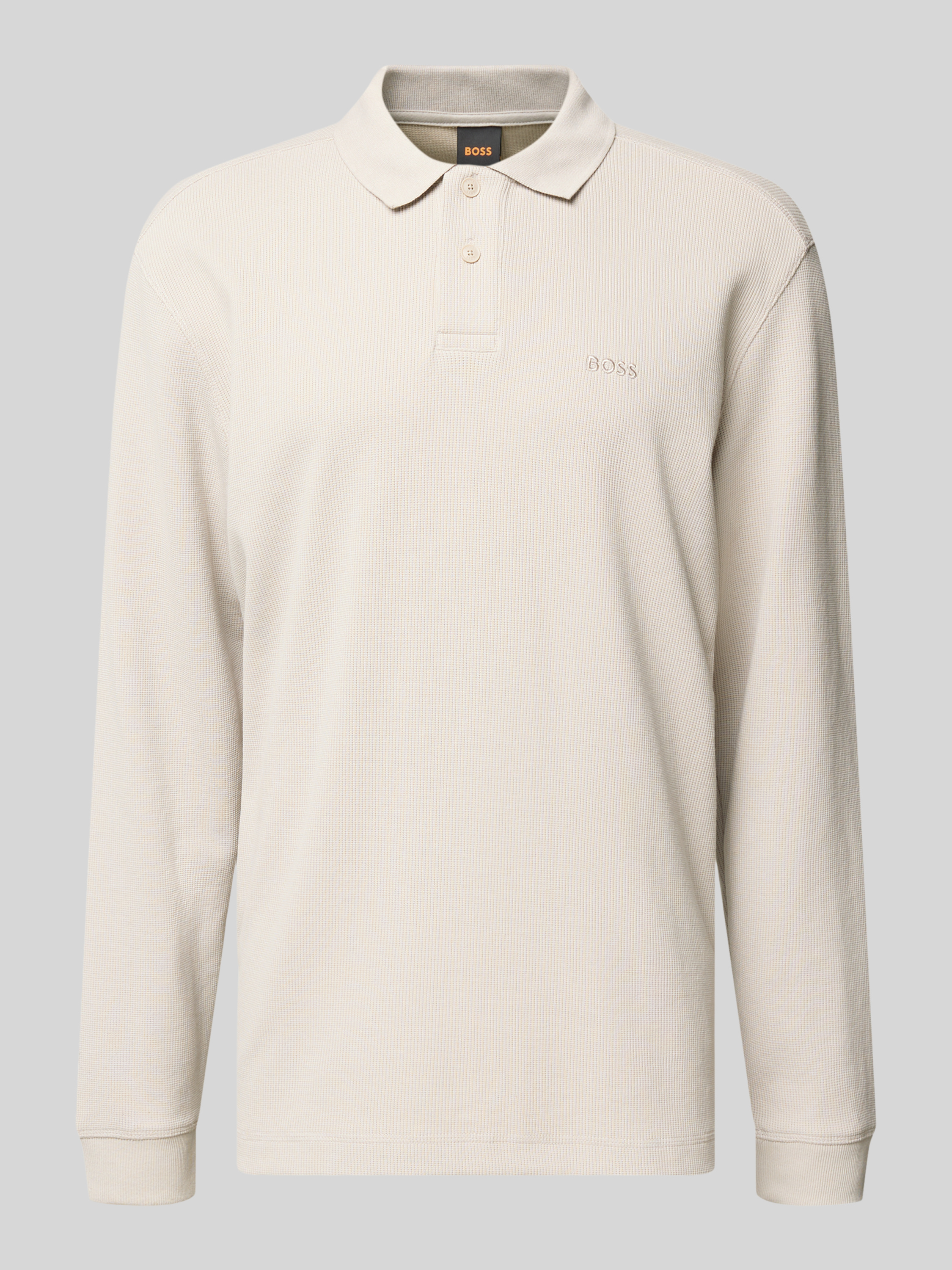 BOSS OrangeRegular fit poloshirt van katoenmix, model 'PETEMPESTOLONG' in zand