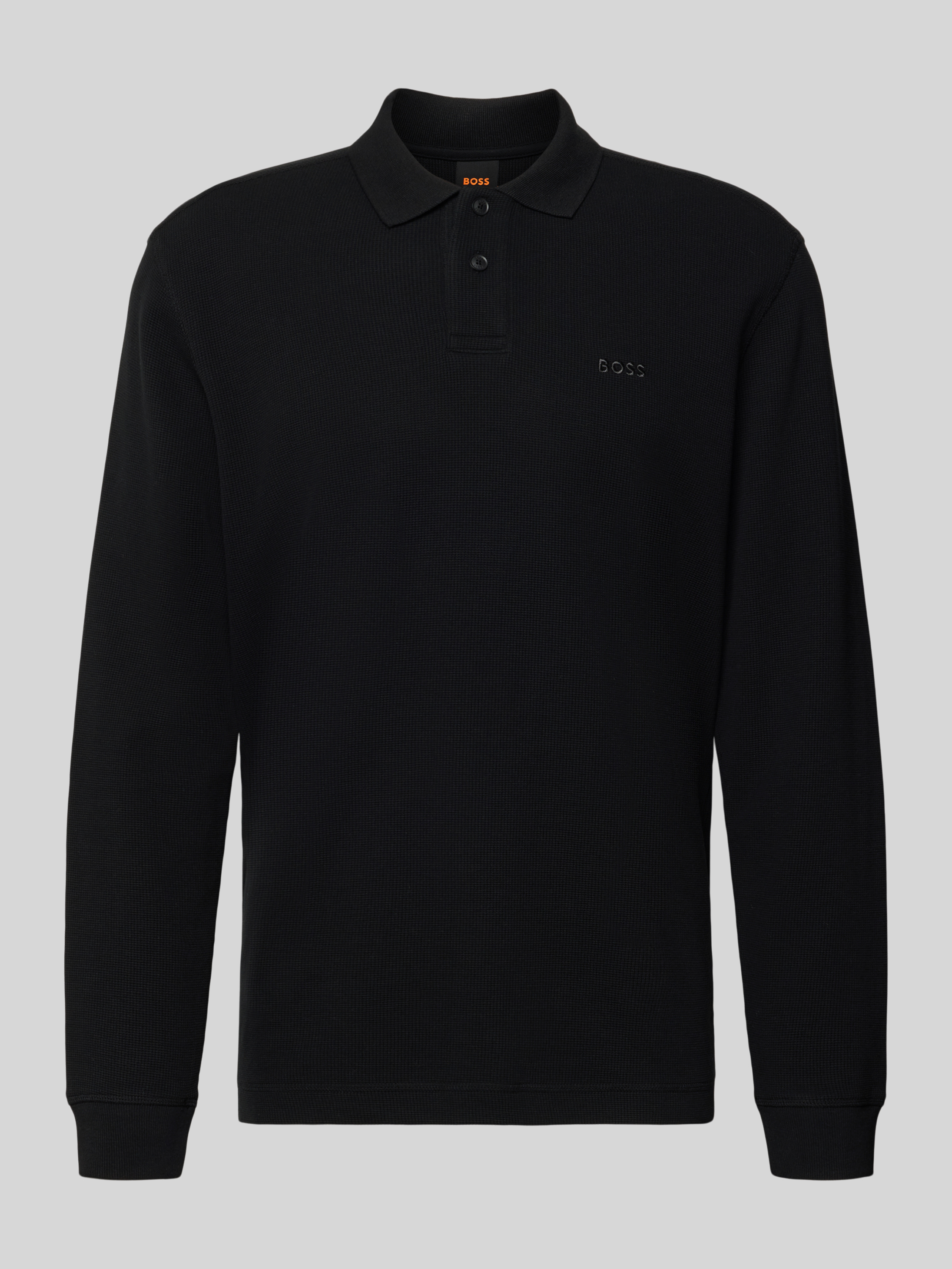 BOSS OrangeRegular fit poloshirt van katoenmix, model 'PETEMPESTOLONG' in zwart