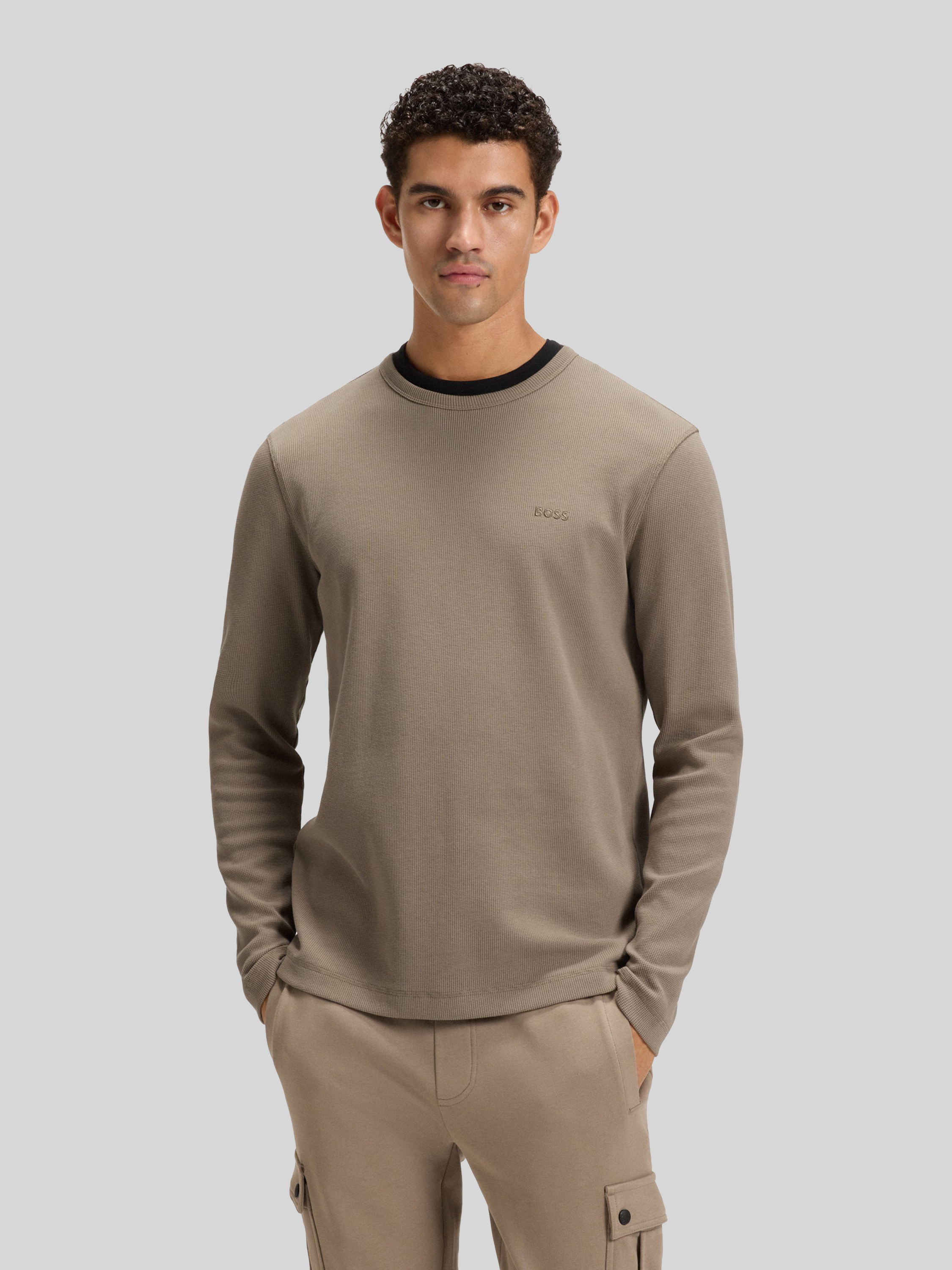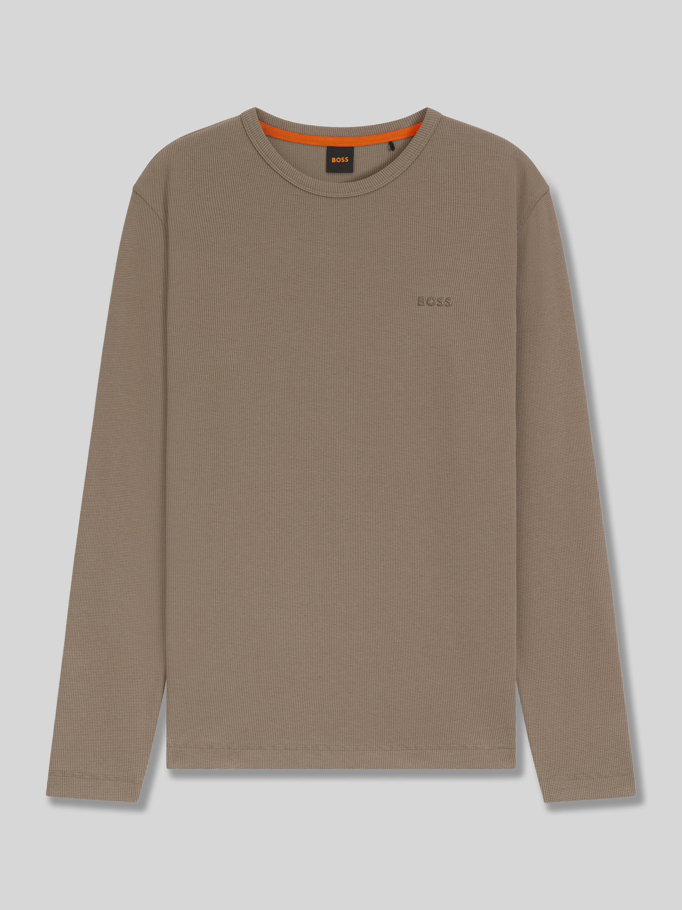 BOSS OrangeRegular fit shirt met lange mouwen en wafelstructuur, model 'TEMPESTO' in olijfgroen
