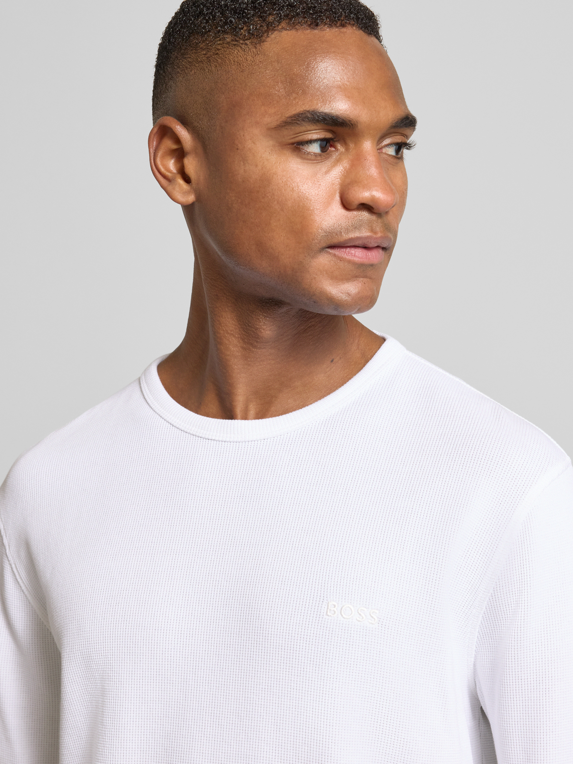 BOSS OrangeRegular fit shirt met lange mouwen en wafelstructuur, model 'TEMPESTO' in wit