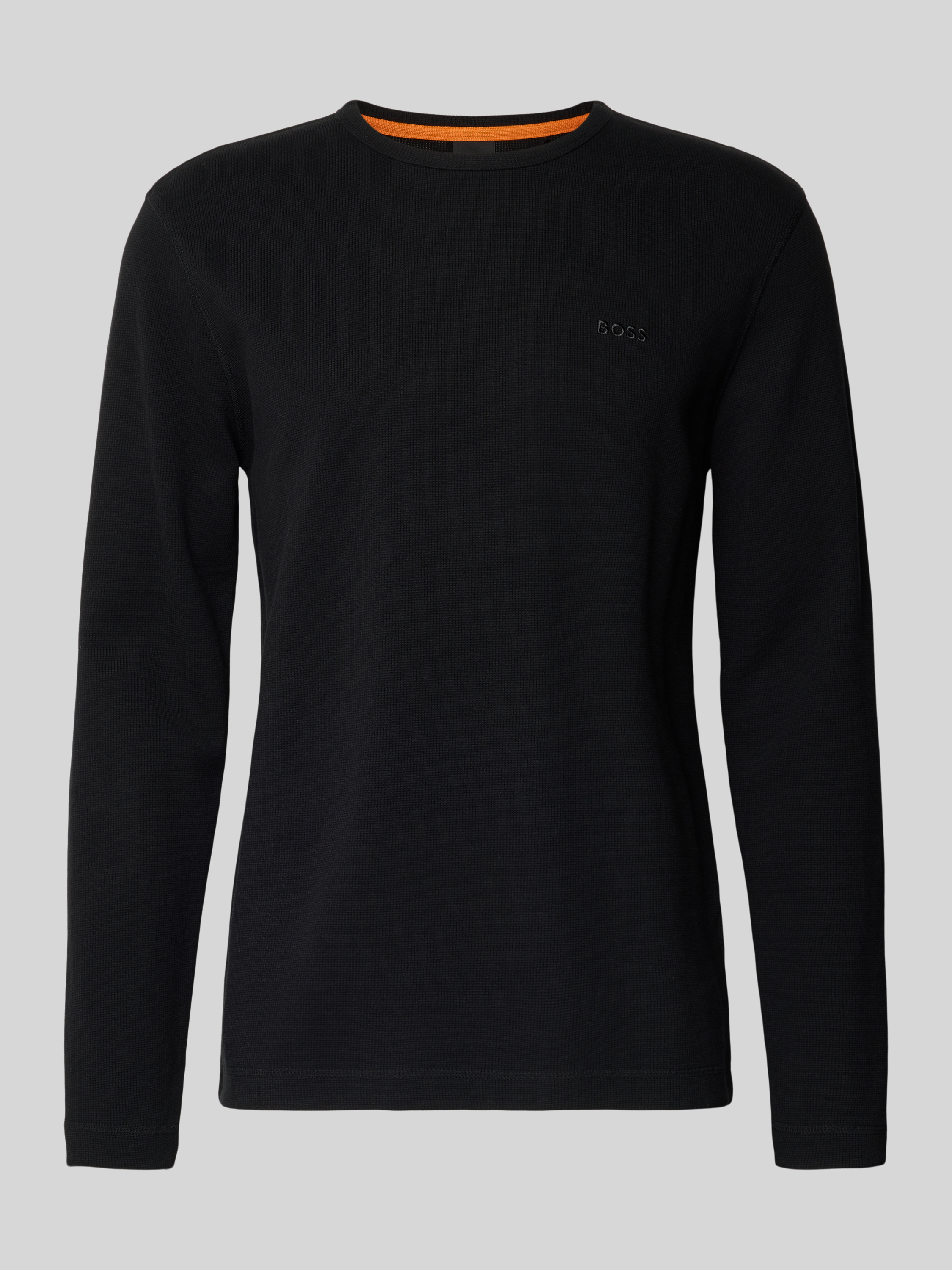 BOSS OrangeRegular fit shirt met lange mouwen en wafelstructuur, model 'TEMPESTO' in zwart