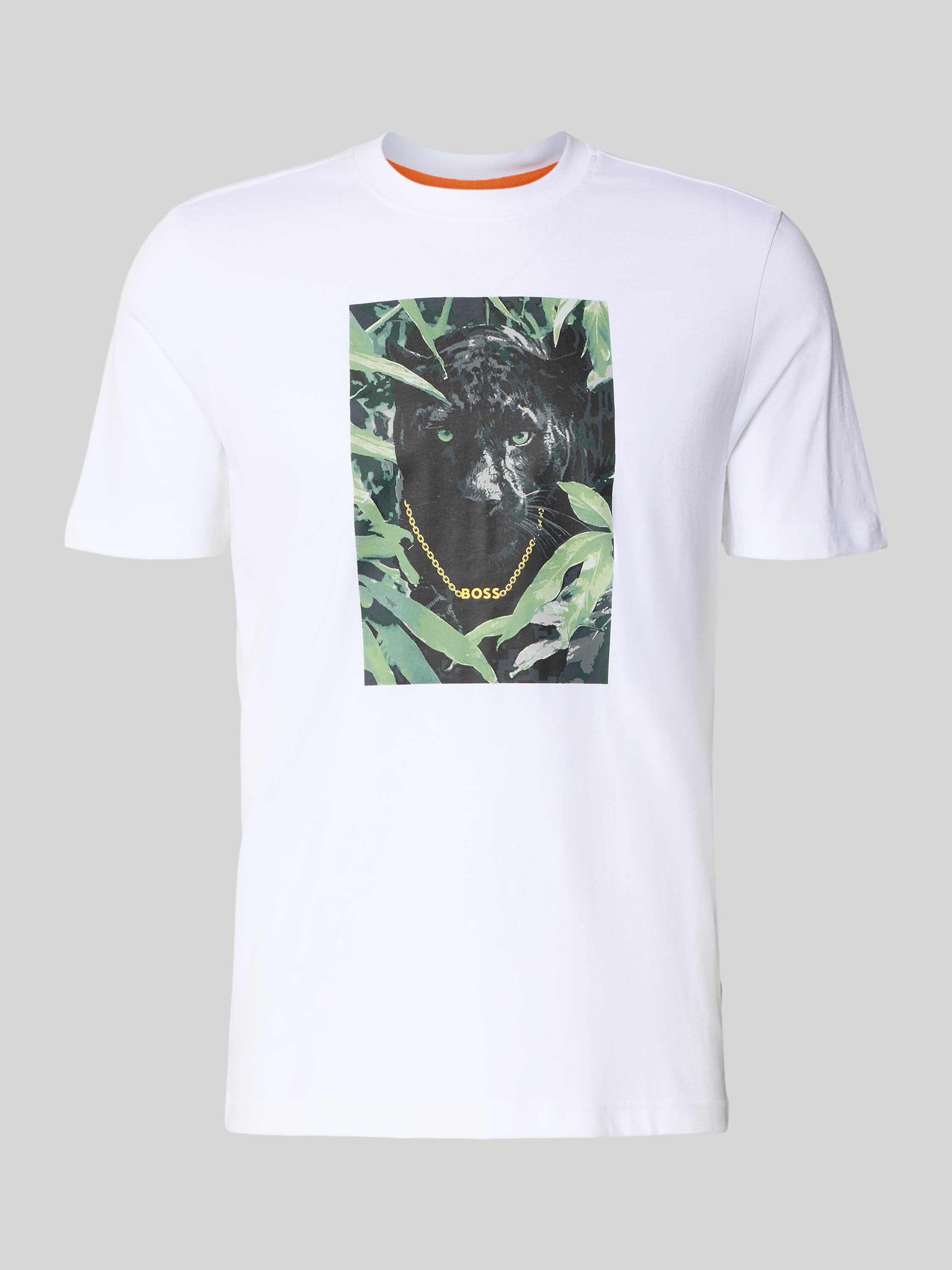 Regular fit T-shirt van puur katoen, model 'ANIMALI' in wit
