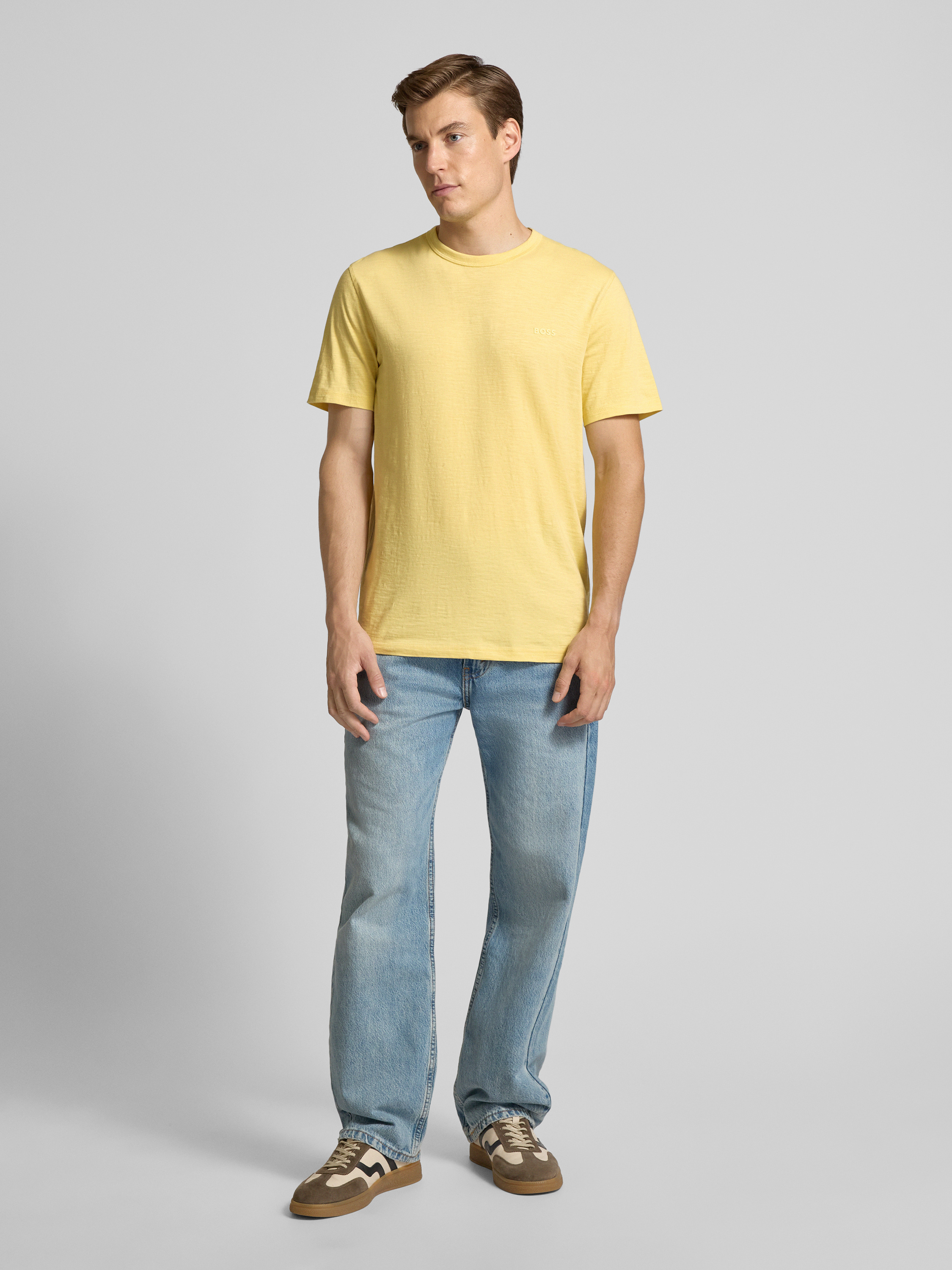 Regular fit T-shirt van puur katoen, model 'TEGOOD' in geel