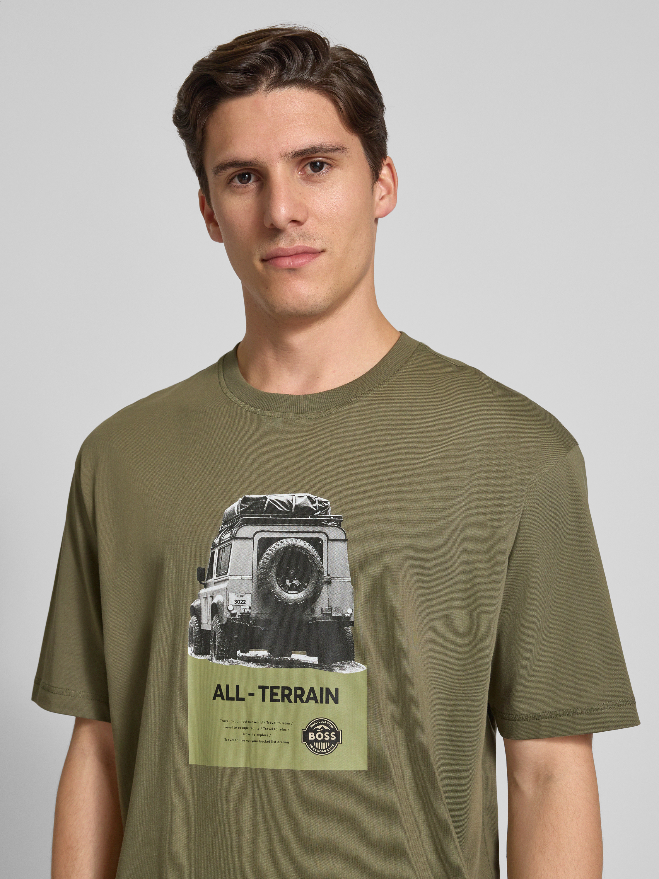 Regular fit T-shirt van puur katoen, model 'WAGON' in kaki