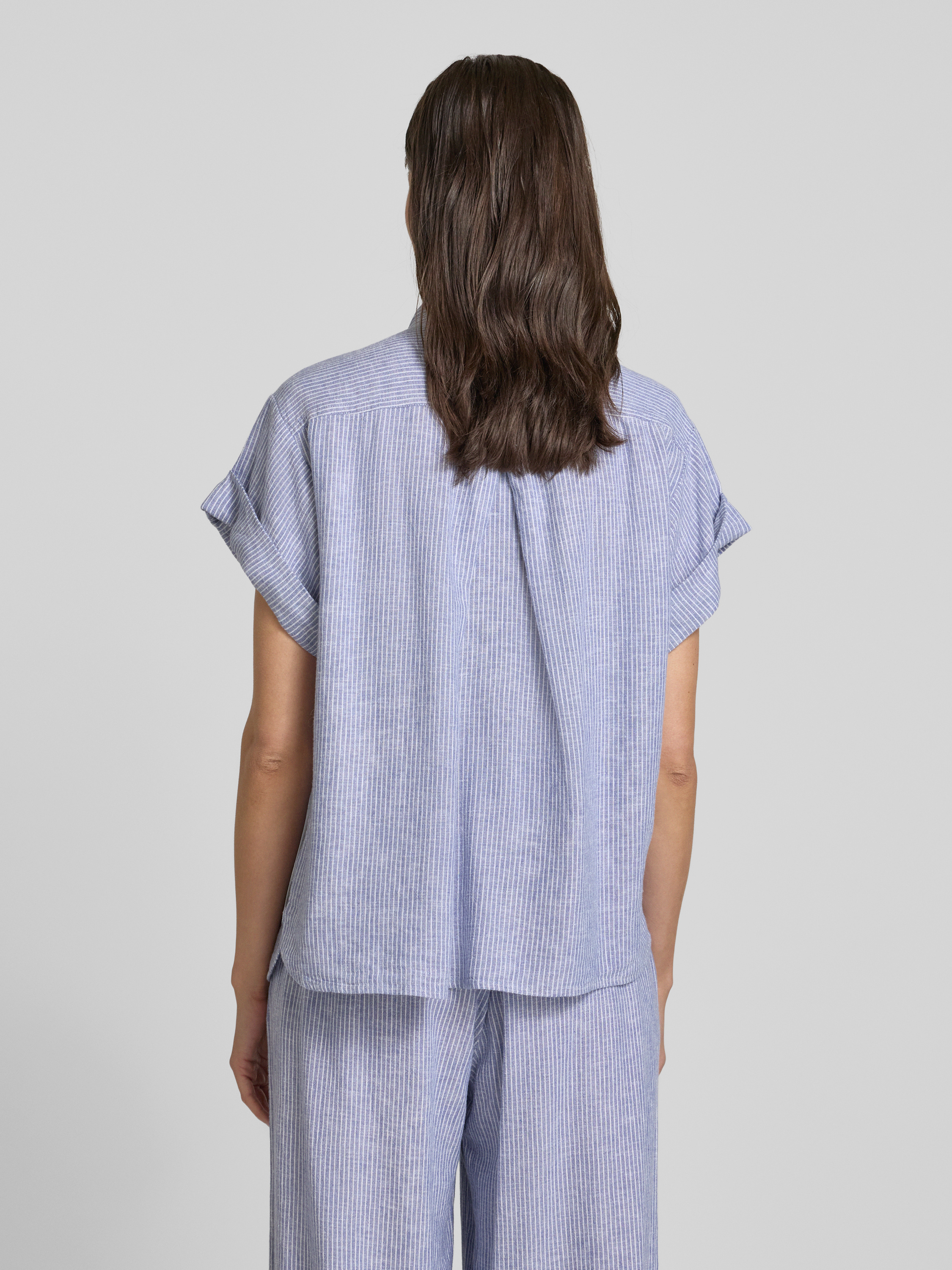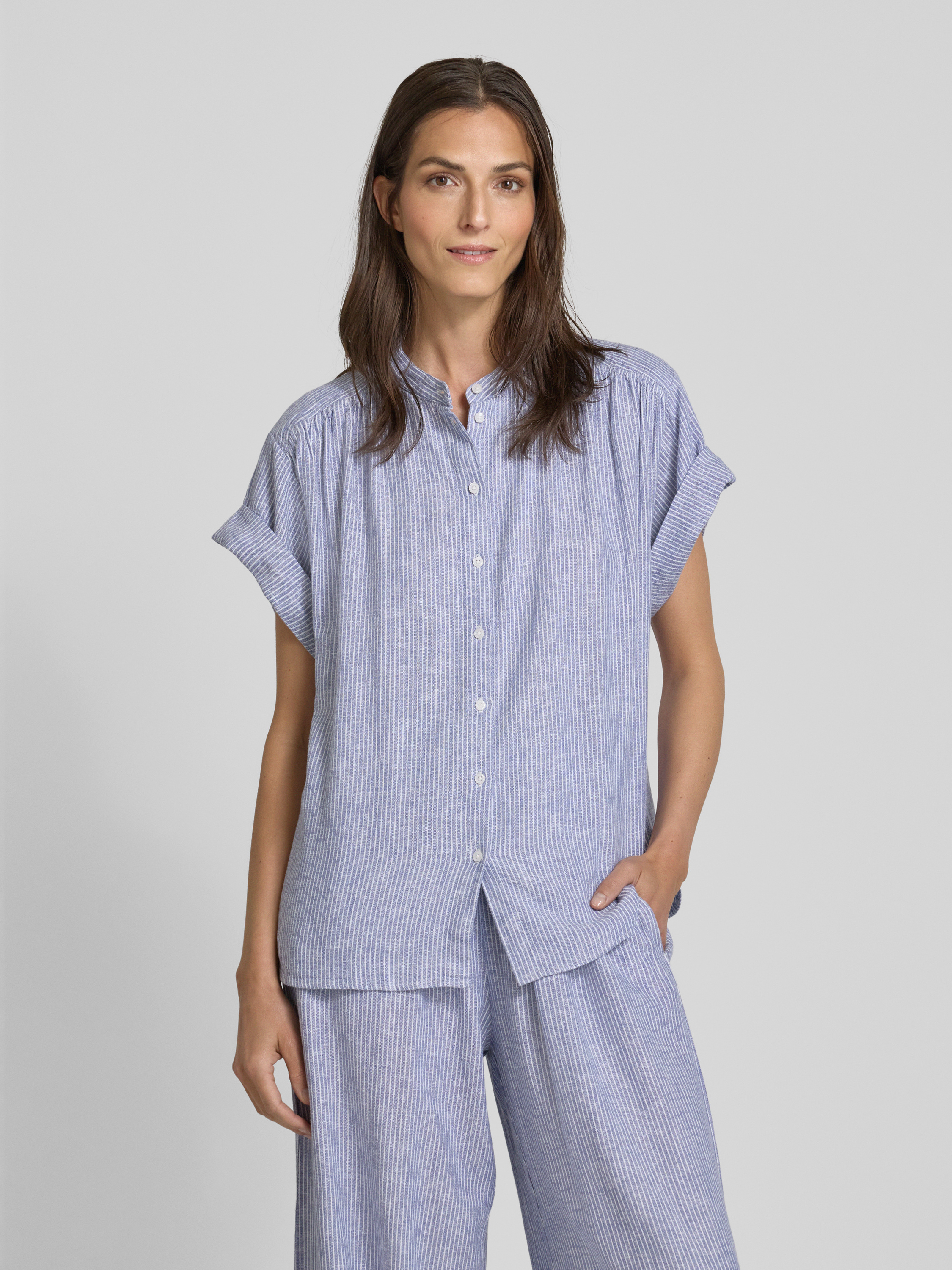 Relaxed fit blouse met opstaande kraag, model 'Boleana' in lichtblauw