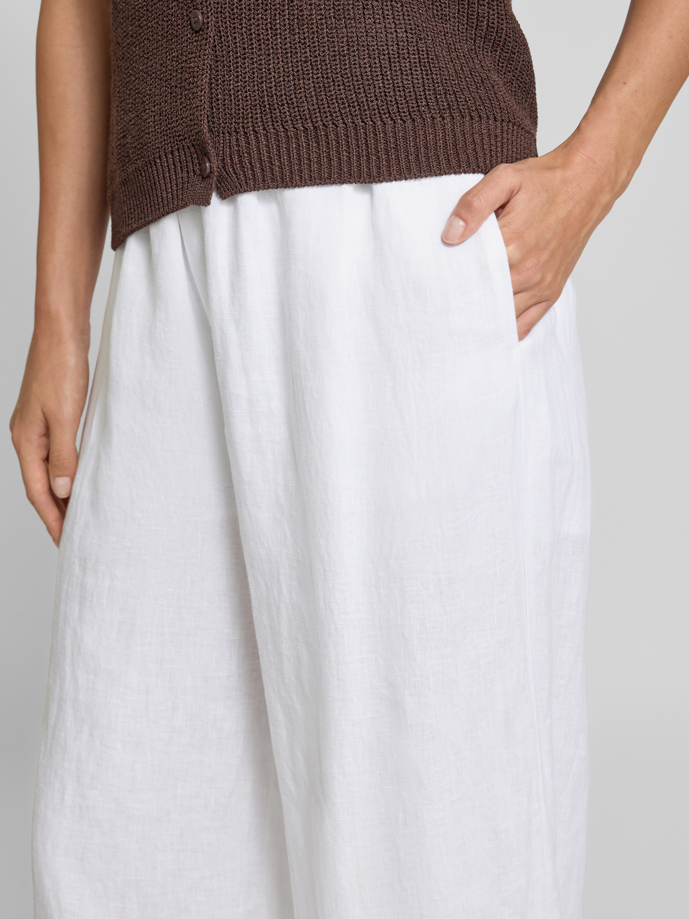 Relaxed fit linnen broek met elastische band, model 'TOREANA' in wit