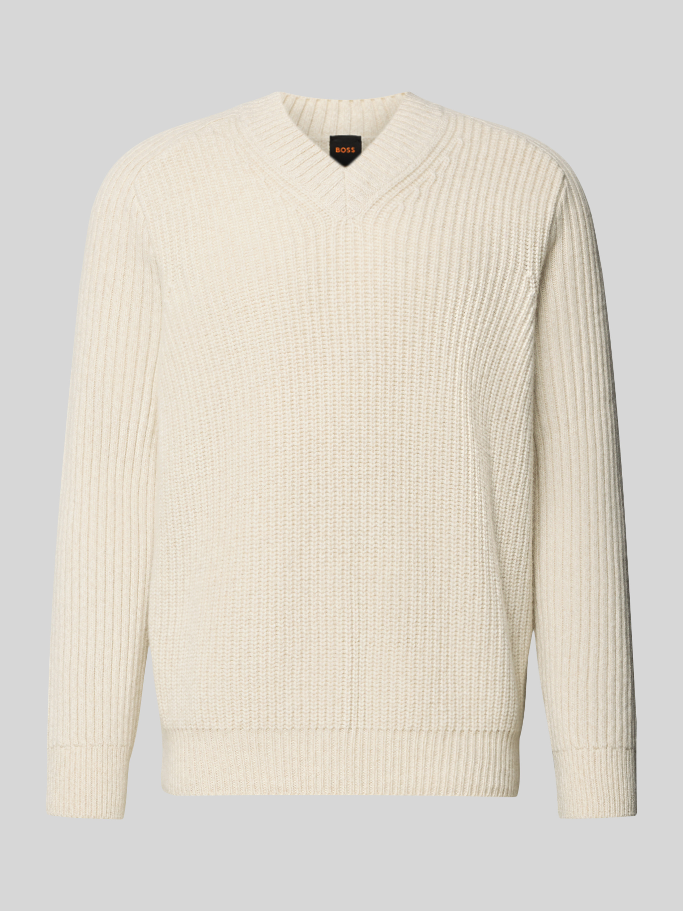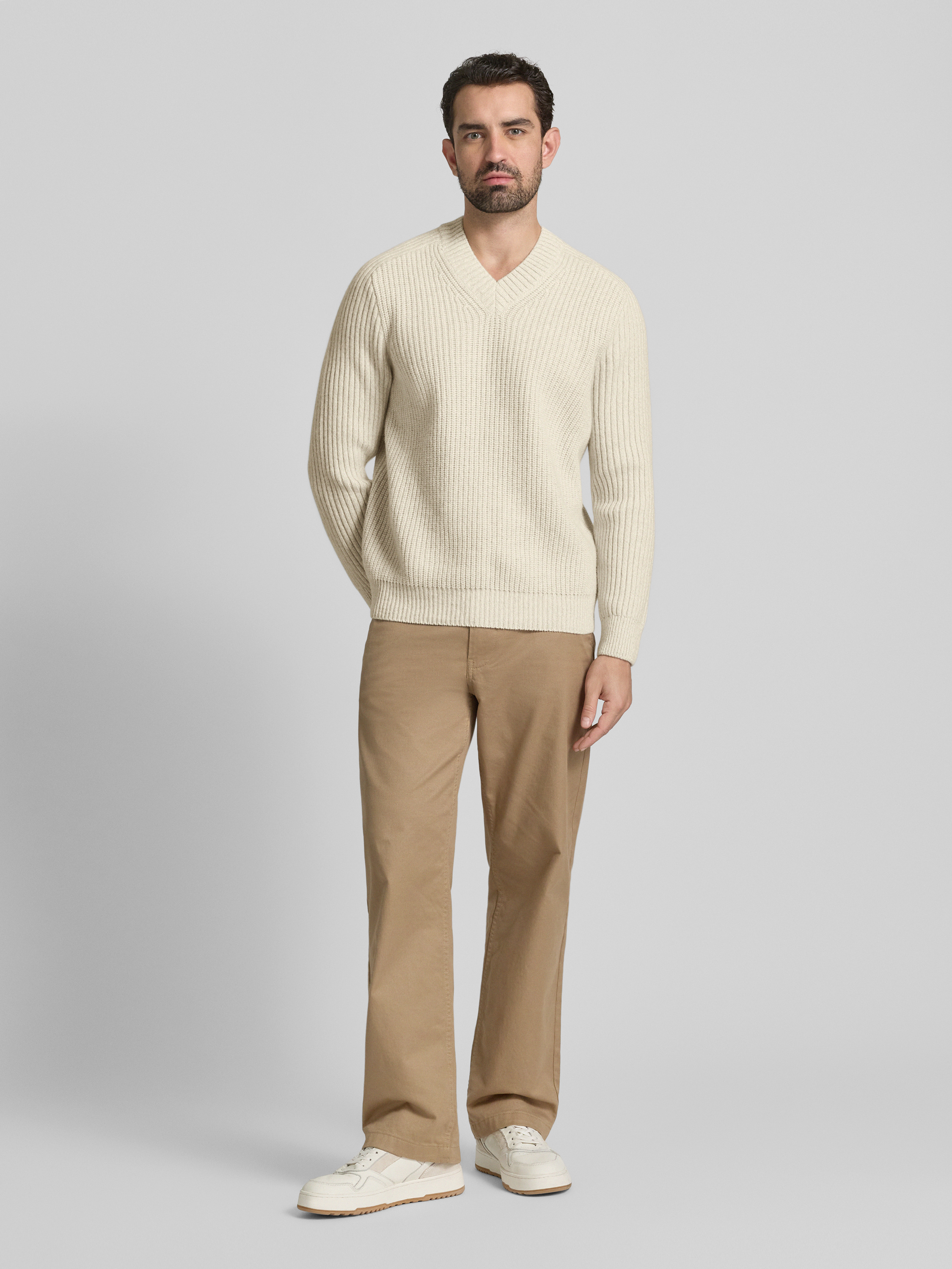 Shaped fit gebreide pullover van scheerwolmix, model 'KARINET' in zand