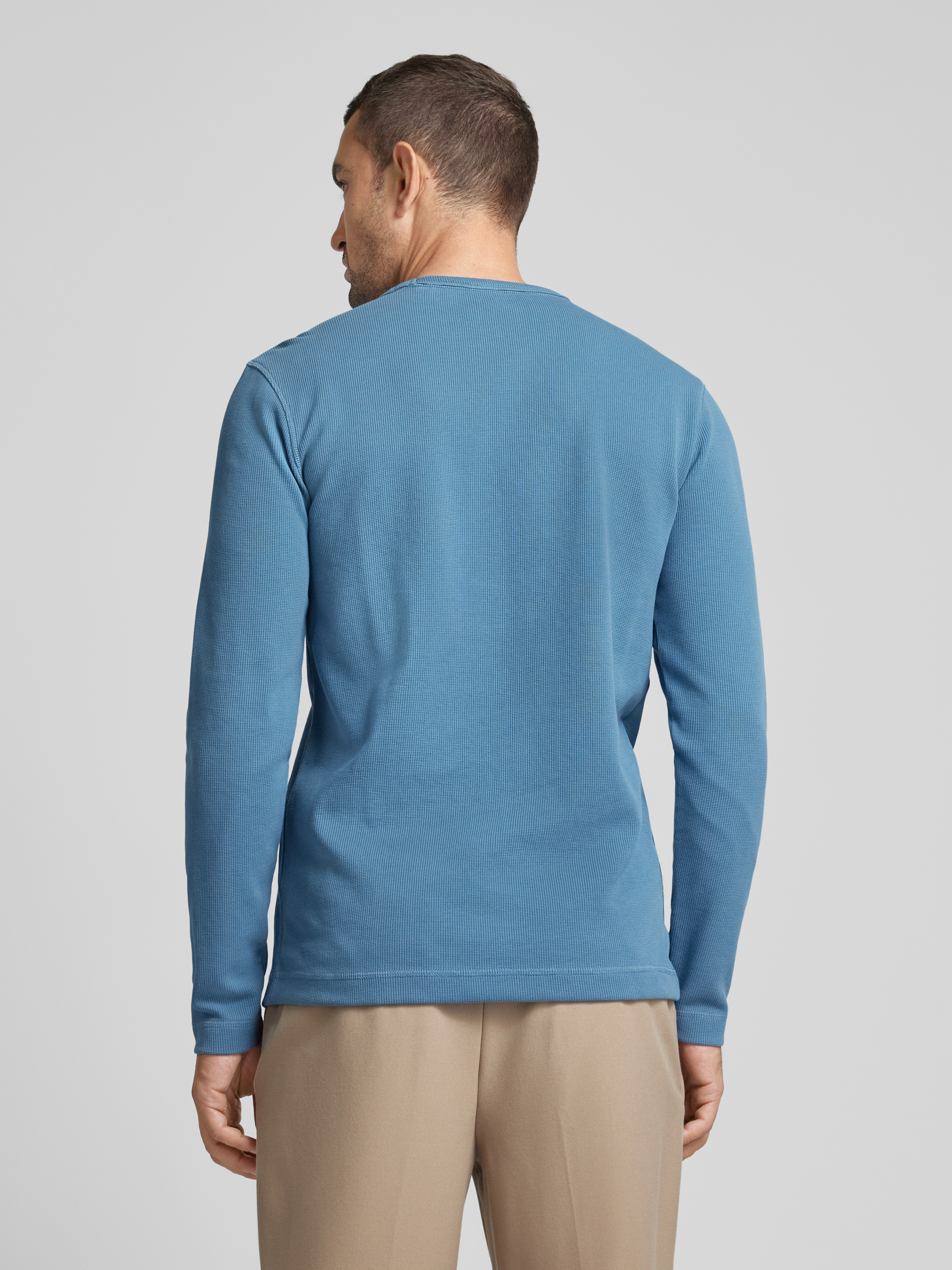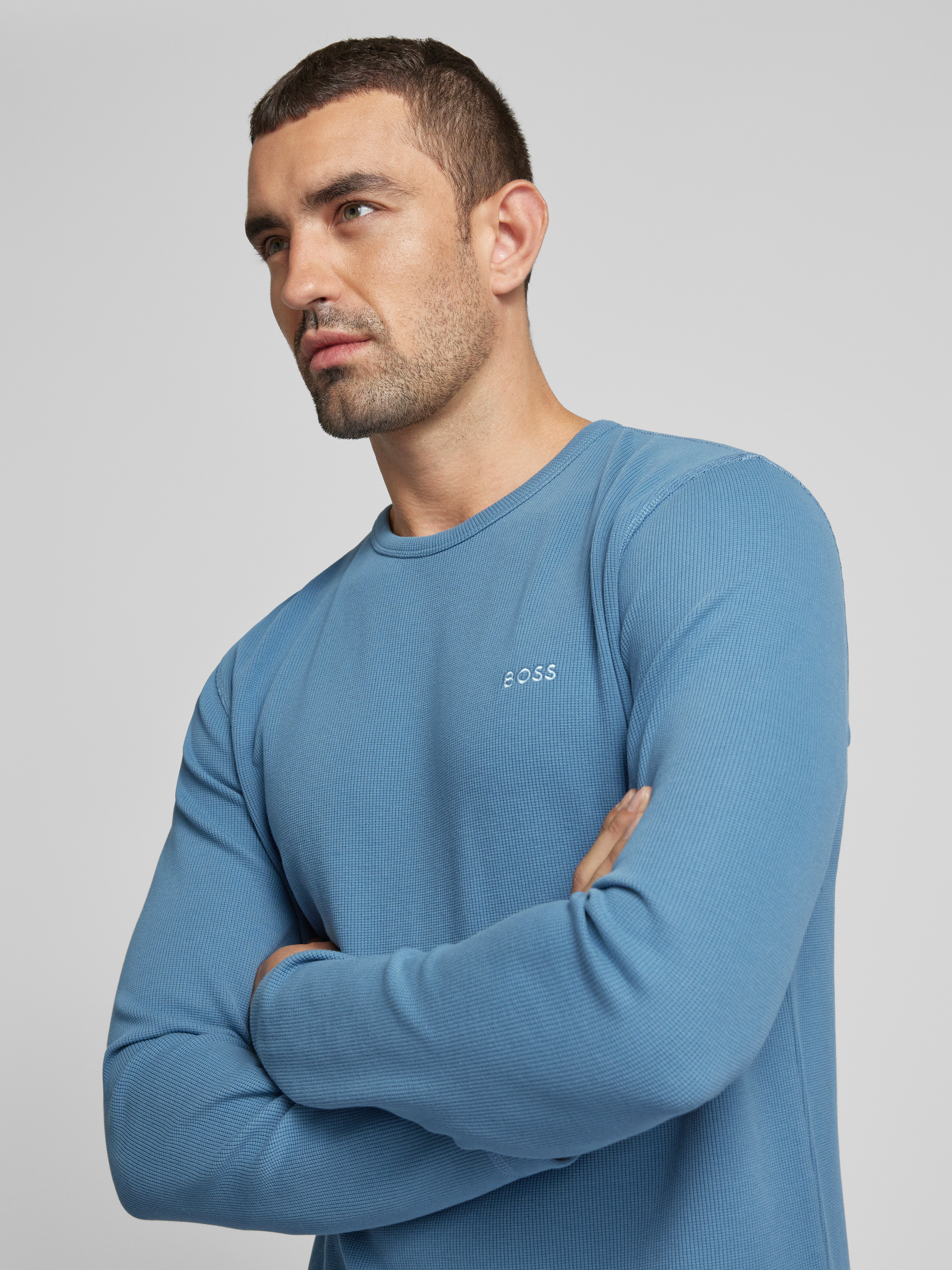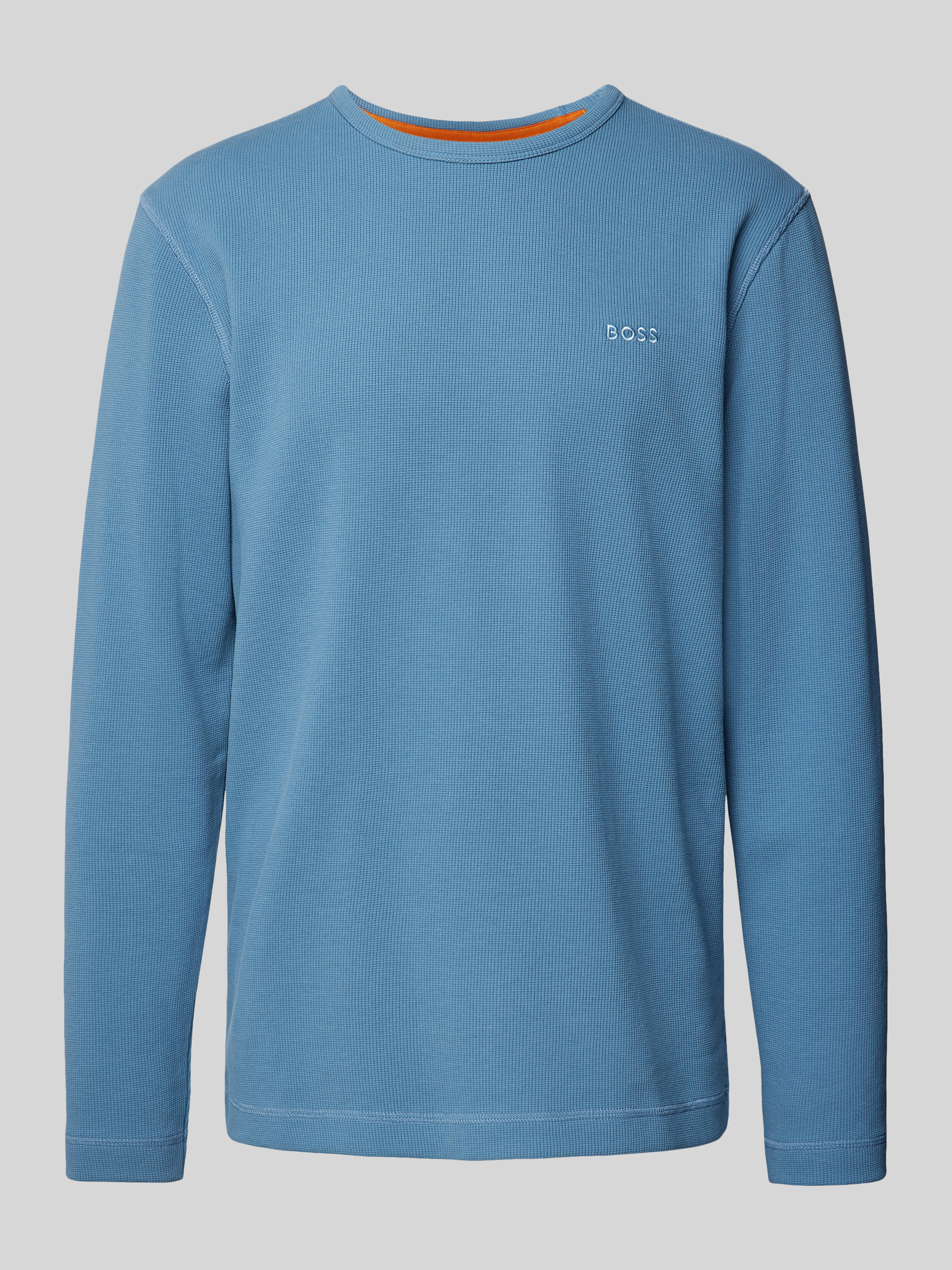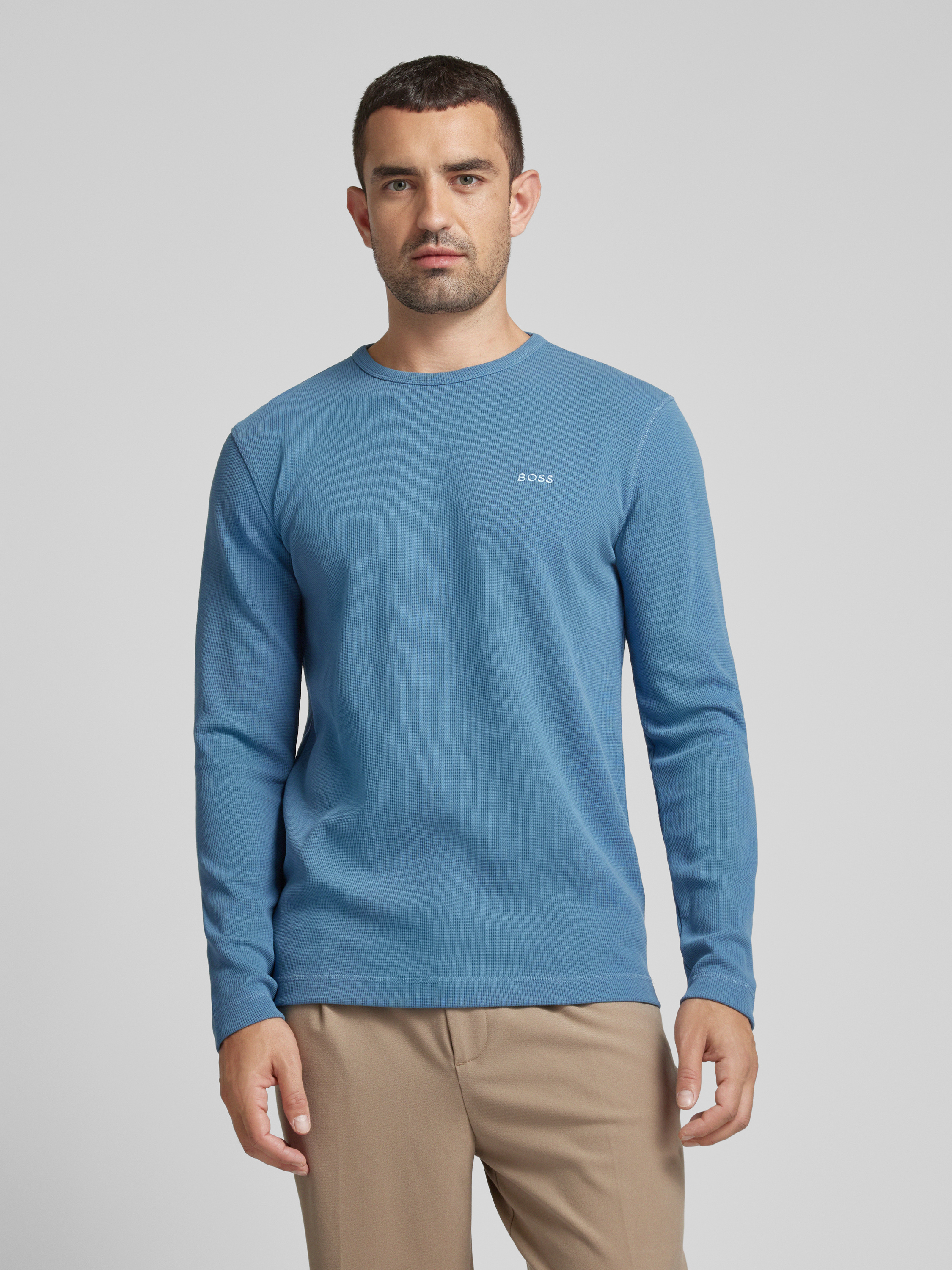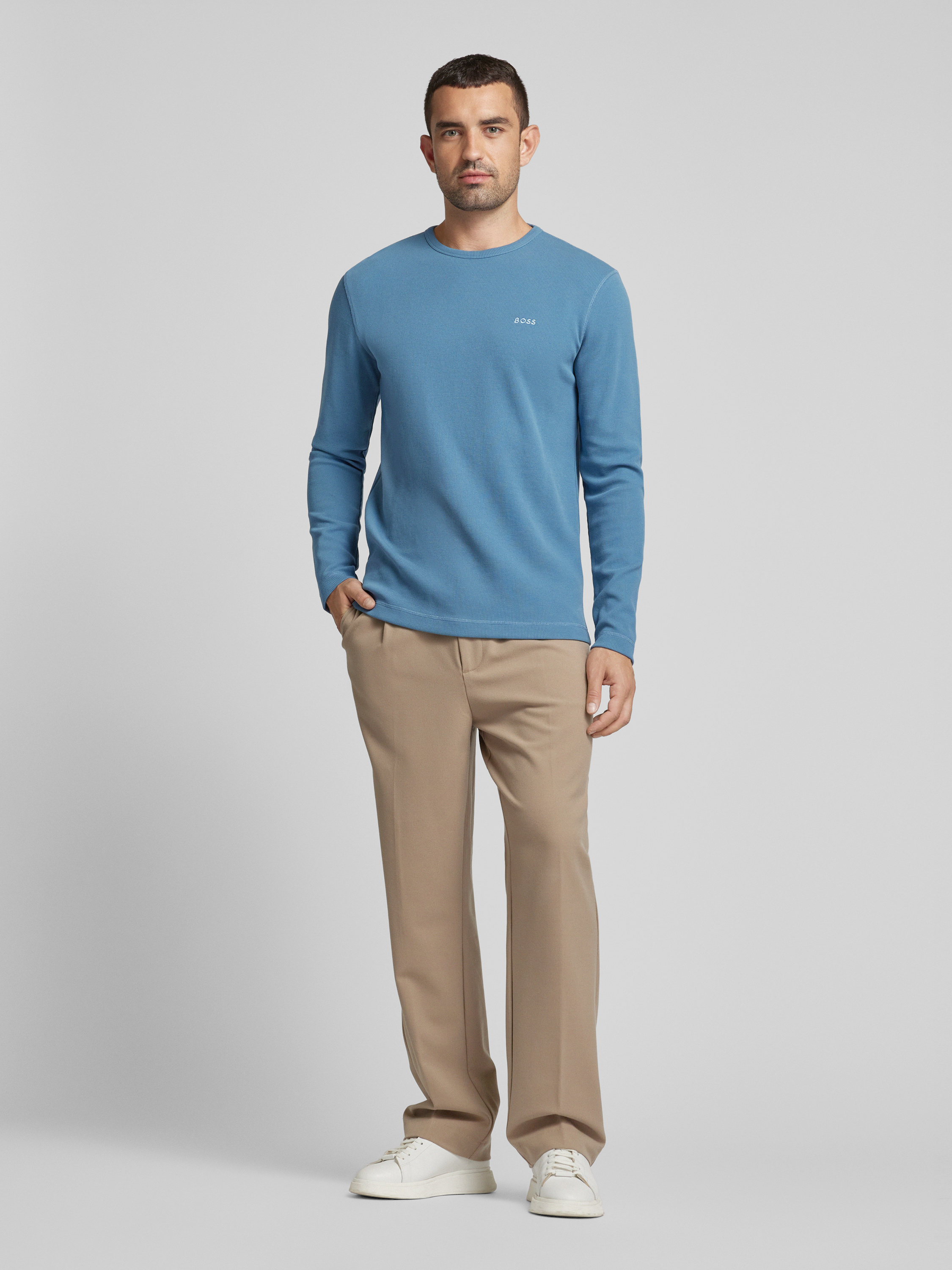 BOSS OrangeShirt met lange mouwen en labelstitching, model 'Tempesto' in rookblauw