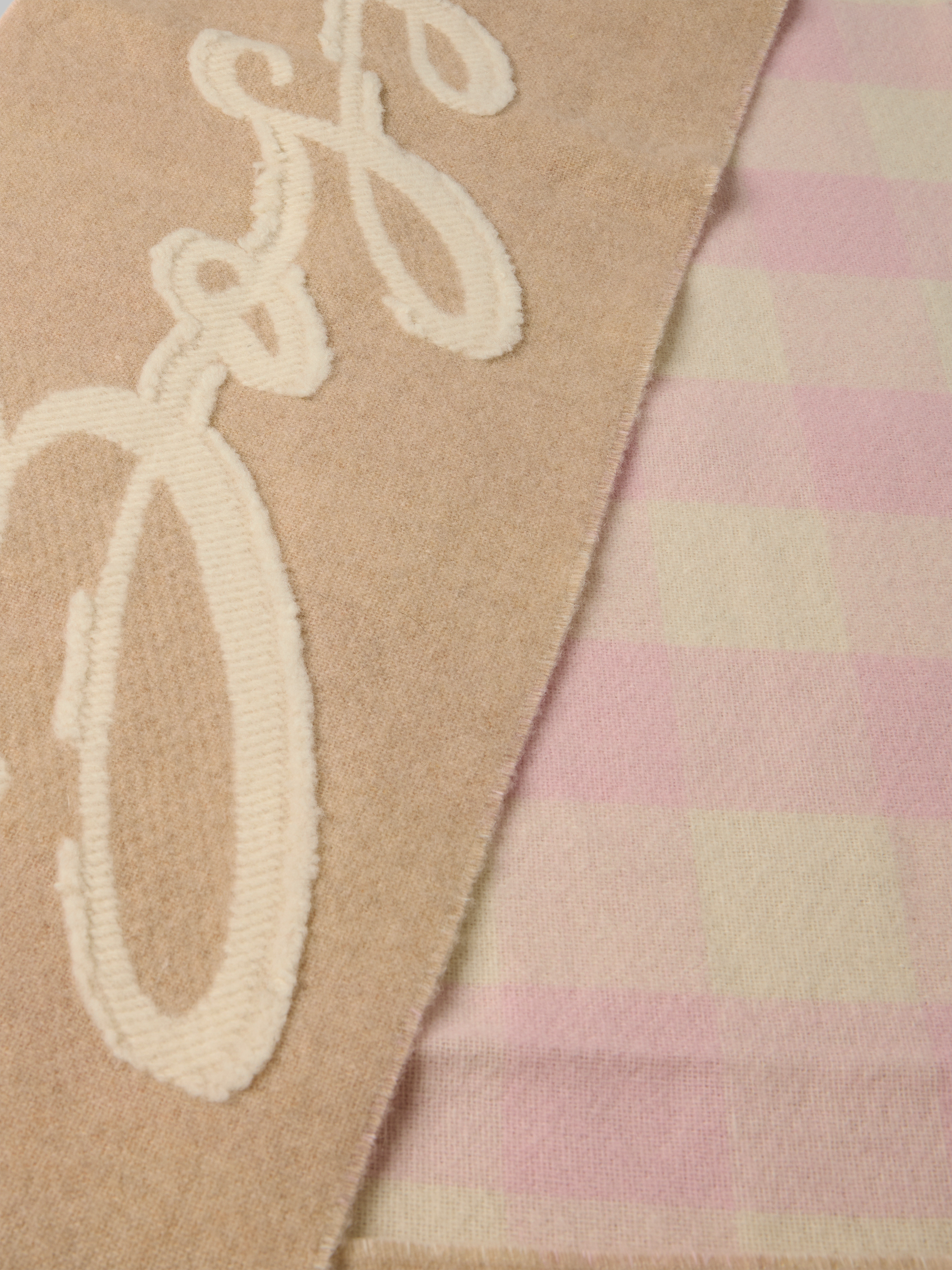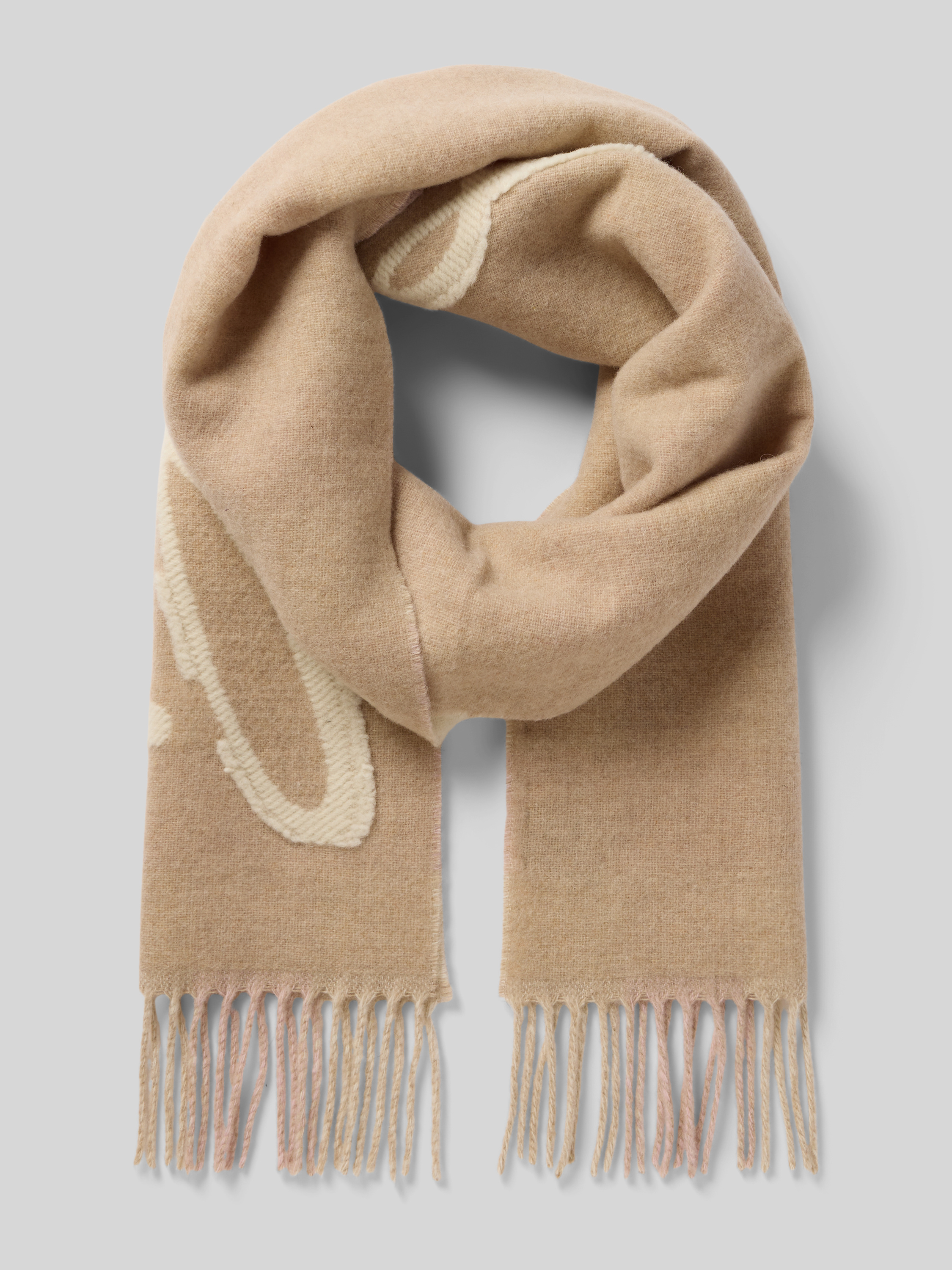 Sjaal van wolmix met franjes, model 'CECY' in lichtbruin