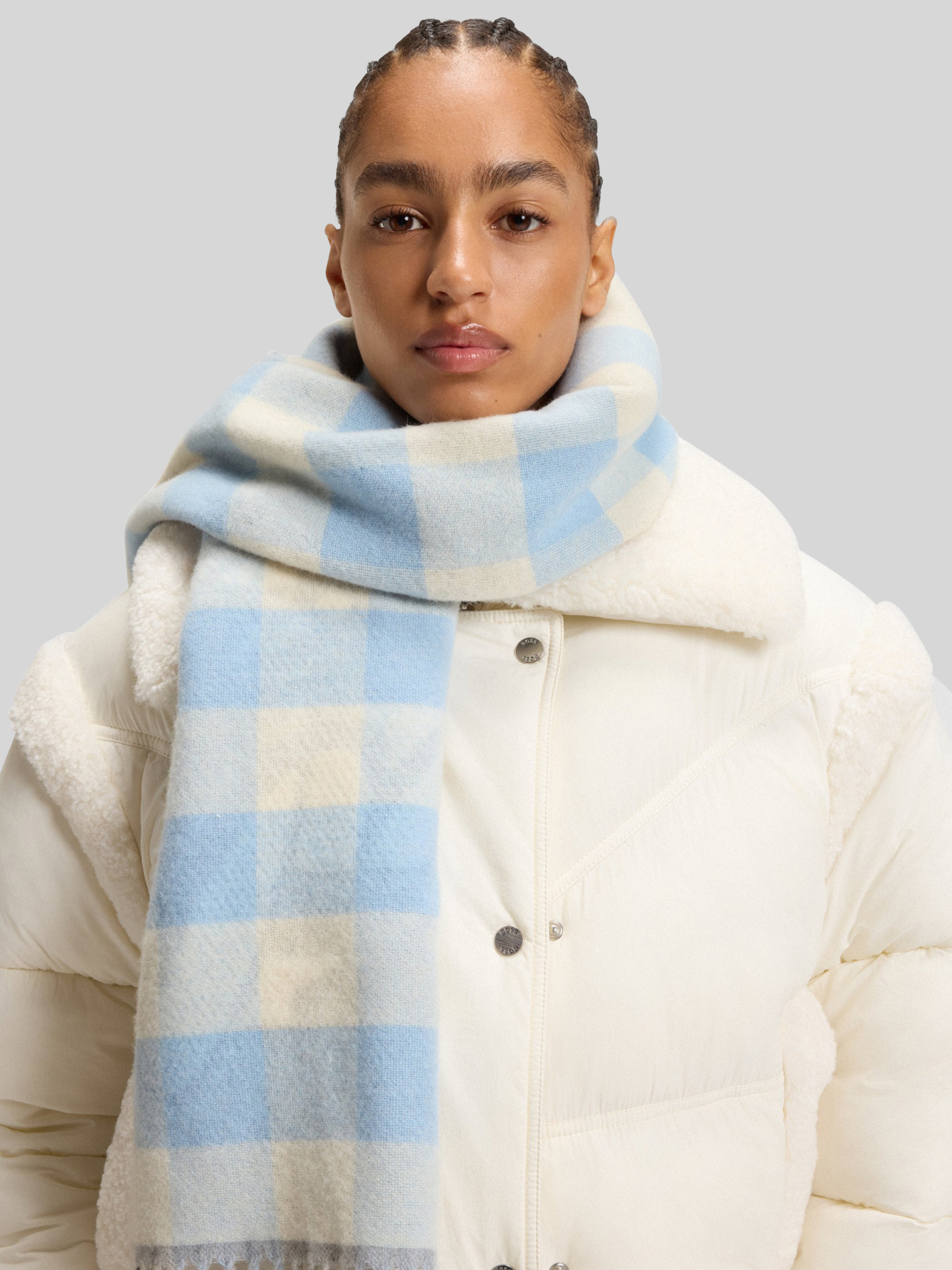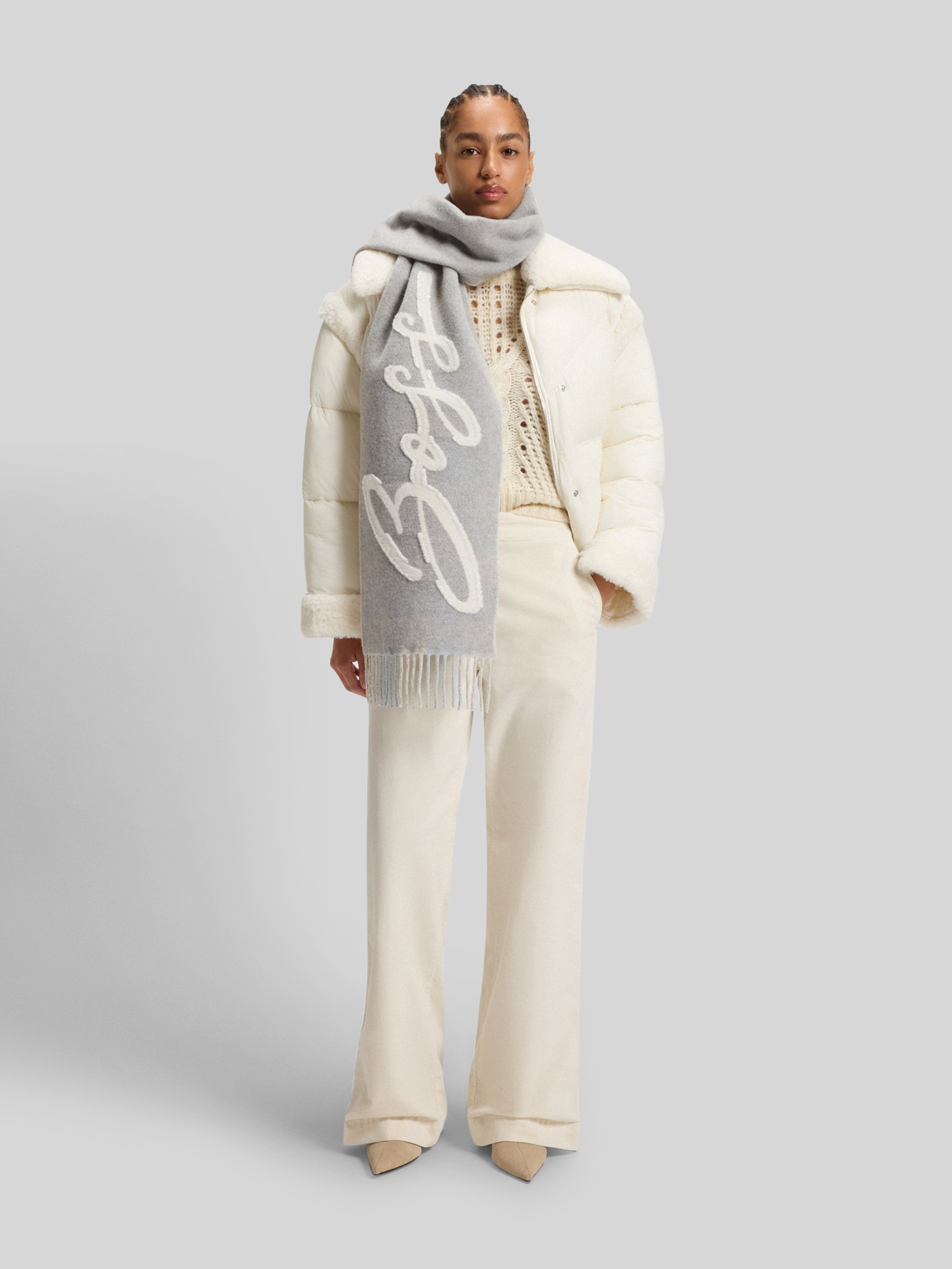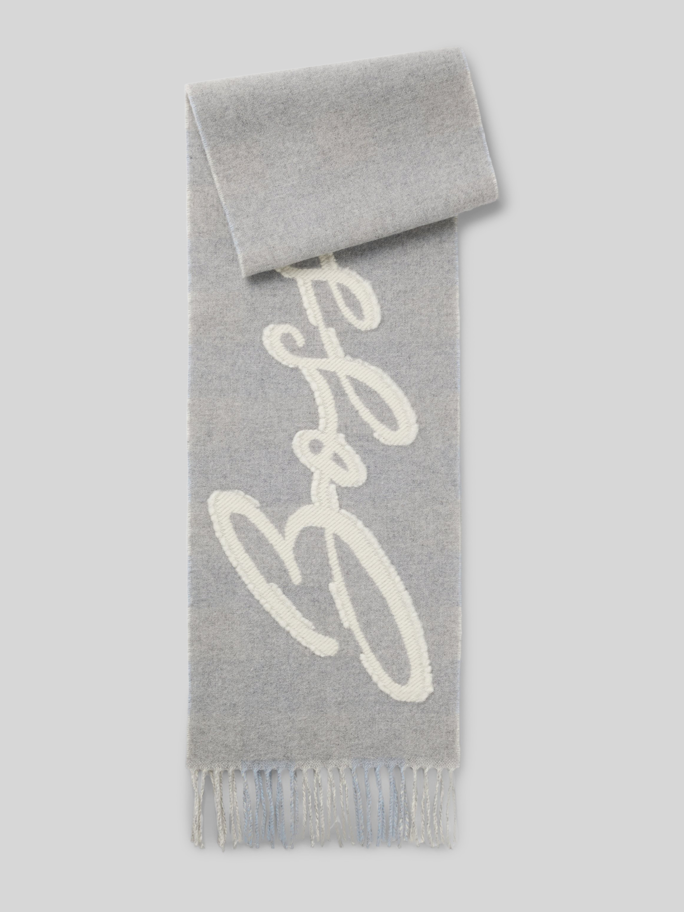 Sjaal van wolmix met franjes, model 'CECY' in lichtgrijs