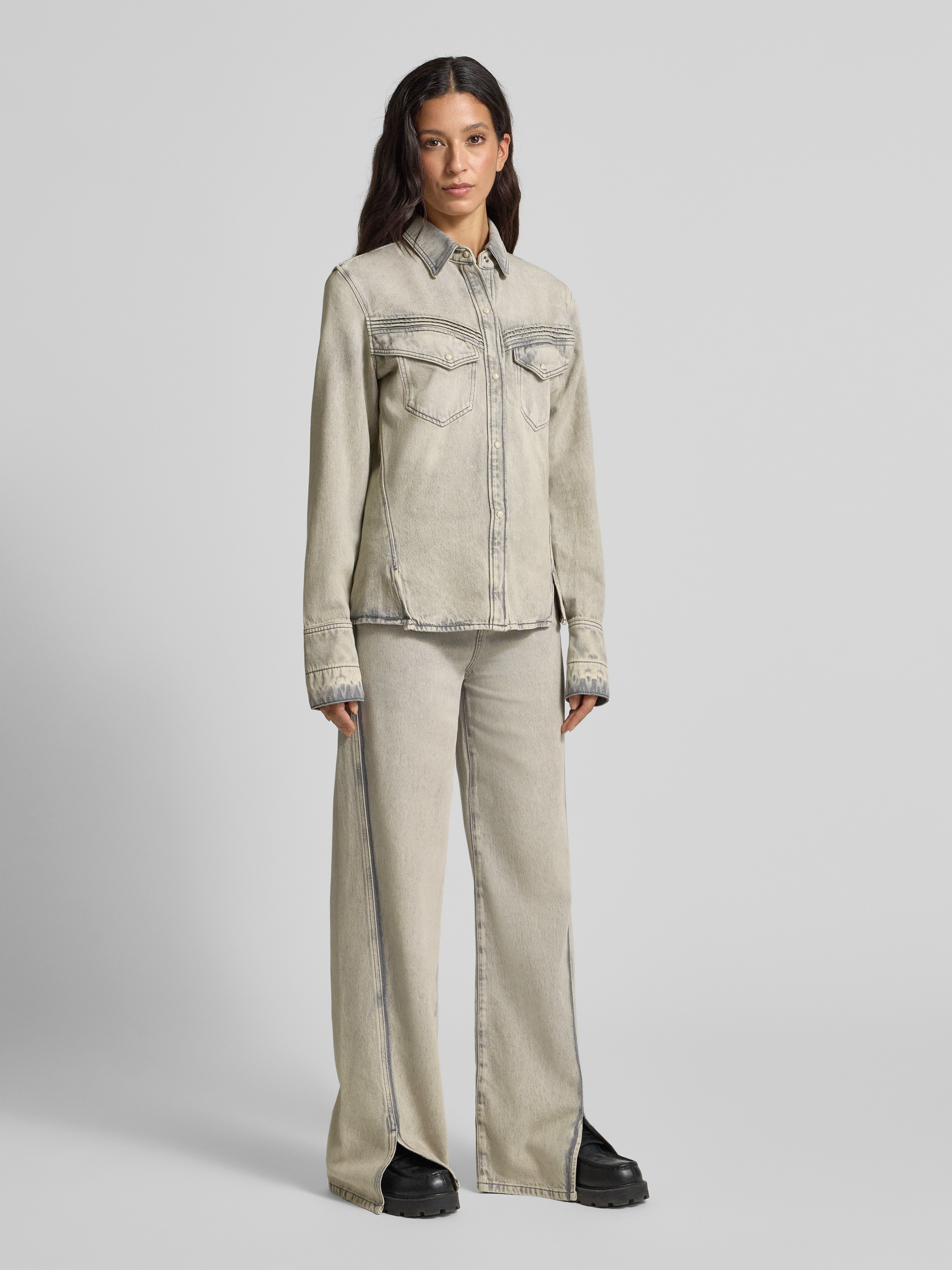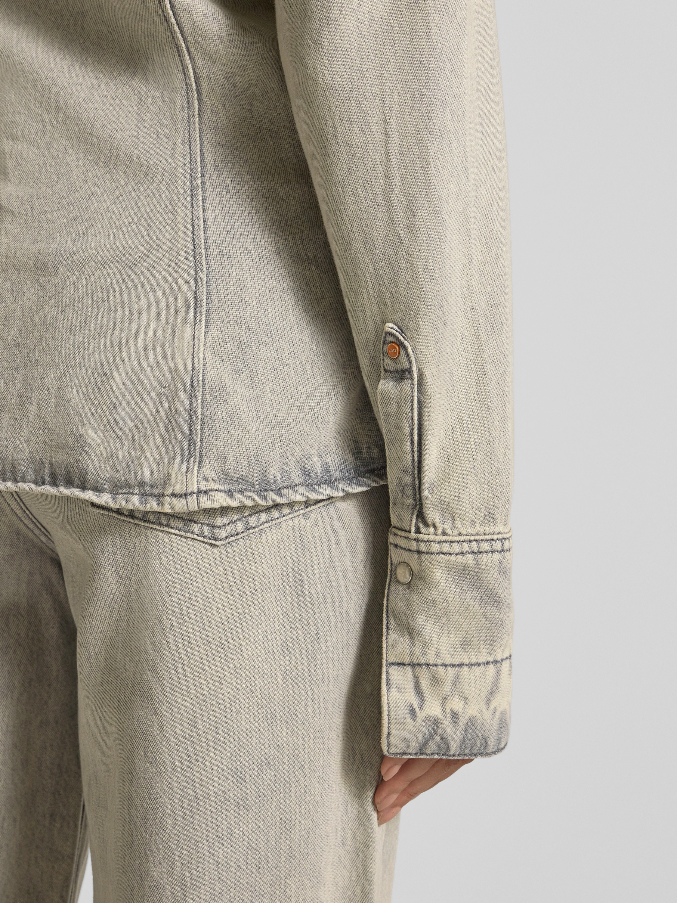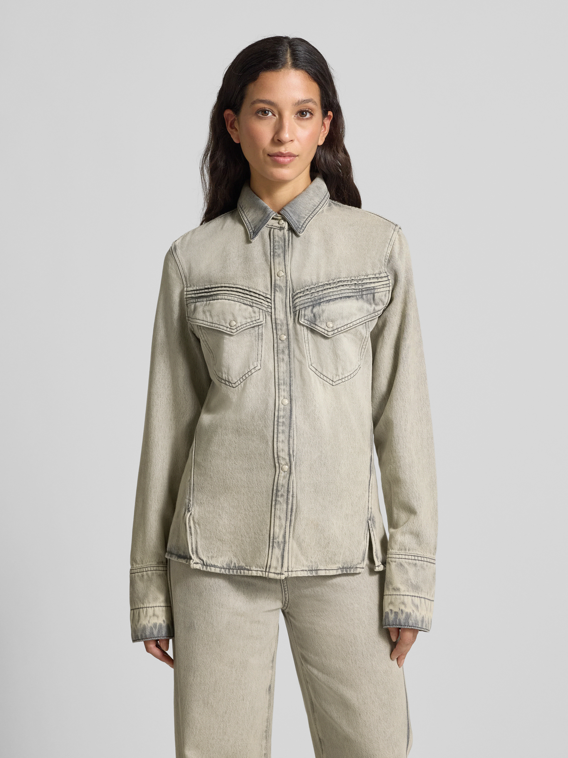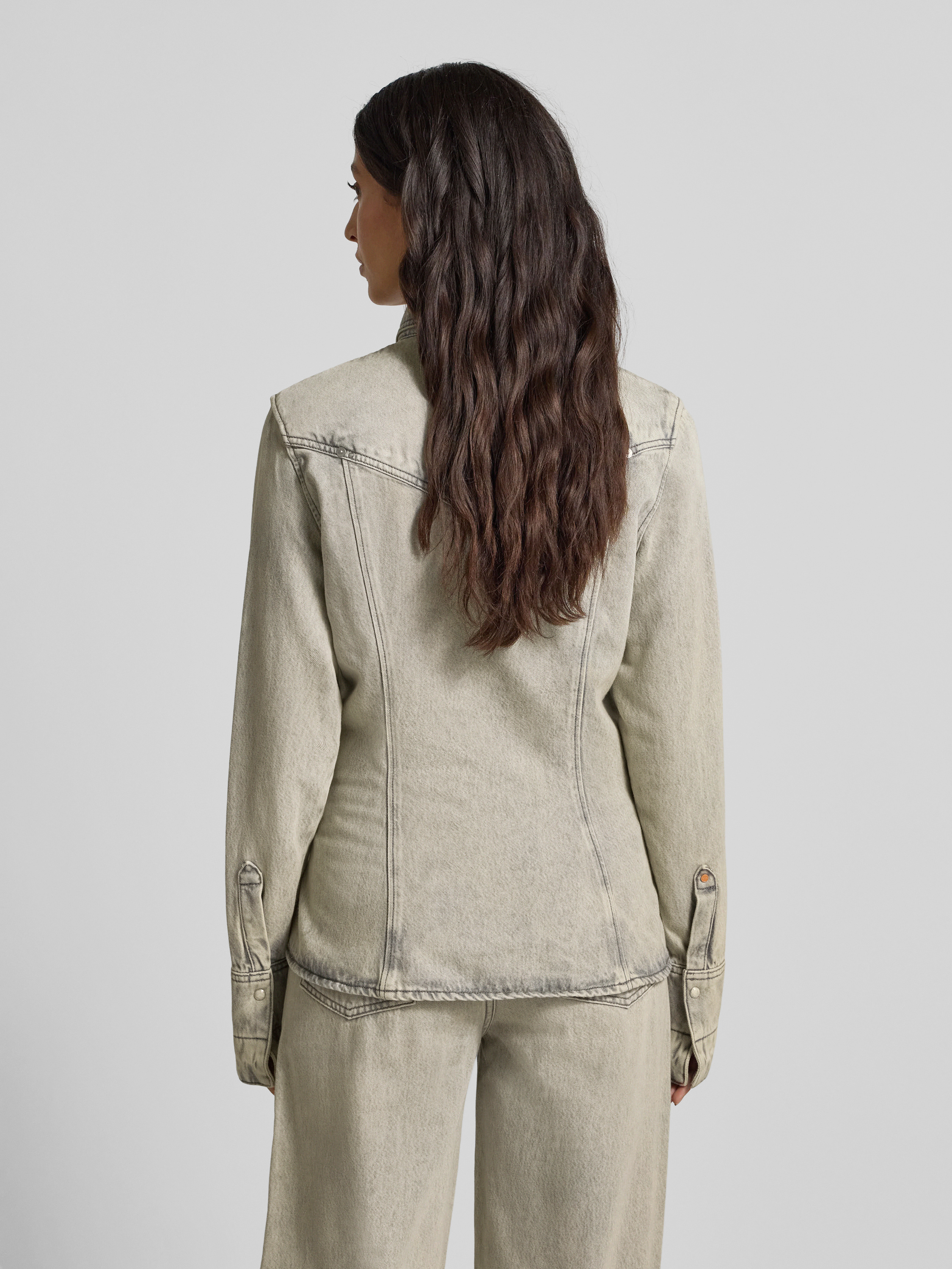 Slim fit jeansoverhemd van een mix van katoen en lyocell in lichtgrijs