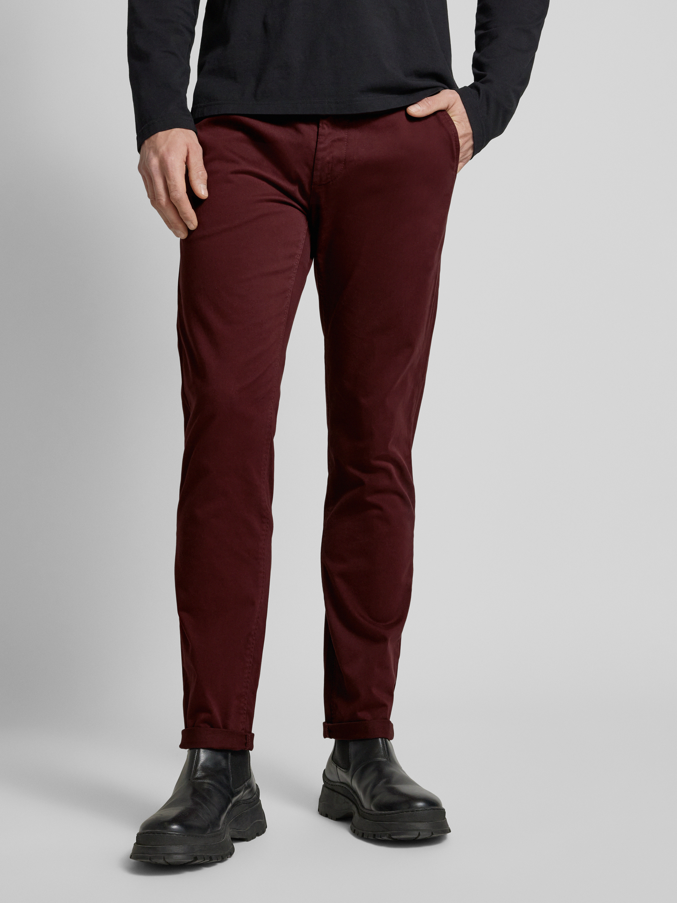 BOSS OrangeStoffen broek met steekzakken in bordeaux