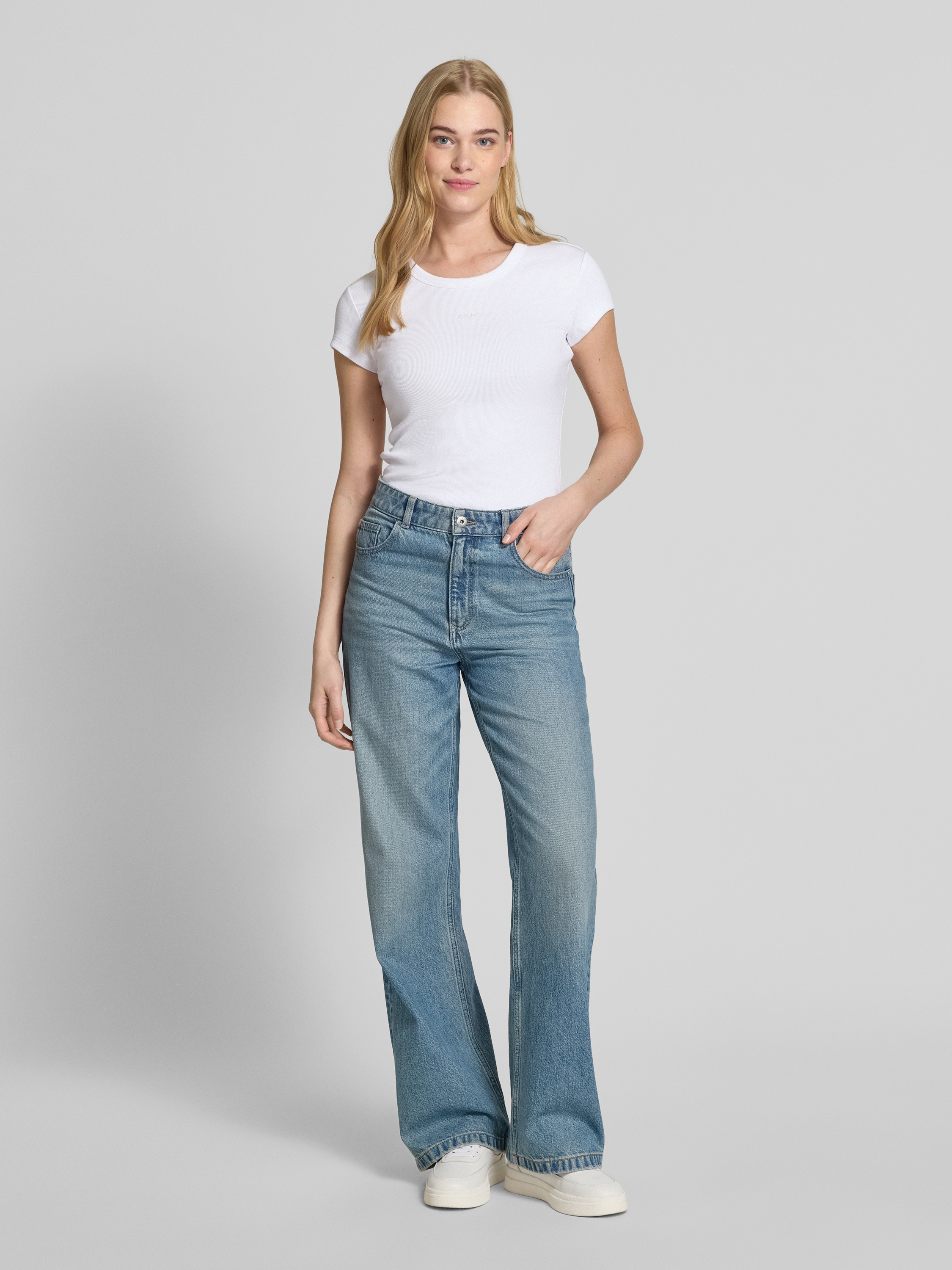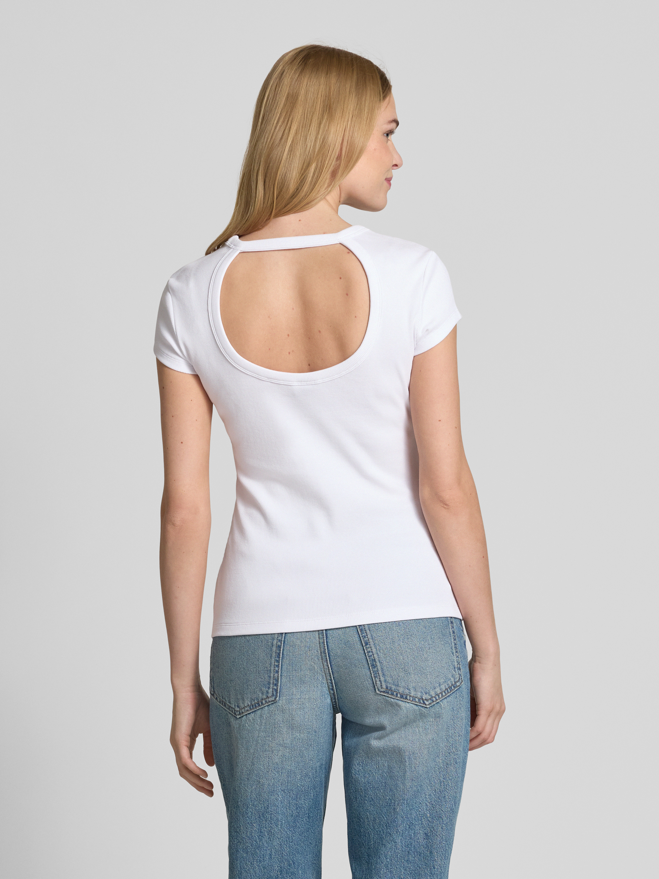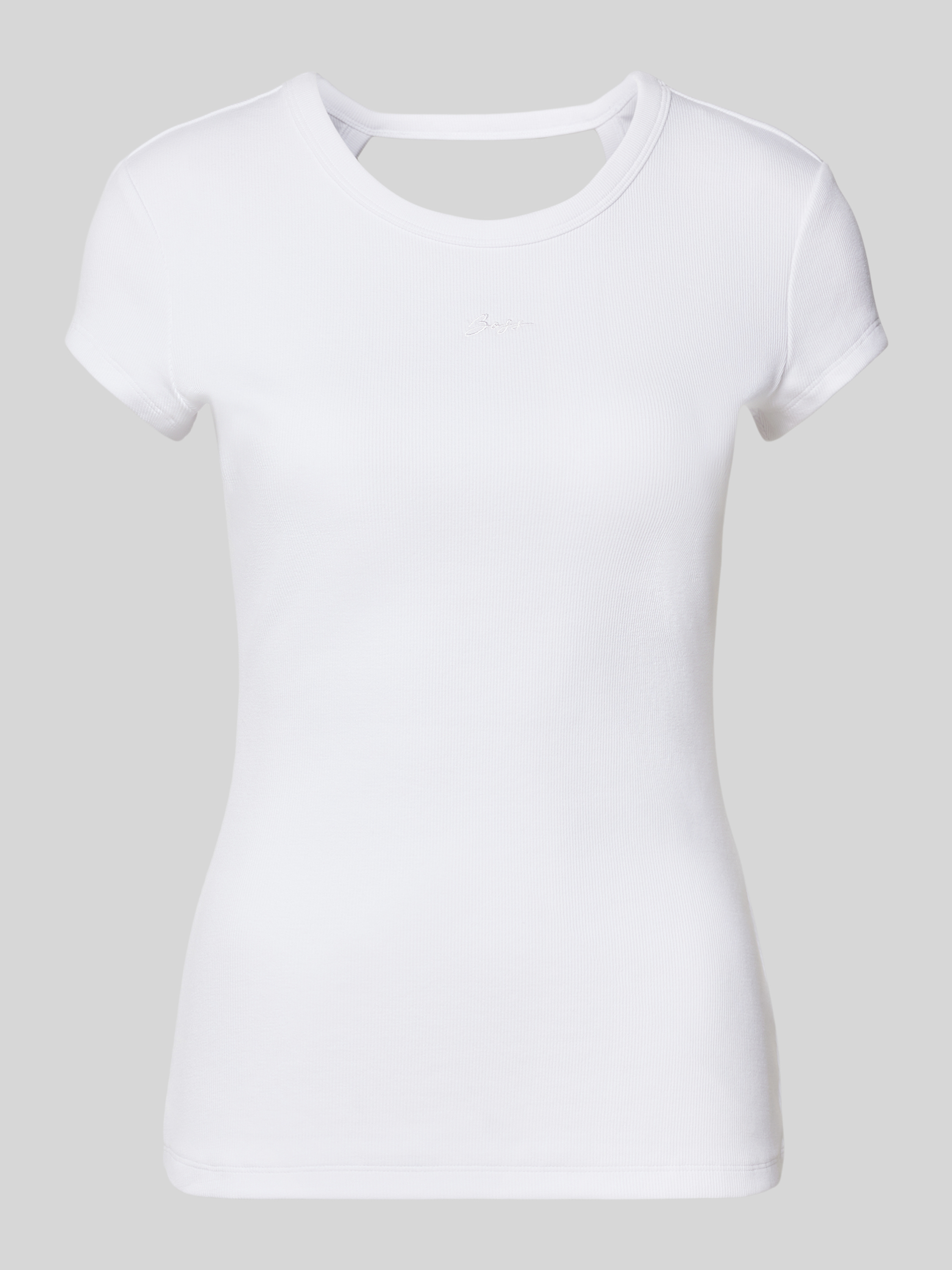 T-shirt in riblook met labelstitching in wit