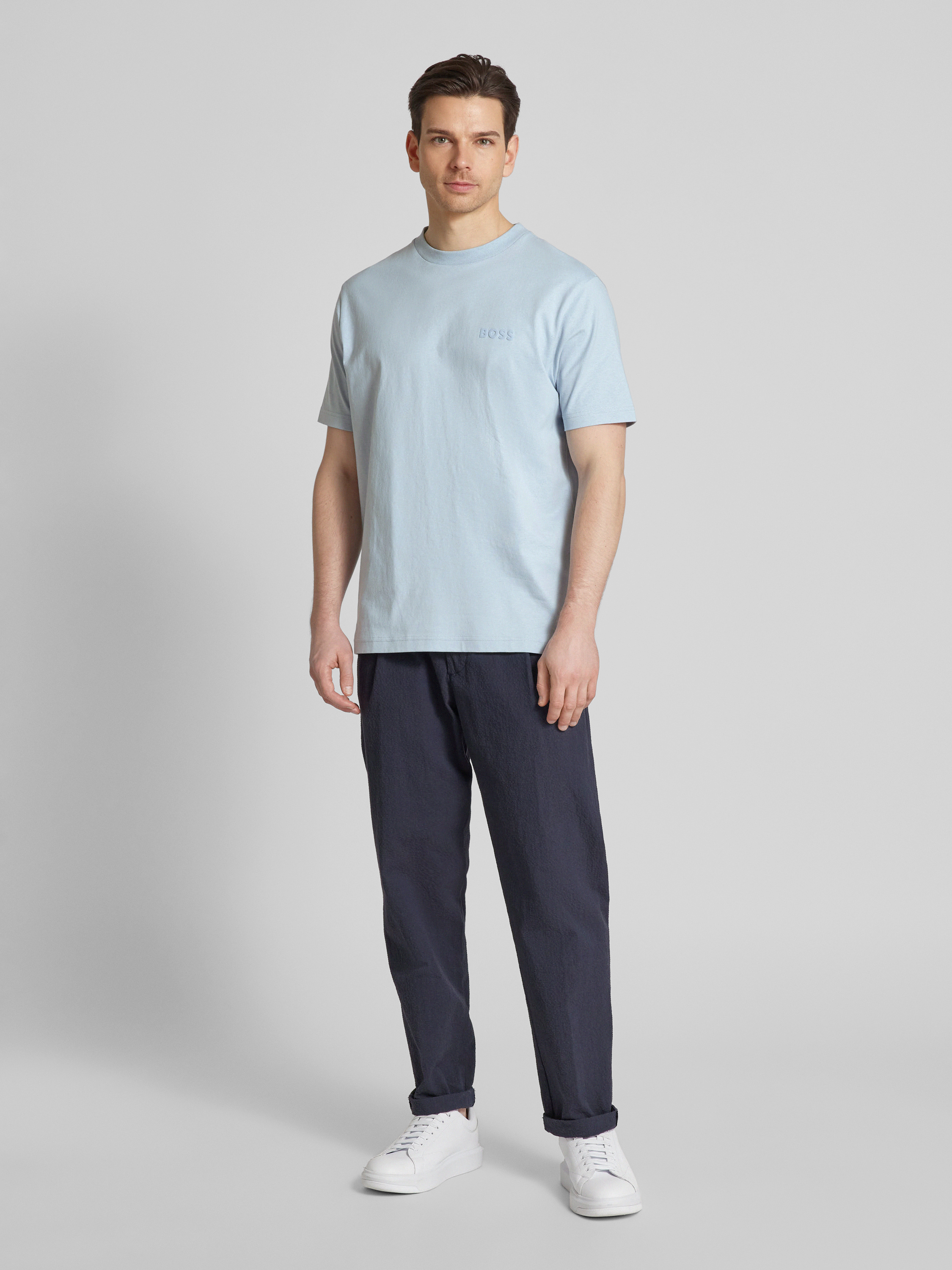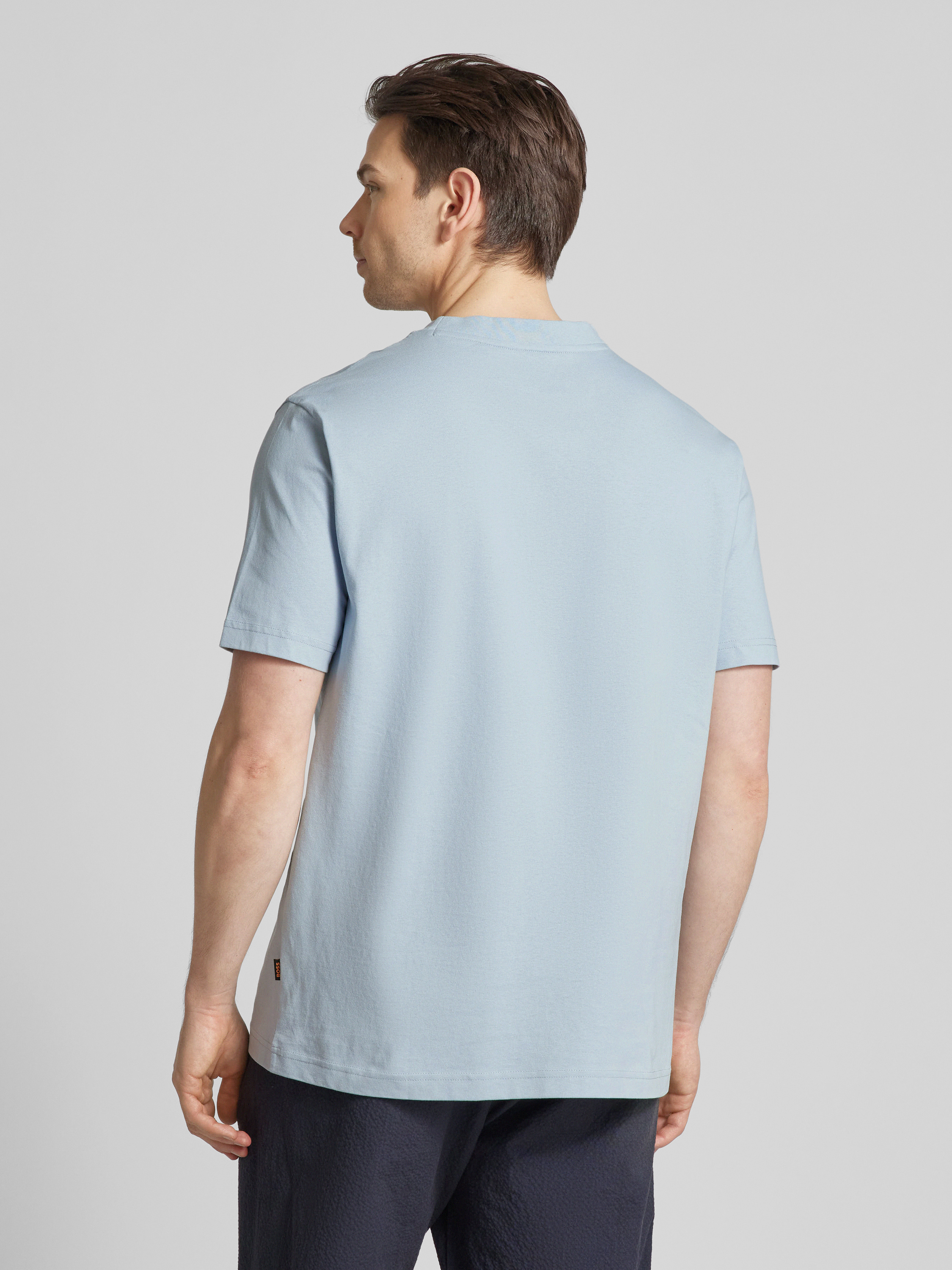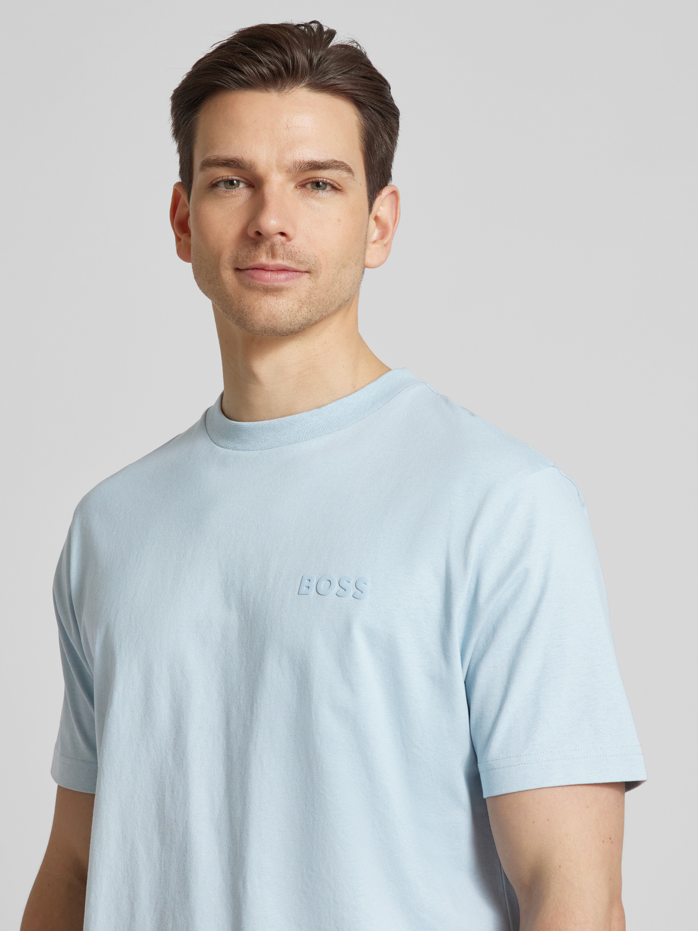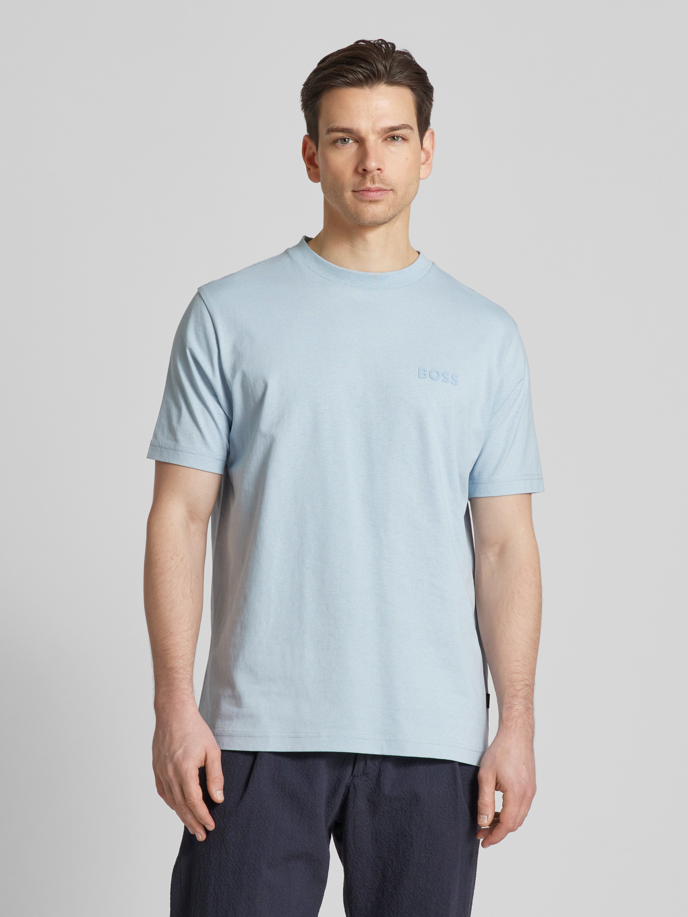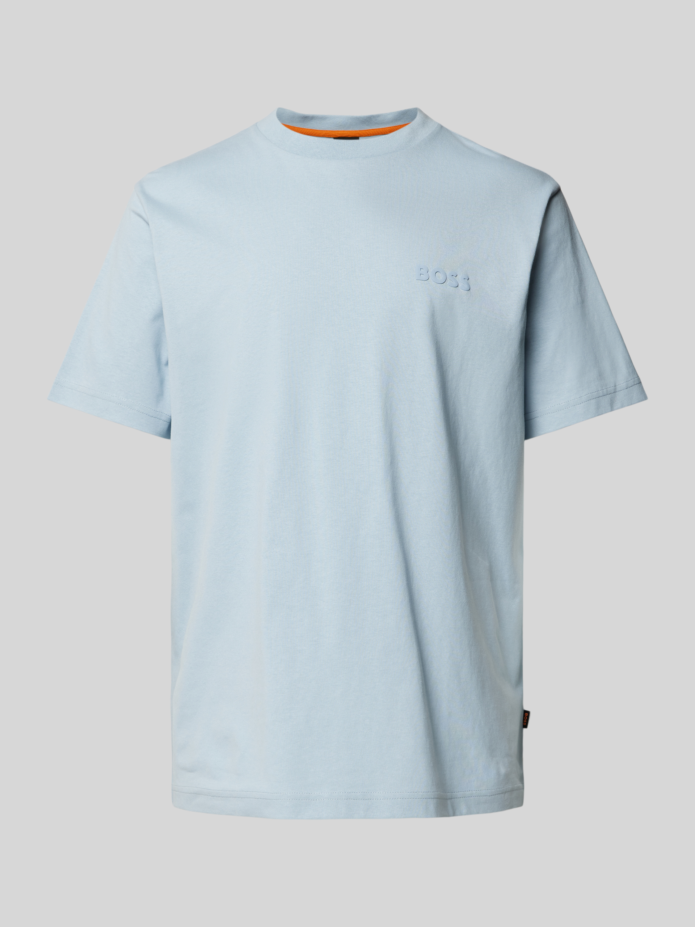T-shirt met labelprint, model 'Telogoboss' in lichtblauw
