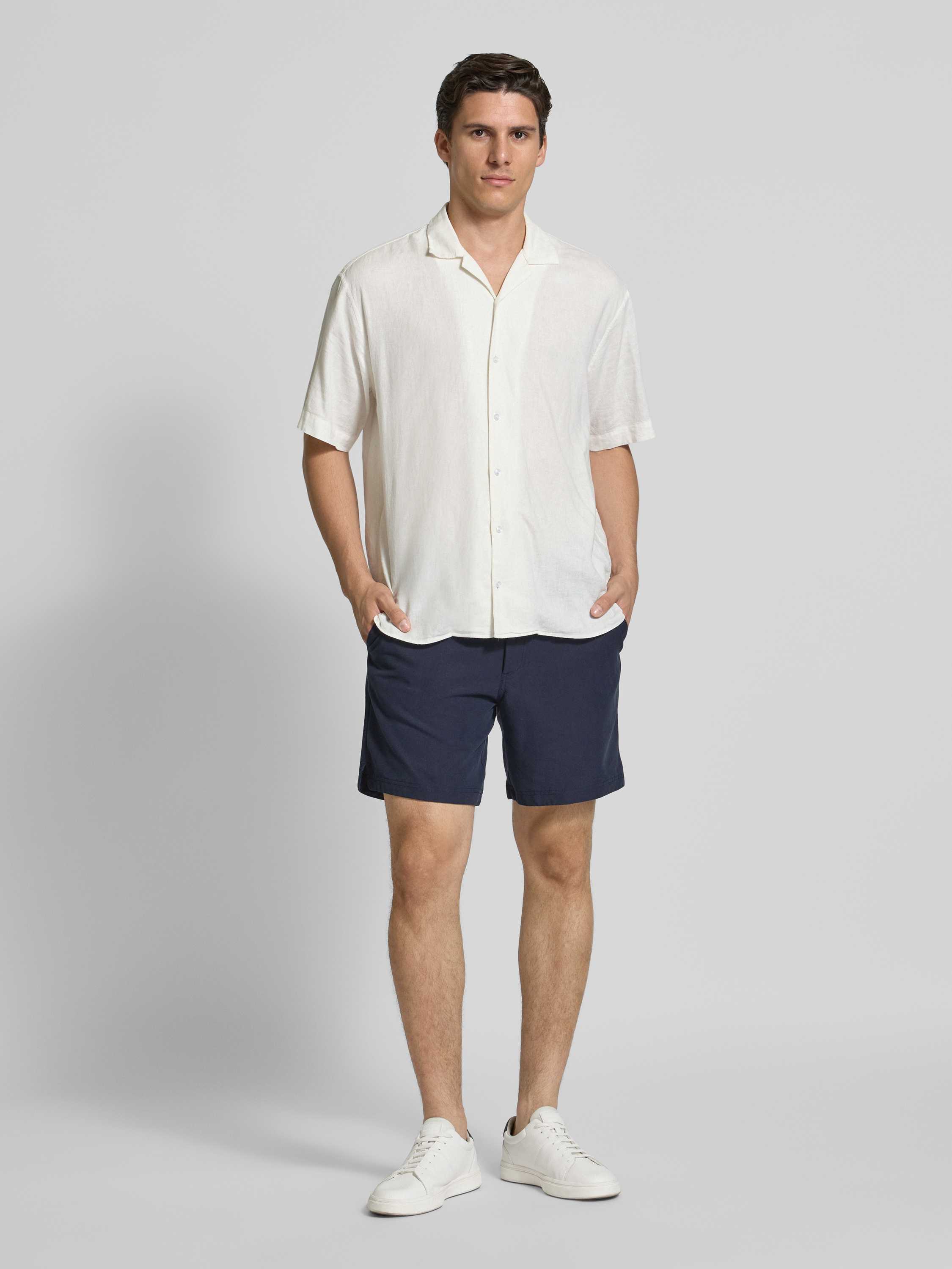 BOSS OrangeTapered bermuda van lyocellmix, model 'SANDREW-5' in marineblauw