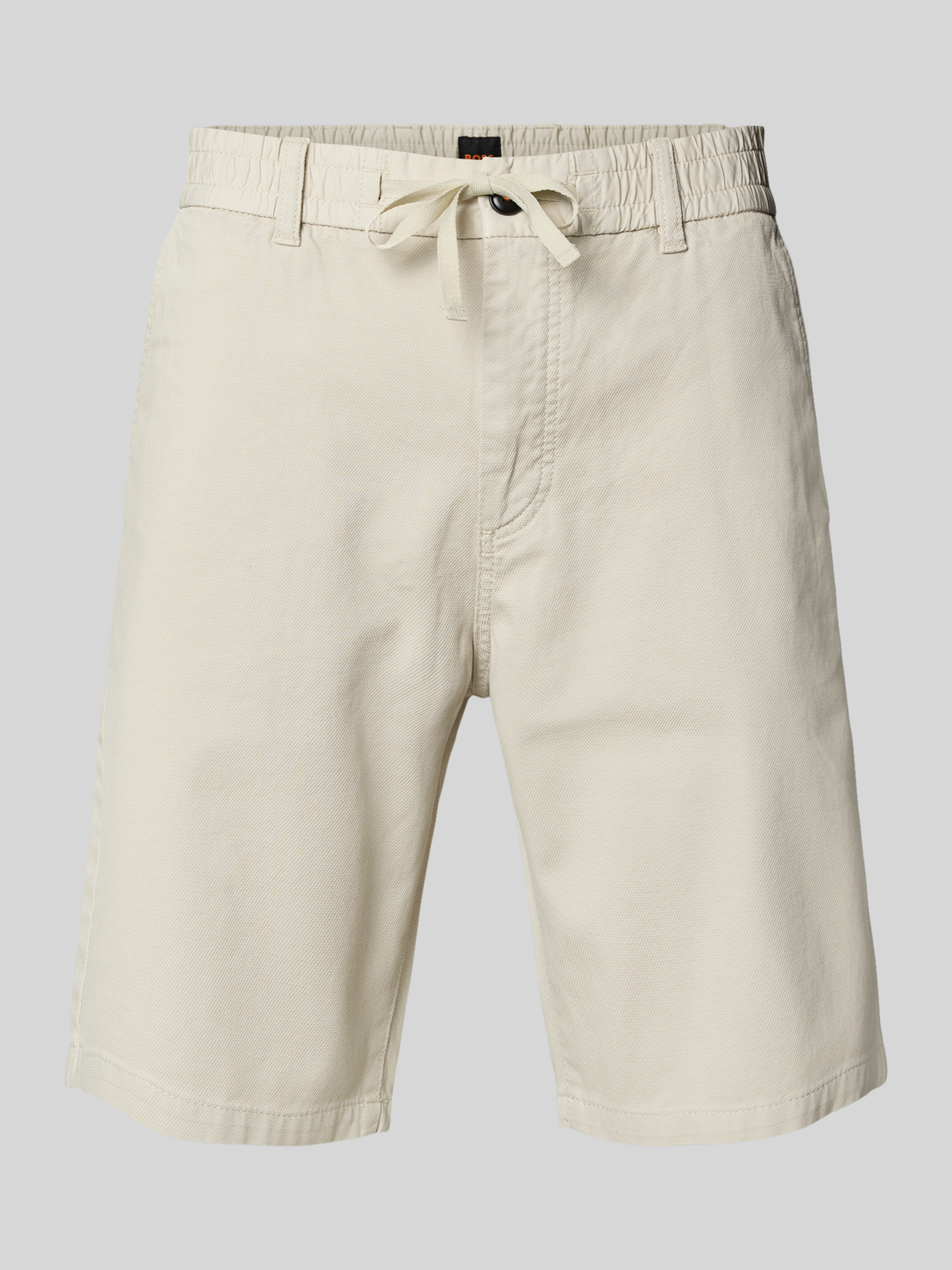 BOSS OrangeTapered fit bermuda met elastische band, model 'Chino' in zand