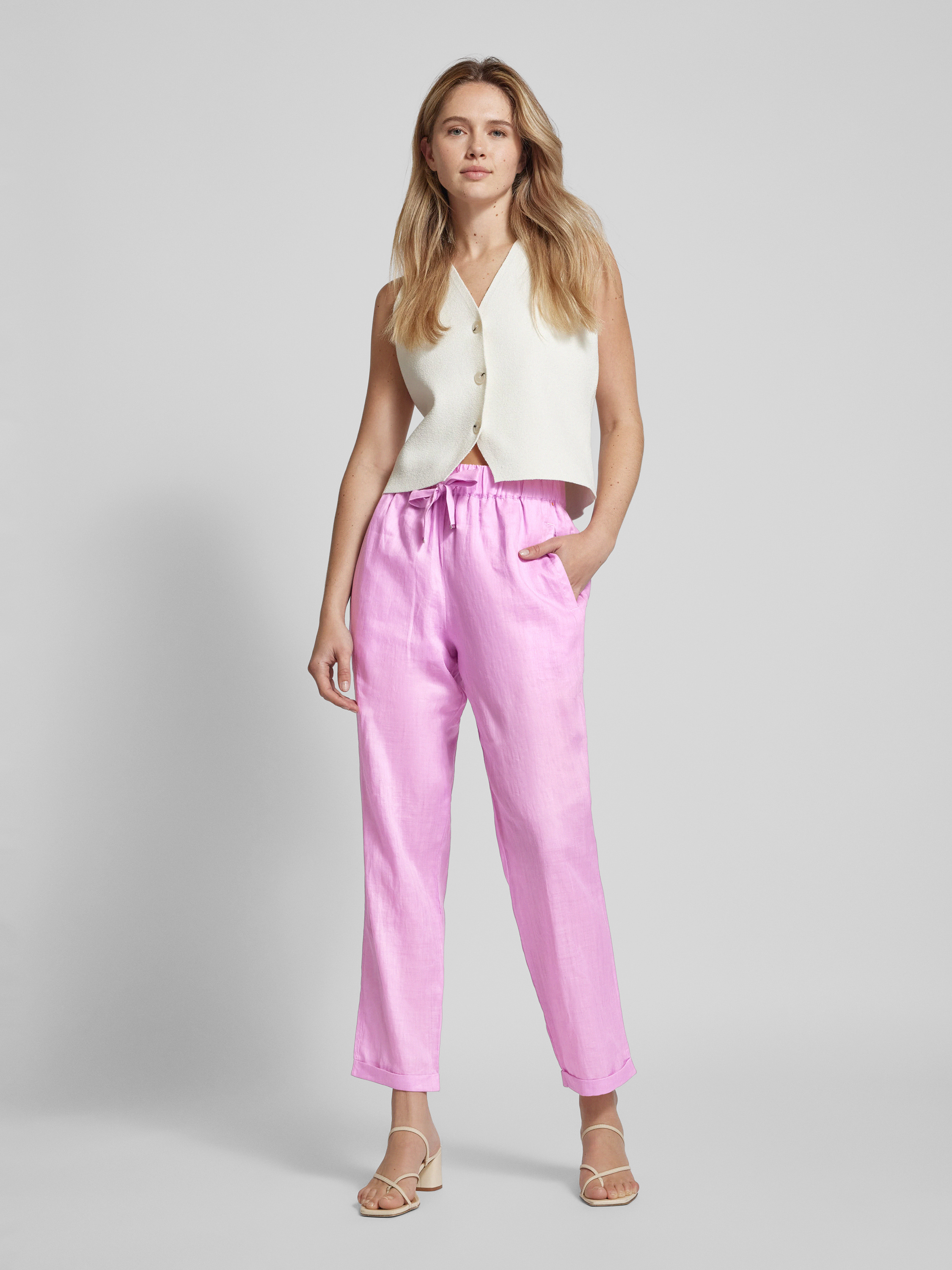 BOSS OrangeTapered fit stoffen broek met tunnelkoord, model 'Timpa' in roze