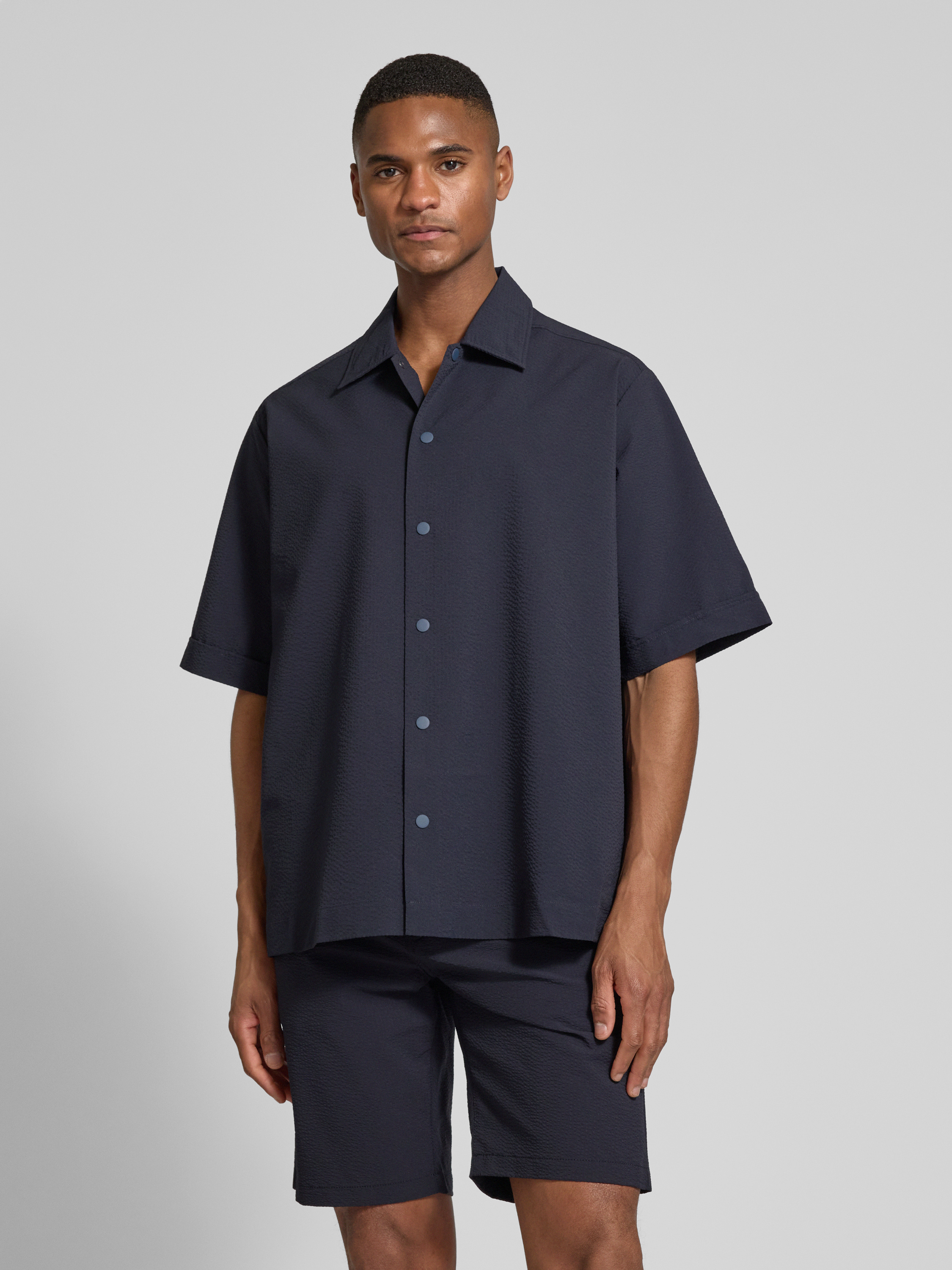 Vrijetijdsoverhemd met drukknoopsluiting in donkerblauw