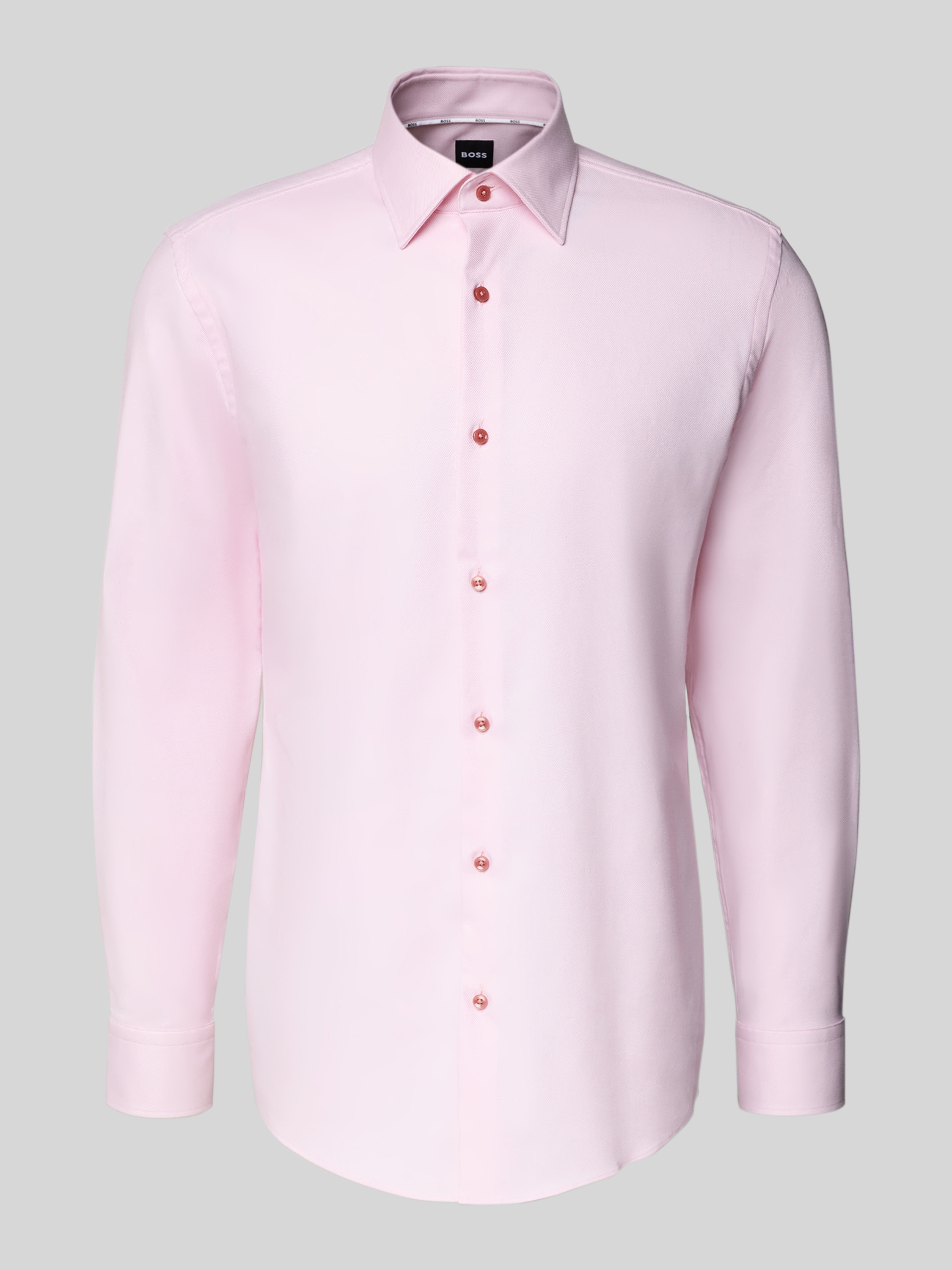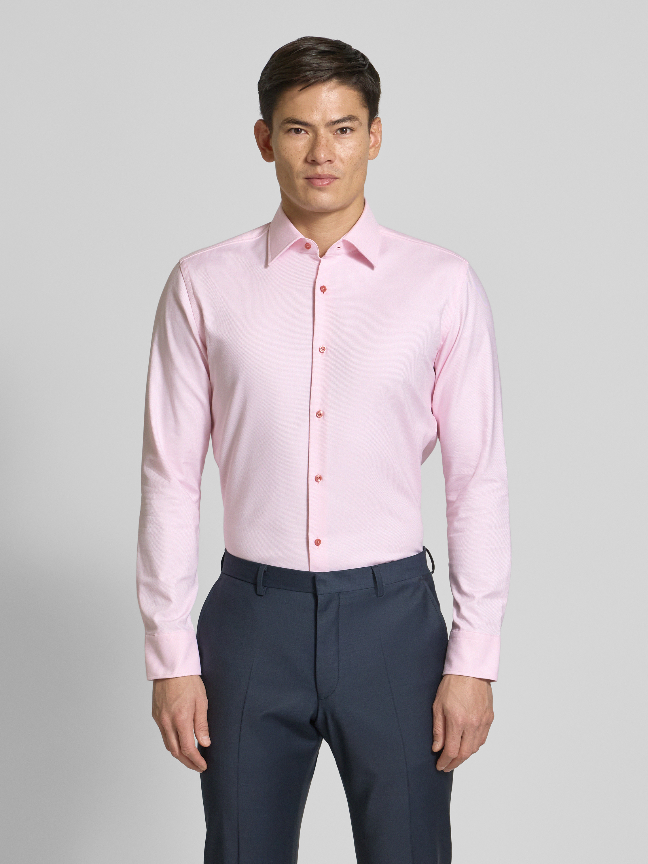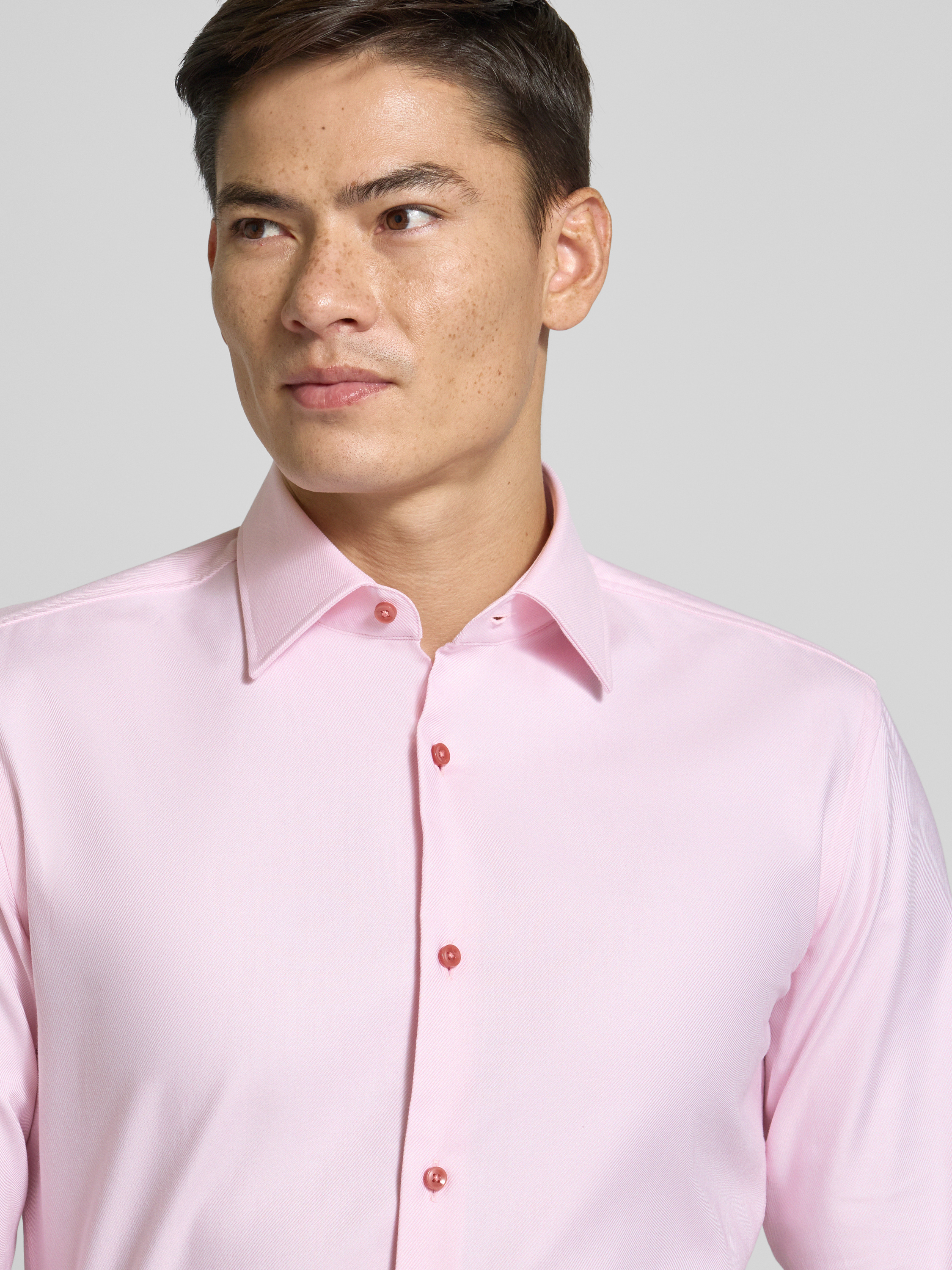 Slim fit zakelijk overhemd van een mix van katoen en elastaan in lichtroze