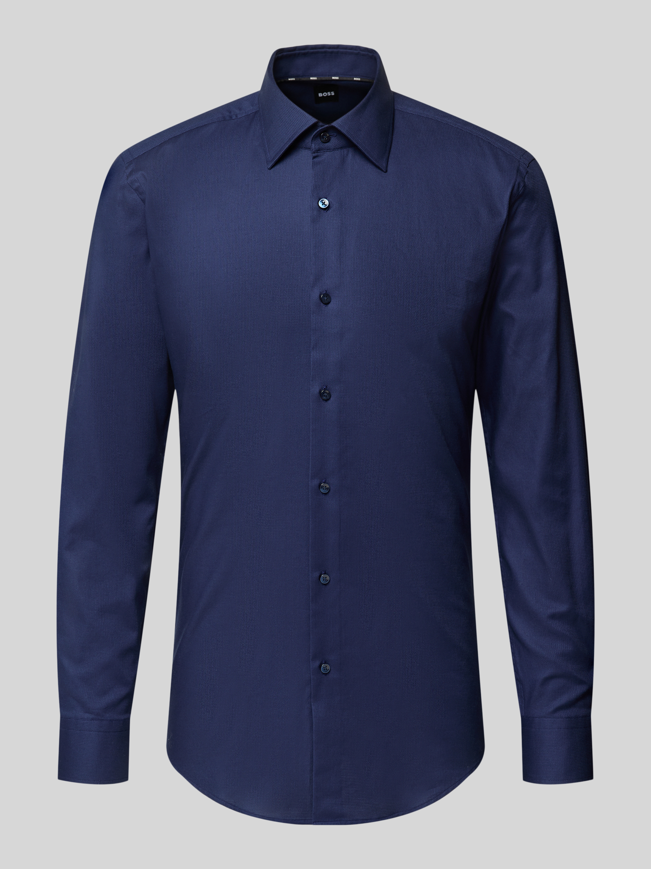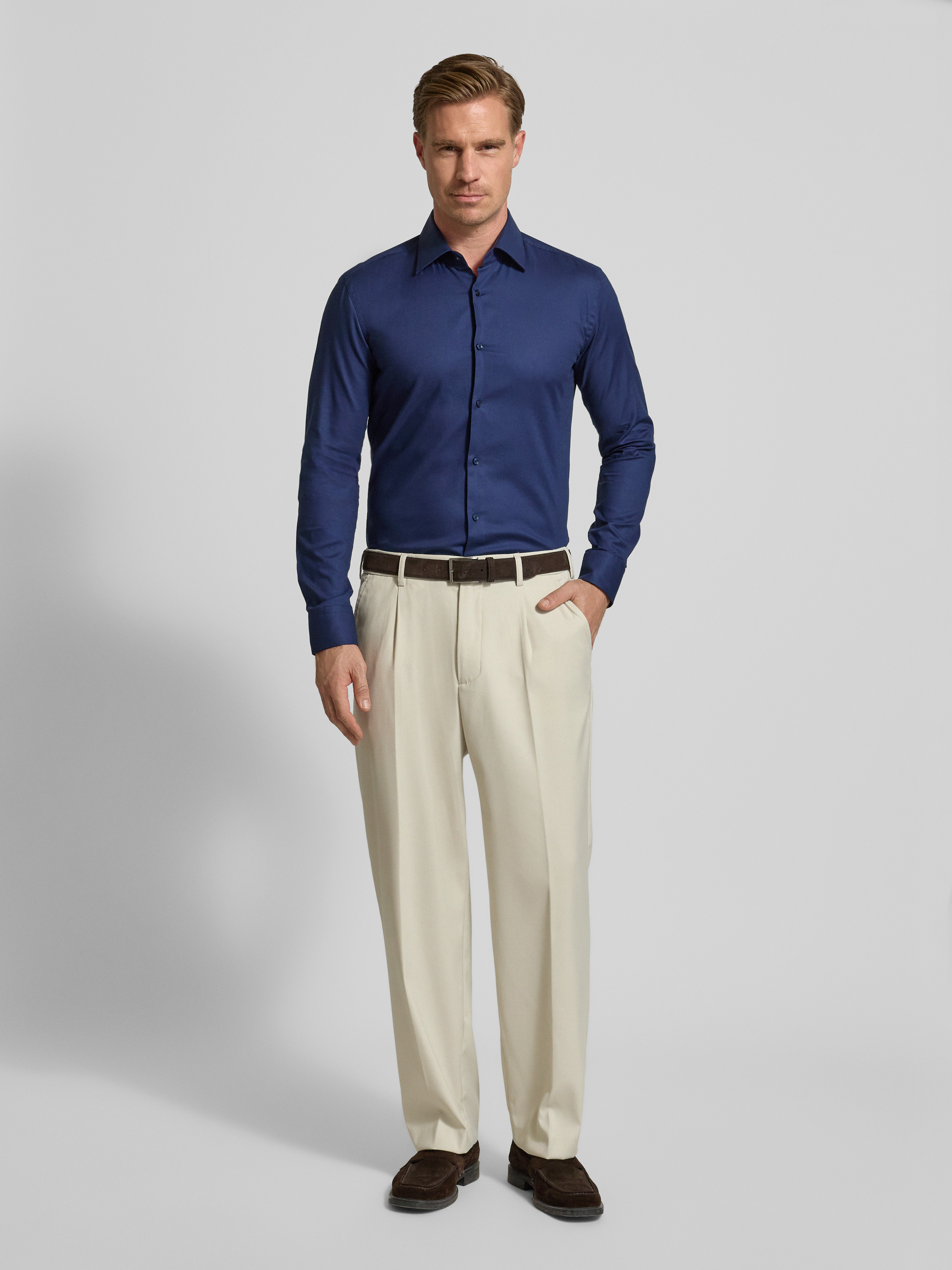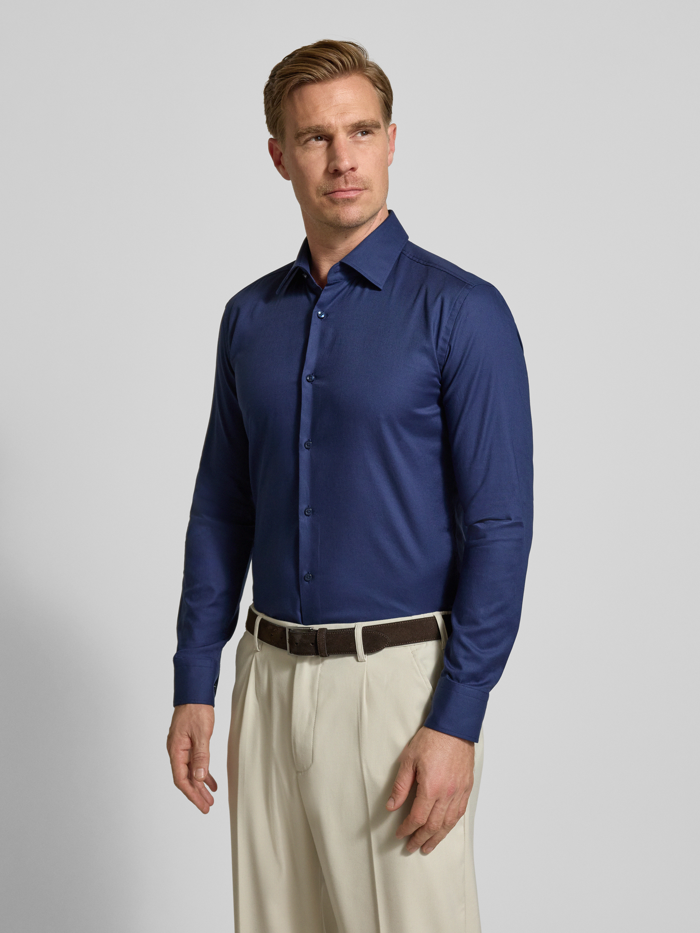 Slim fit zakelijk overhemd van katoenmix, model 'HANK' in marineblauw