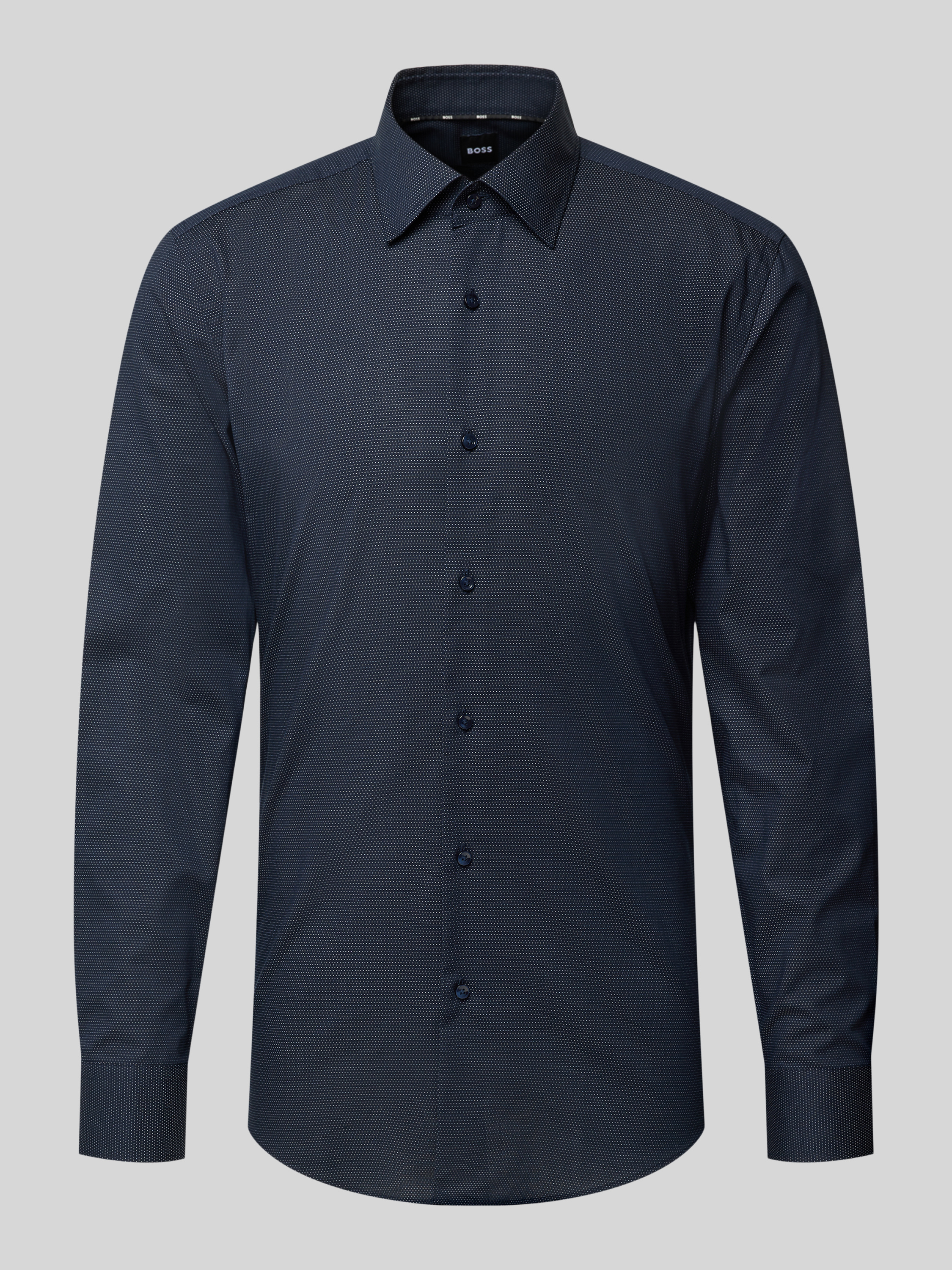 Slim fit zakelijk overhemd van katoenmix, model 'HANK' in marineblauw