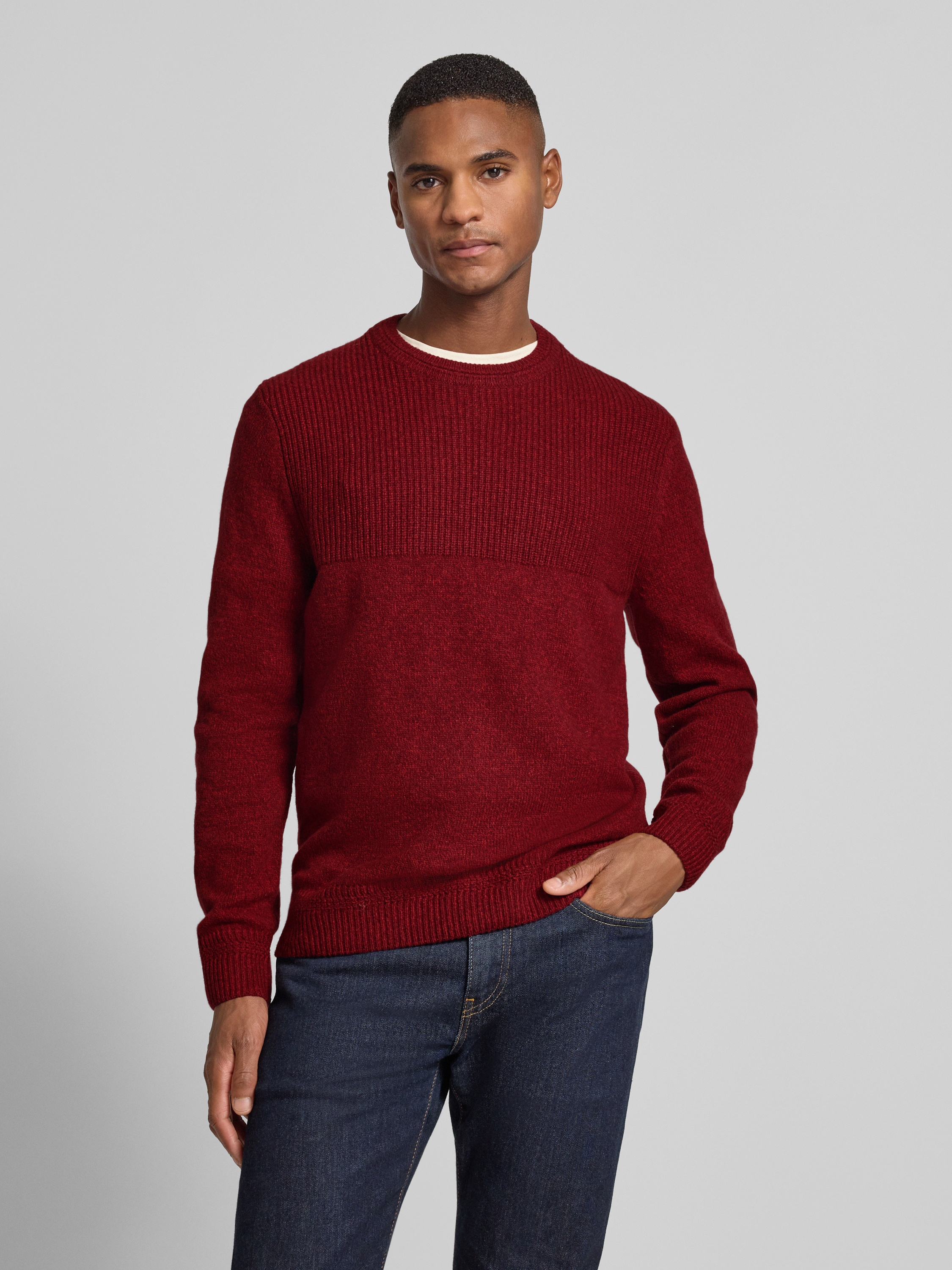 Gebreide pullover met ribboorden, model 'Rick' in bordeaux