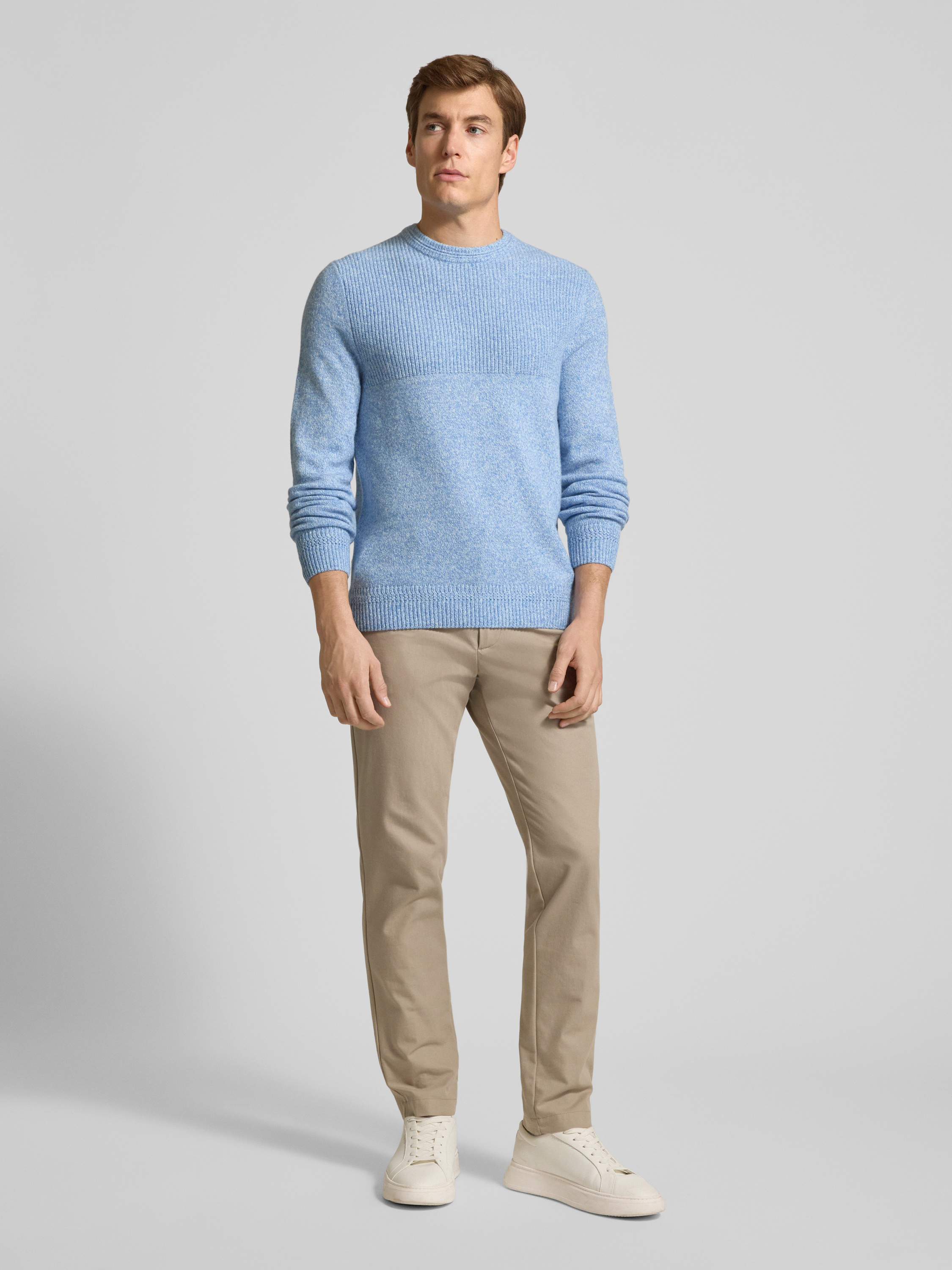 Gebreide pullover met ribboorden, model 'Rick' in lichtblauw
