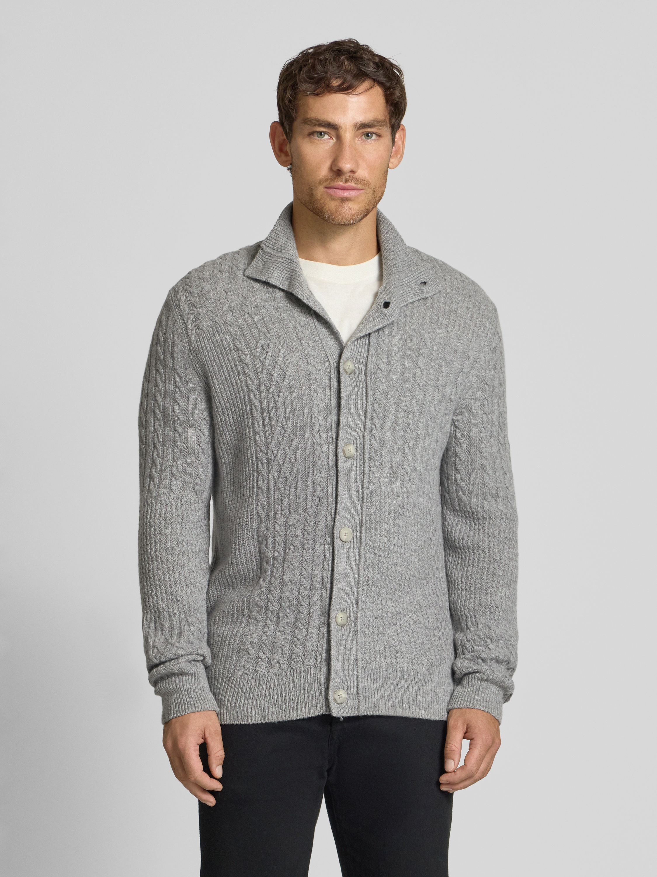 Regular fit gebreid jack met viscose, model 'Jeff' in donkergrijs