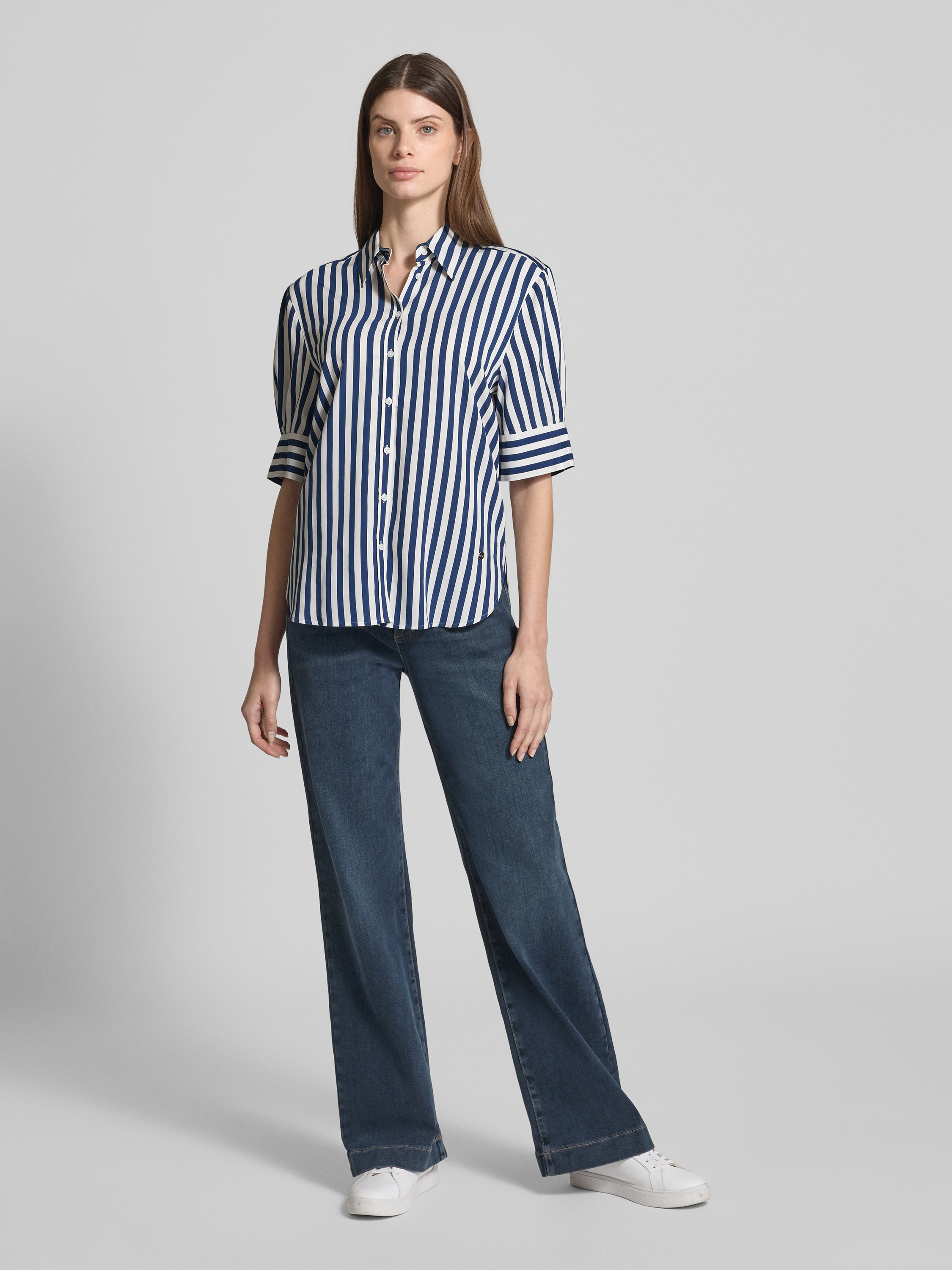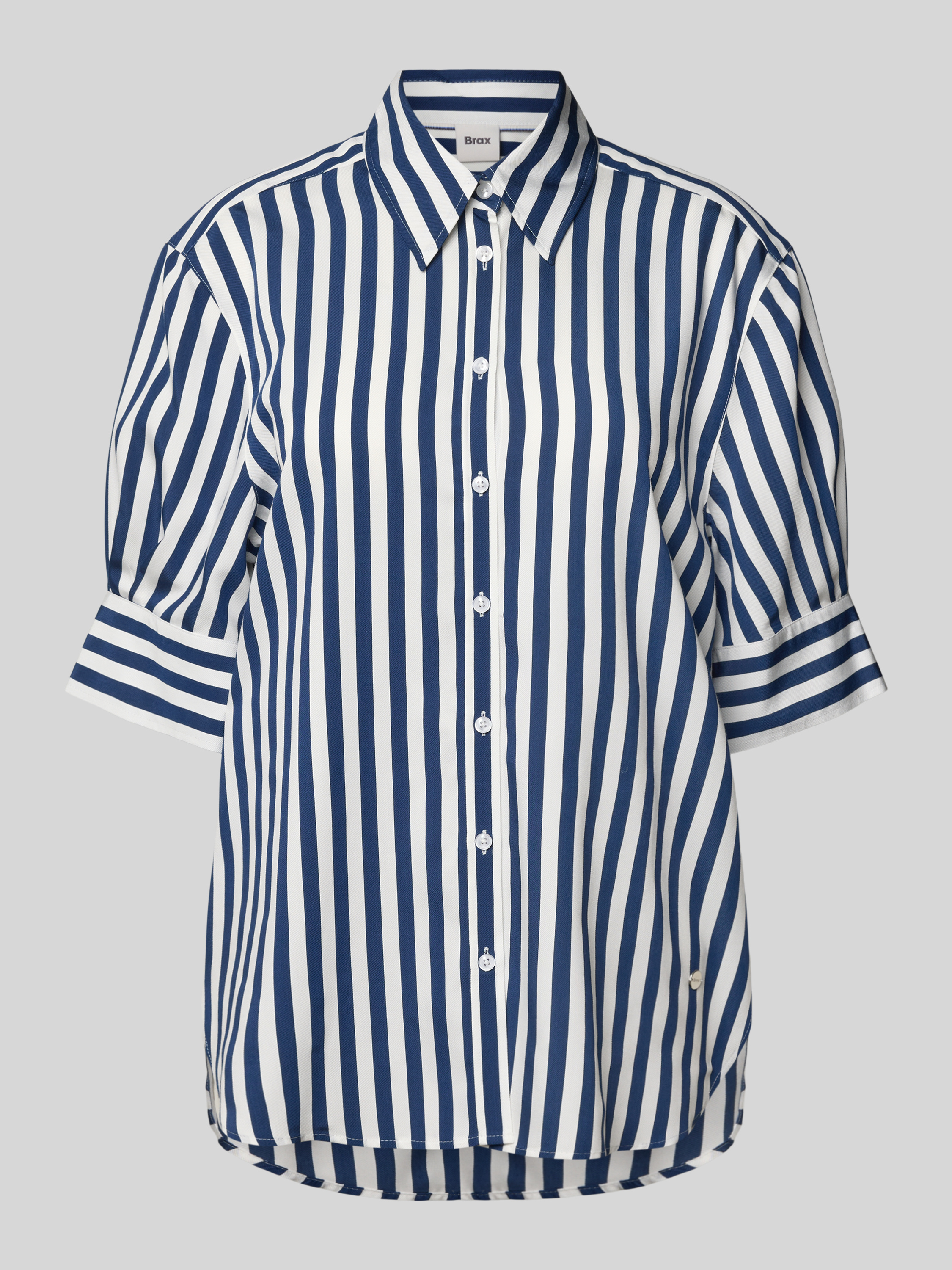 BraxRelaxed fit overhemdblouse van viscosemix met 1/2-mouwen, model 'Vic' in marineblauw