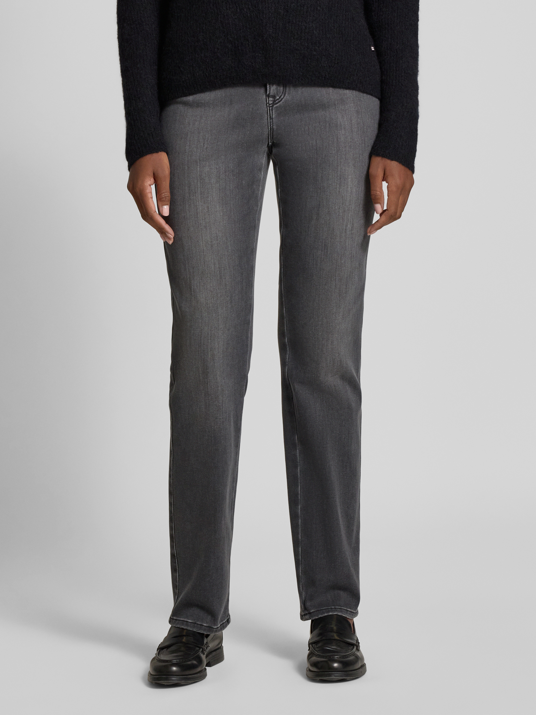 Straight fit jeans met steekzakken, model 'CAROLA THERMO' in donkergrijs