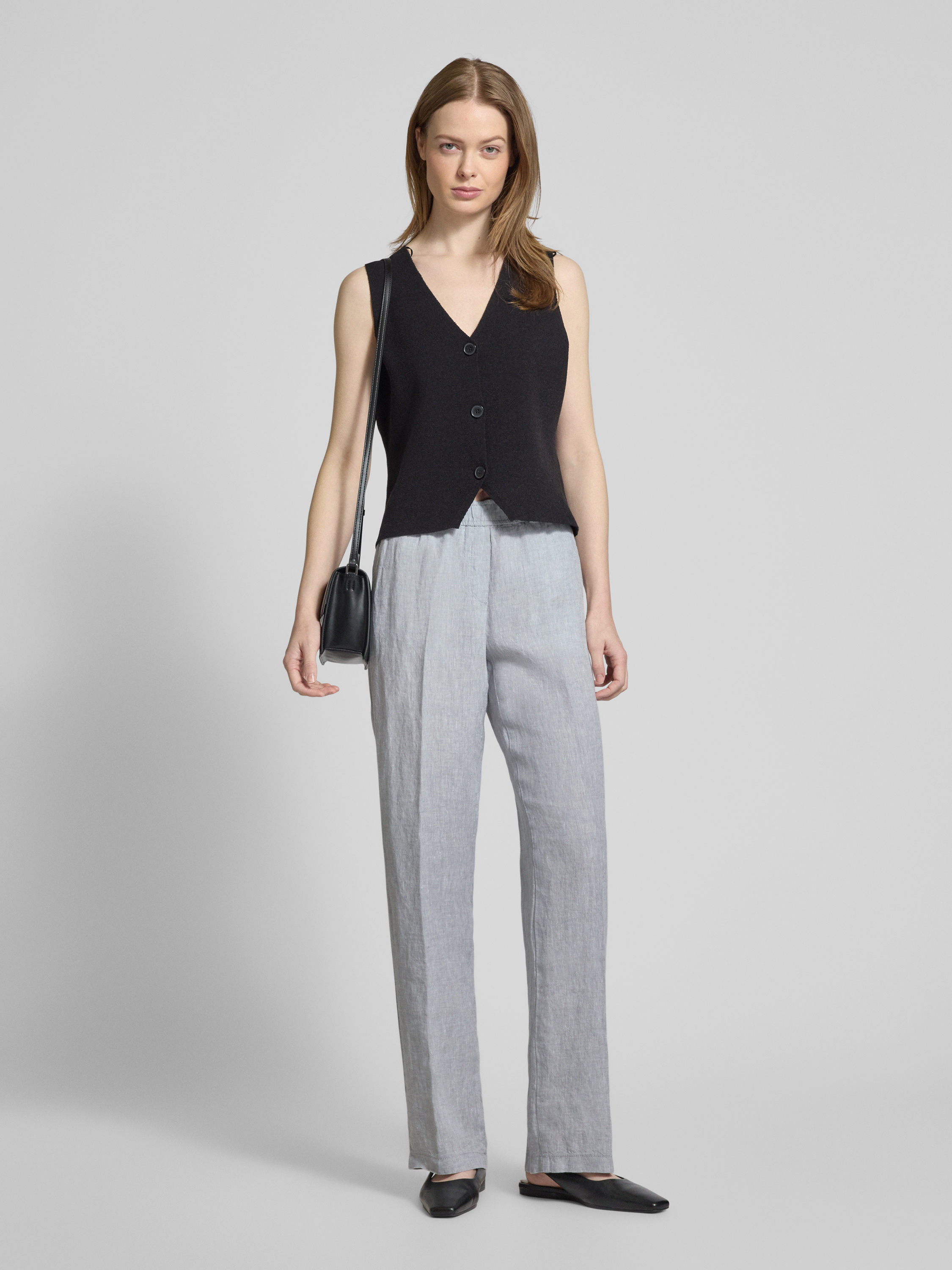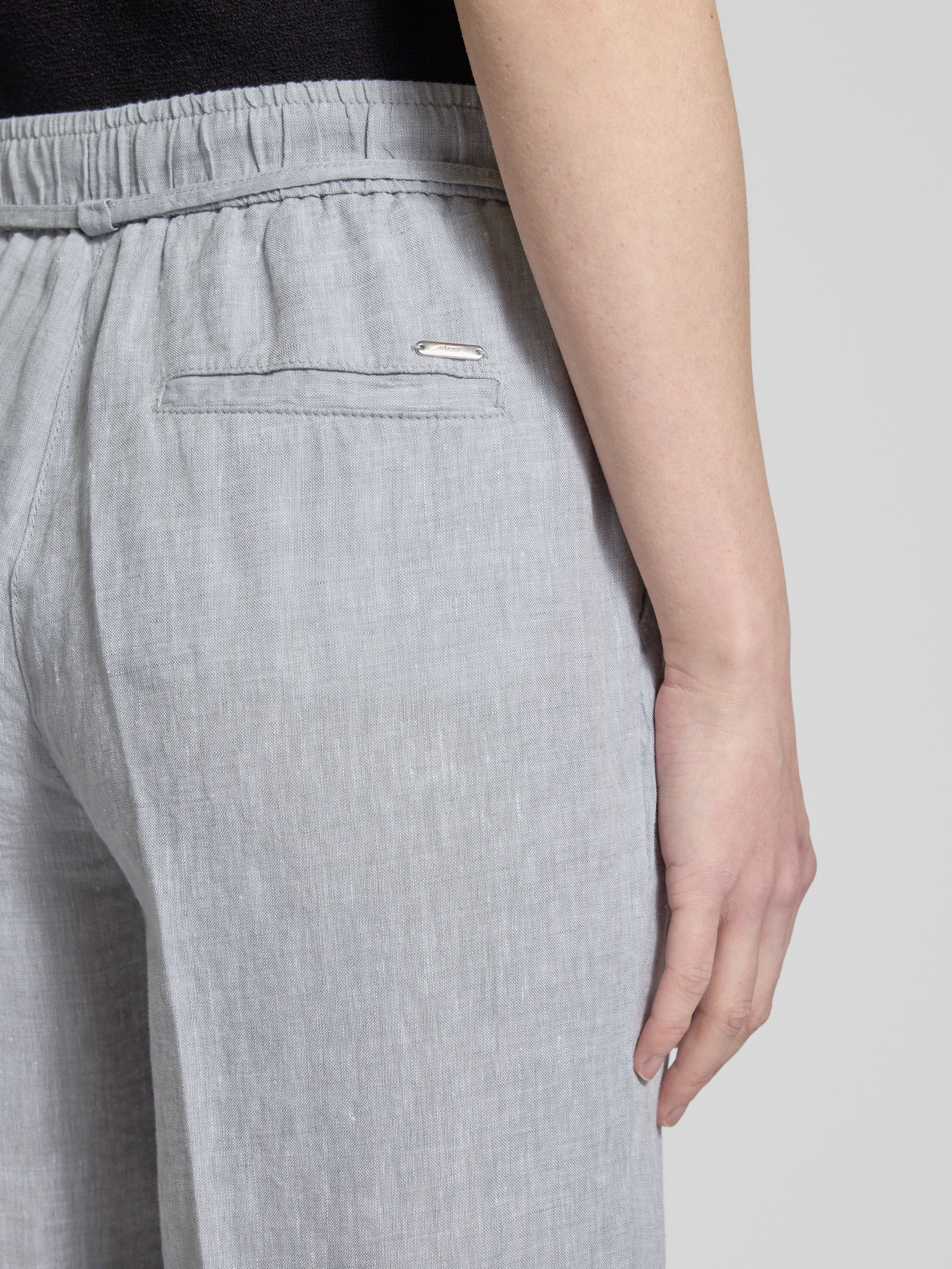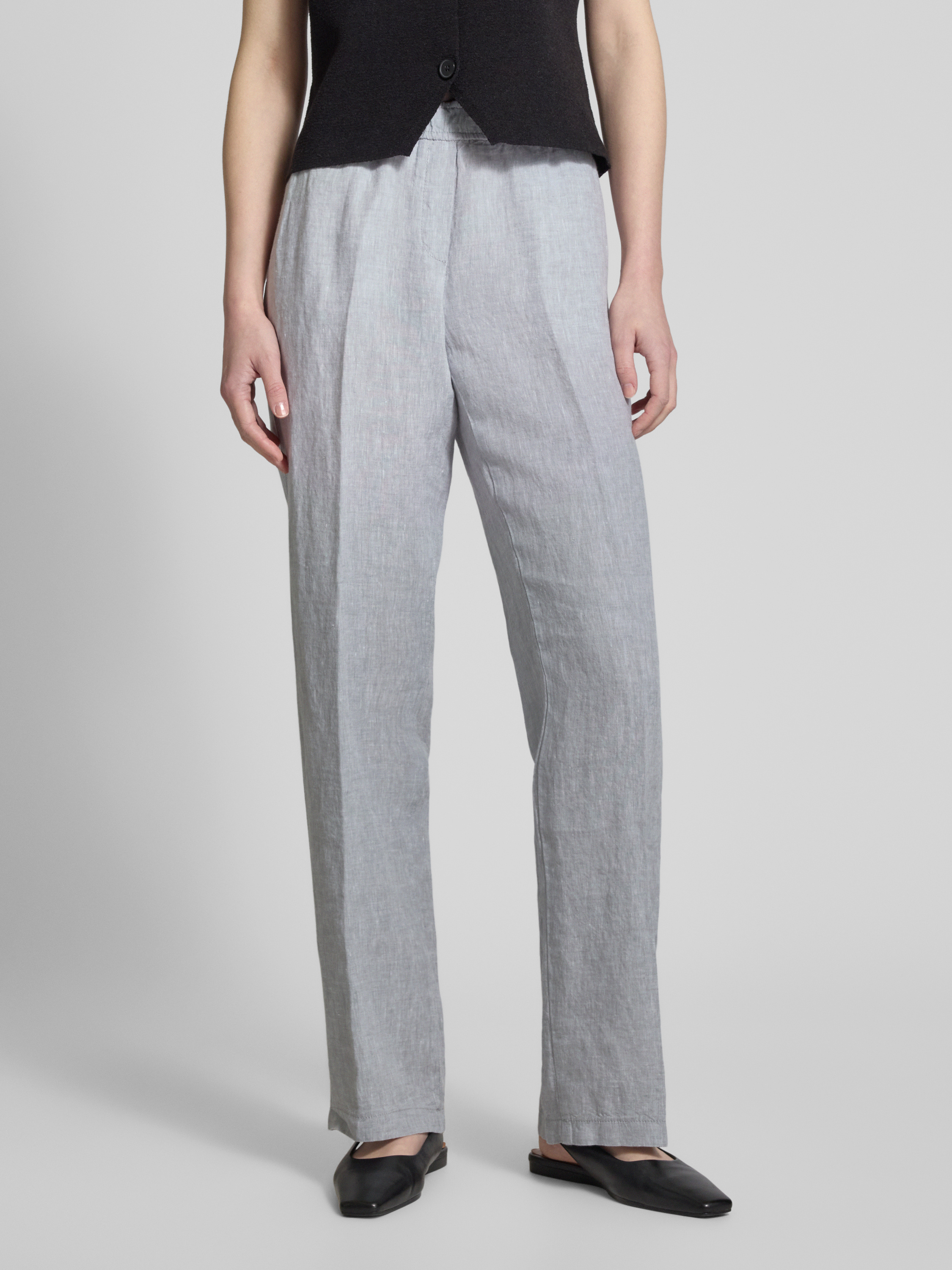 BraxStraight leg linnen broek met strikceintuur, model 'STYLE.FARINA' in lichtgrijs